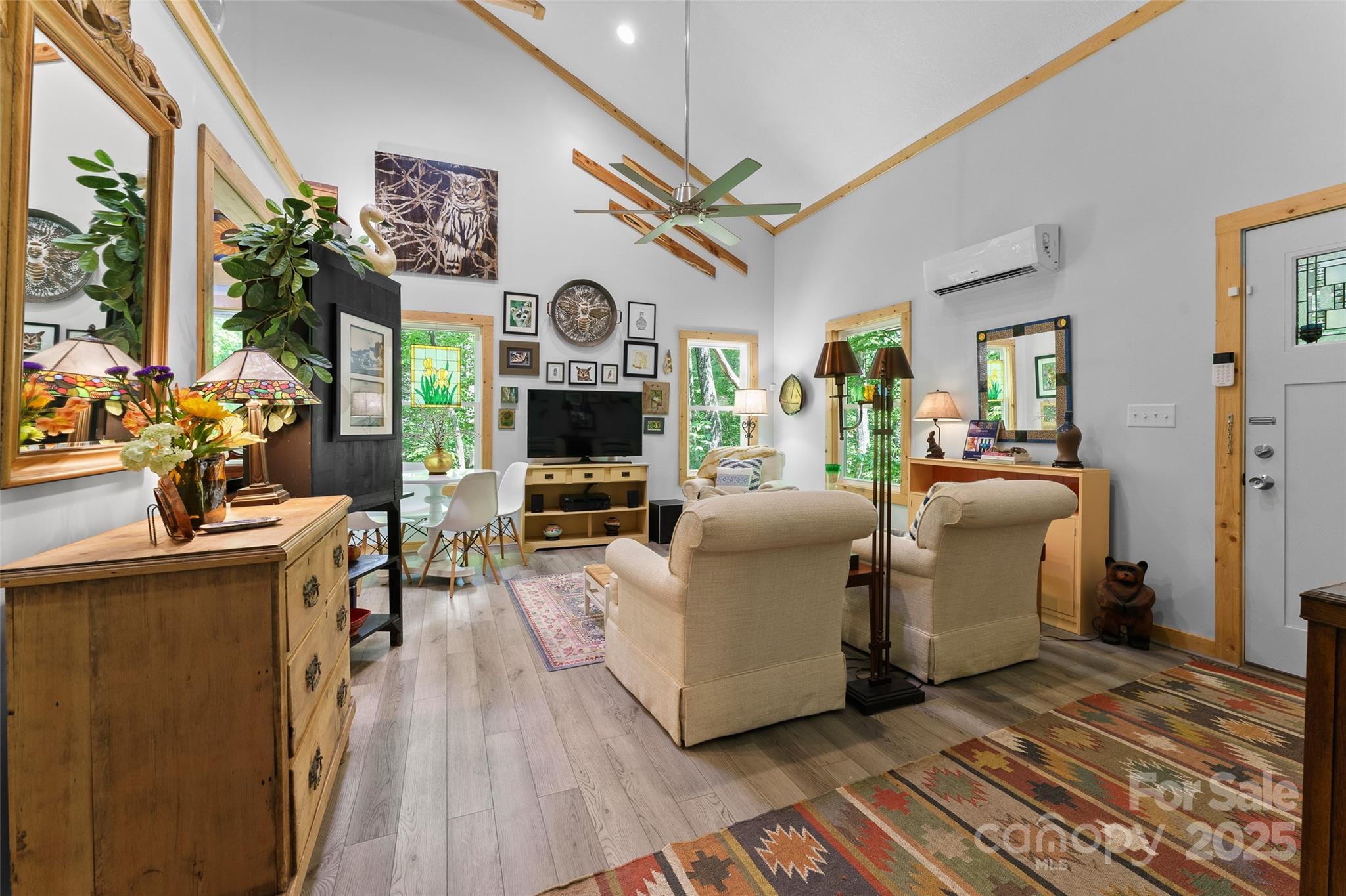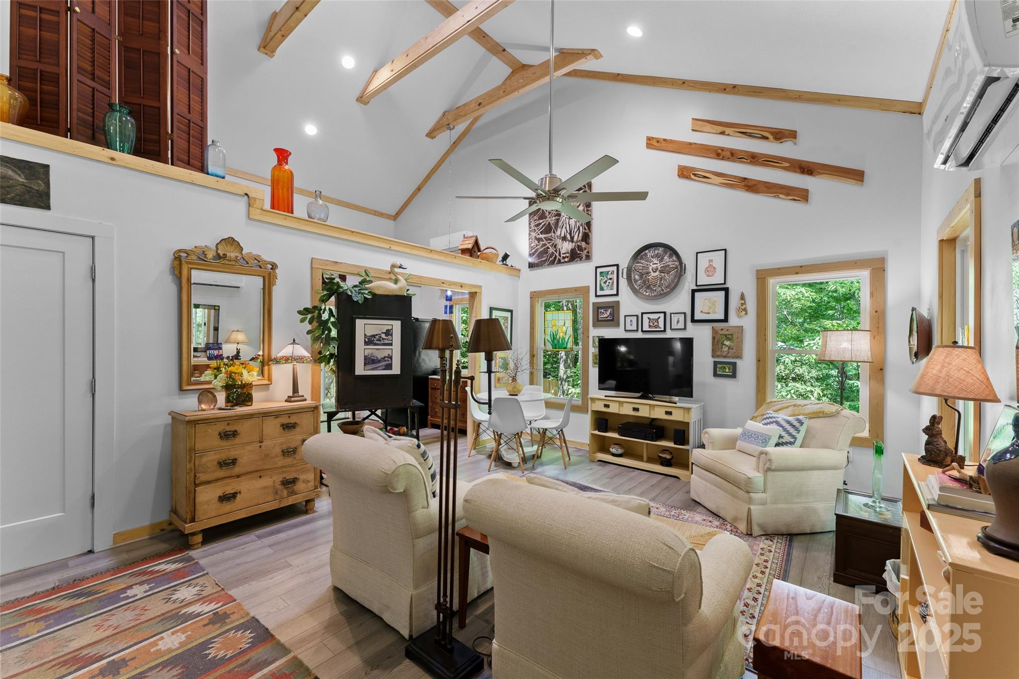 This fully furnished move in ready cabin awaits your next adventure. Located just 3 miles from downtown Saluda with it’s charming Main street where you will find good eats, great music and friendly neighbors. This cabin is in the peaceful neighborhood of Lake Hosea. Take a walk around the lake or one of the nearby trailheads that lead to numerous destinations. Built in 2021 this cabin has a bright and open feel with high ceilings and plenty of windows providing ample light. This cozy house would make a nice primary residence, a get away vacation home or a good investment property. Outdoor adventure awaits with the Green River Gamelands, The Carl Sandburg Home National Historic Site, and Pisgah National Forest nearby. The Flat Rock Playhouse, Wortham Center for the Performing Arts, and North Carolina Arboretum are also within short driving distance. Western North Carolina enjoys four distinct seasons, is known for it’s abundance of apple orchards, and enjoys a robust collection of farmers markets. There is a small storage shed in back of the cabin and the golf cart will convey to new owner. There is a gas line run under the exterior wall of the great room for possible future gas logs. The pantry closet in the kitchen is plumbed for a stackable washer/ dryer.