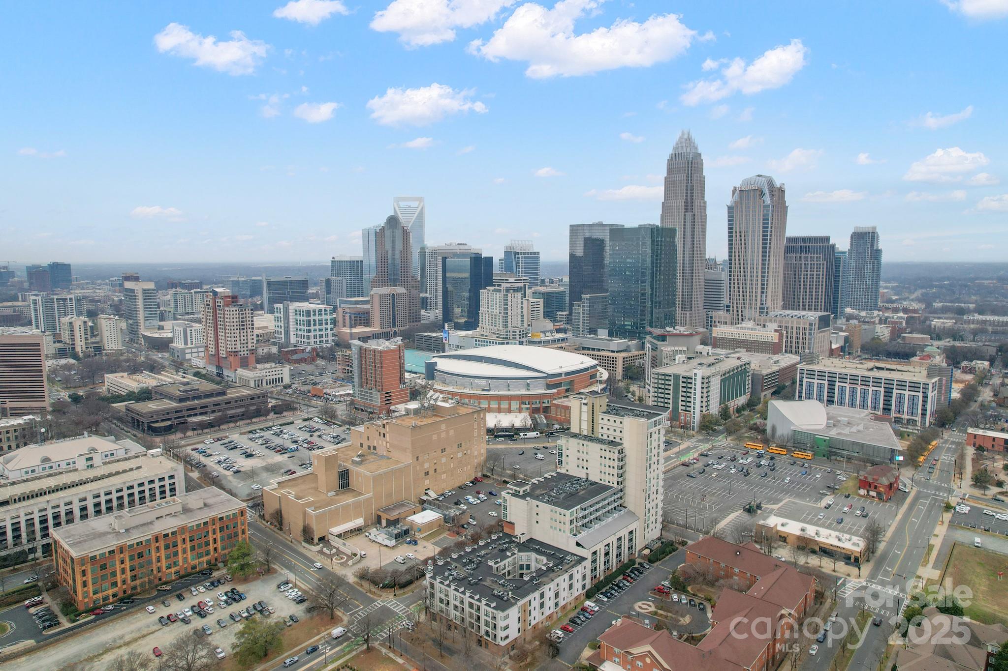 Dreaming of an urban lifestyle - this is it - premiere First Ward location with Downtown Charlotte as your playground. Walk to restaurants, parks, concerts, professional sports, theaters, museums, festivals, light rail, businesses, and more! Secured building with gated parking garage and 2 assigned spots. Prime 7th floor location, contemporary and industrial touches, and downtown views overlooking the Spectrum Center. Inside you will find a desirable open layout featuring abundant natural light, resilient bamboo floors, floor to ceiling wall of windows, raised ~10 foot ceilings, light neutral paint, and Berber carpet. The kitchen is built for entertaining and features granite countertops, custom tile backsplash, stainless steel appliances, and convenient center island with breakfast bar for additional seating. Flexible floor plan offers two primary bedrooms, each with a private ensuite bathroom. Private covered balcony and be sure to check out the roof top terrace above the 17th floor.