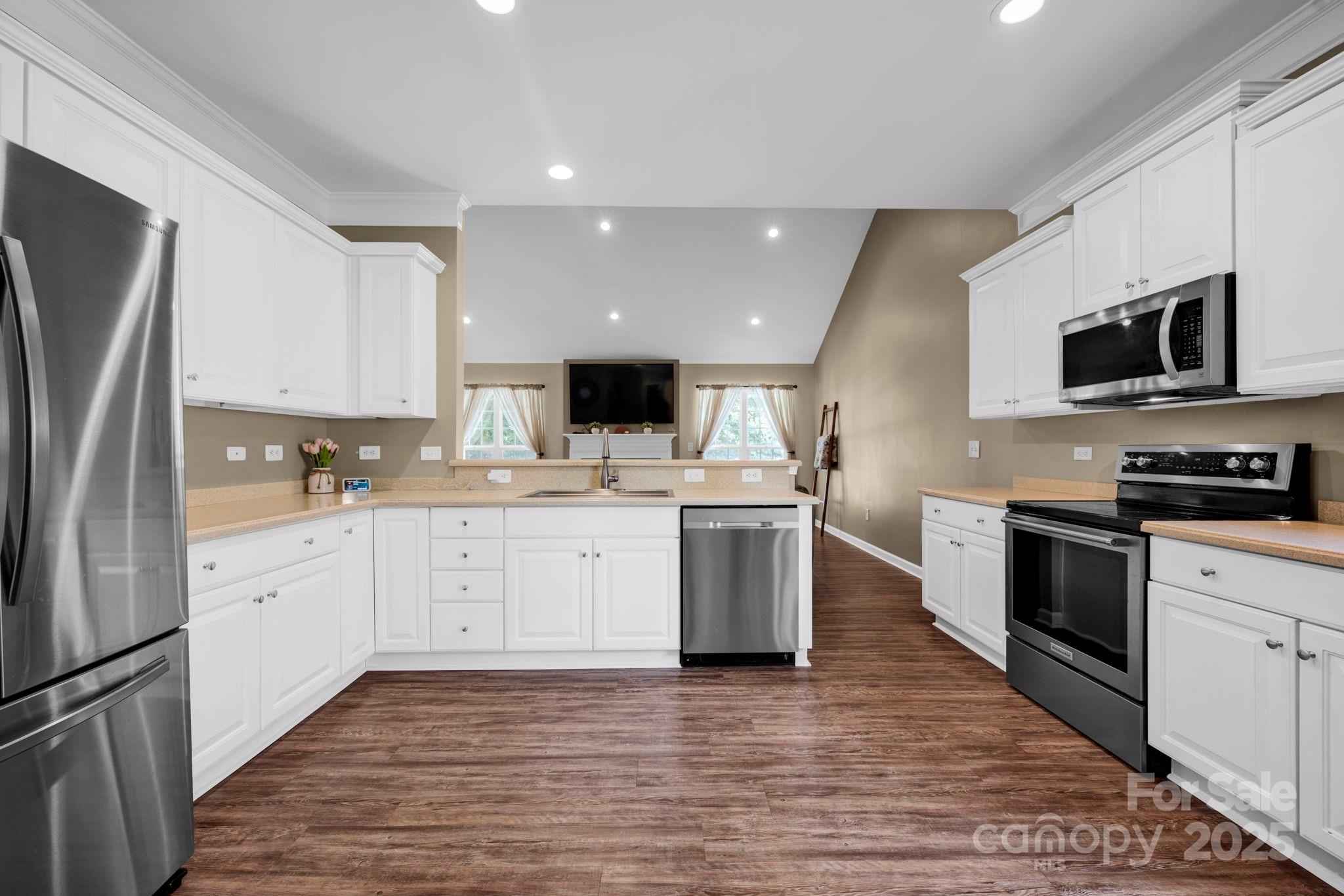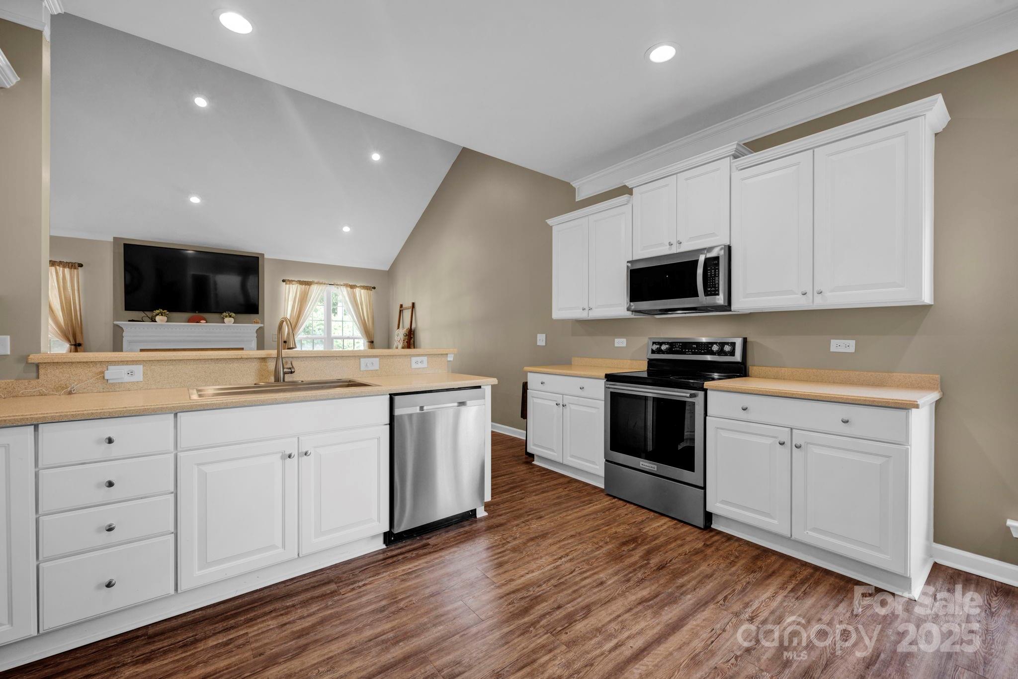 Don’t miss this architecturally pleasing single level home located minutes from downtown Mooresville NC. The house features lots of natural light, a well thought out open style floor plan with a spacious kitchen, dining room, and large living area, ADA friendly tub and shower in the primary bedroom, large walk-in closet, vinyl plank flooring in the living areas and carpet in the bedrooms. There is a covered screened in patio area on the back overlooked a fenced-in back yard. Home is located minutes from downtown Mooresville shopping, hospitals, and restaurants, and a short drive from places such as Lake Norman State Park, Lazy 5 Ranch, Zootastic Park, and other attractions. HOA includes lawncare, and seller is offering a Home Warranty with acceptable offers. All the appliances stay with the house. Move in ready!