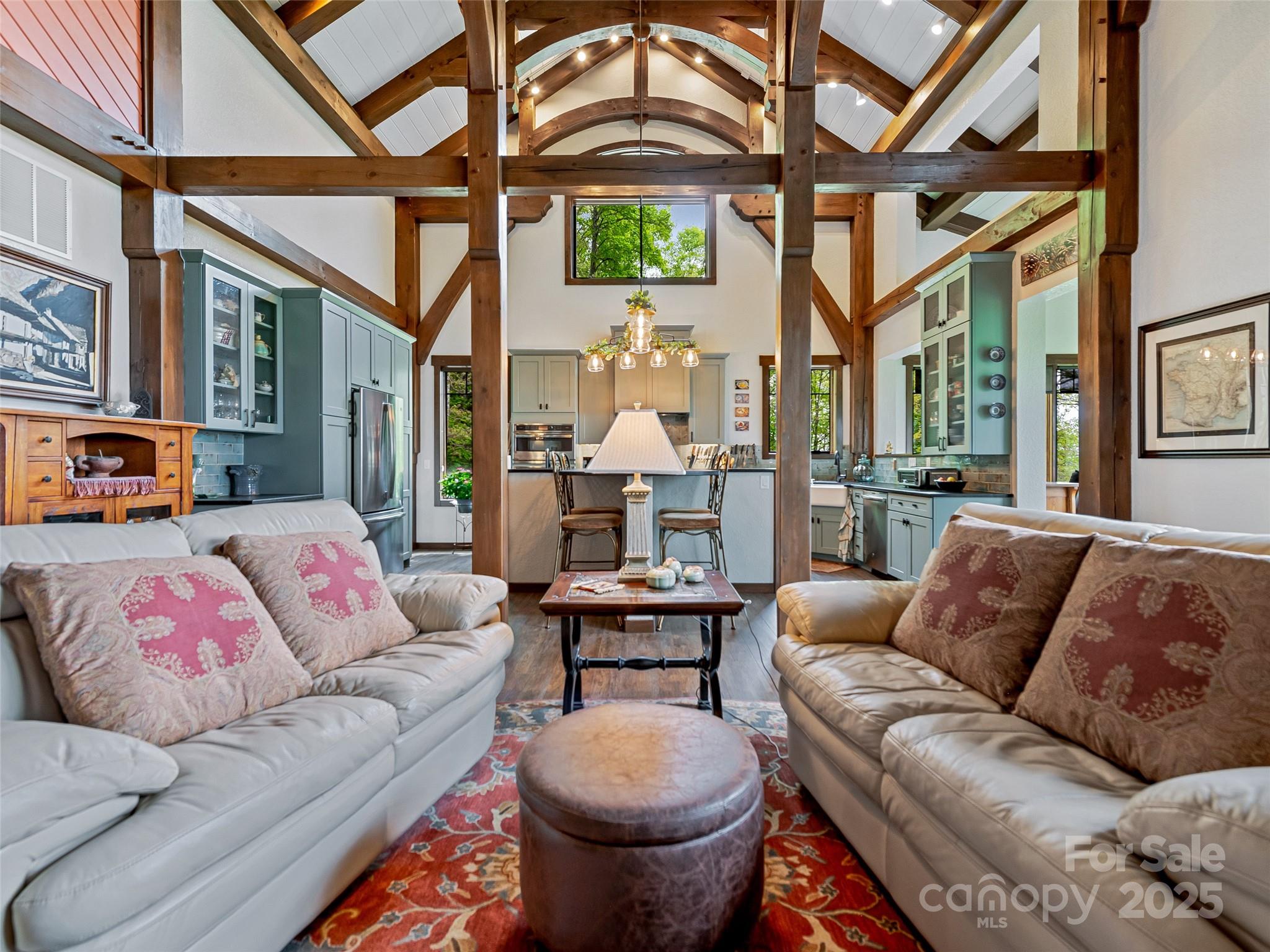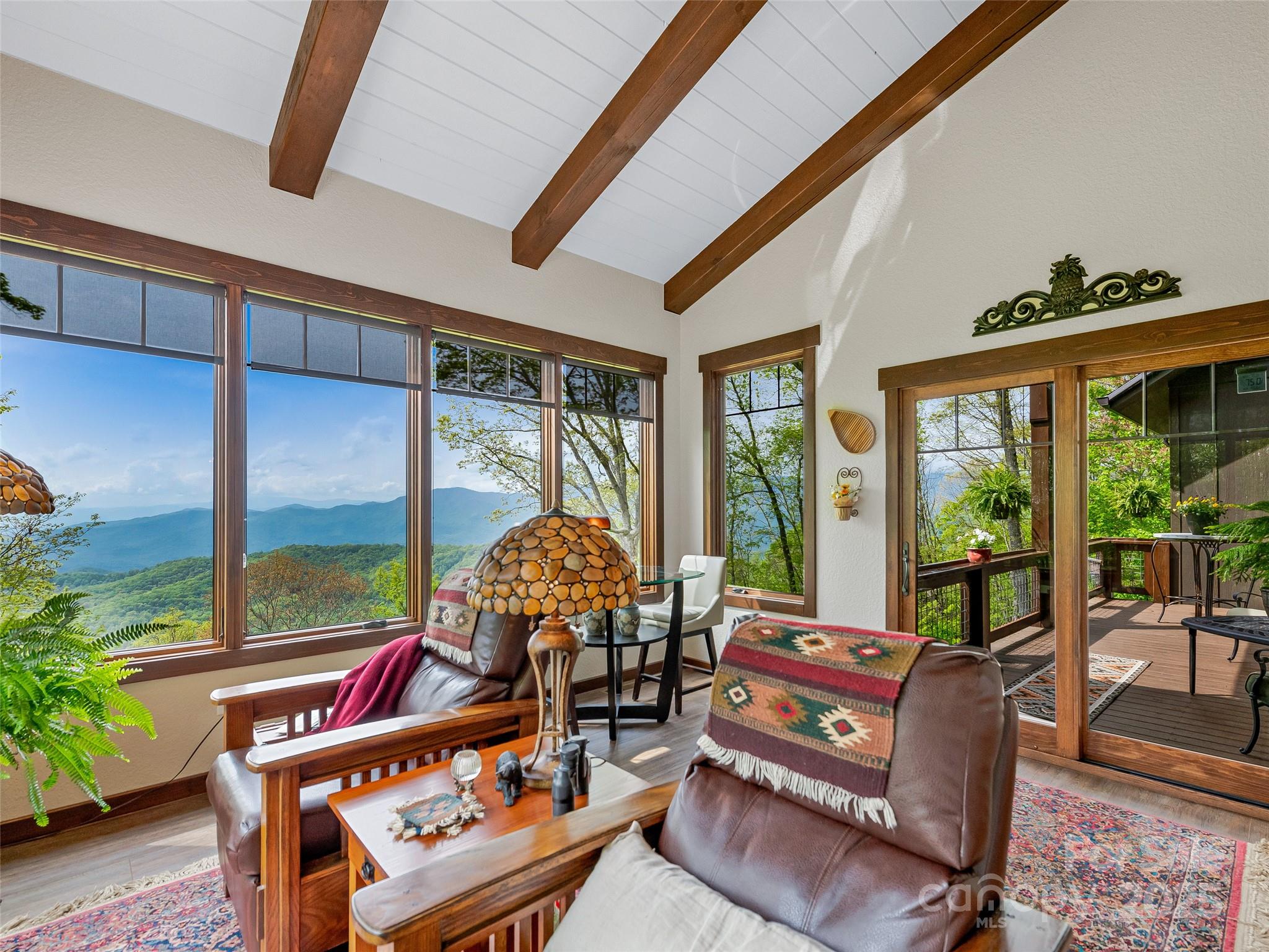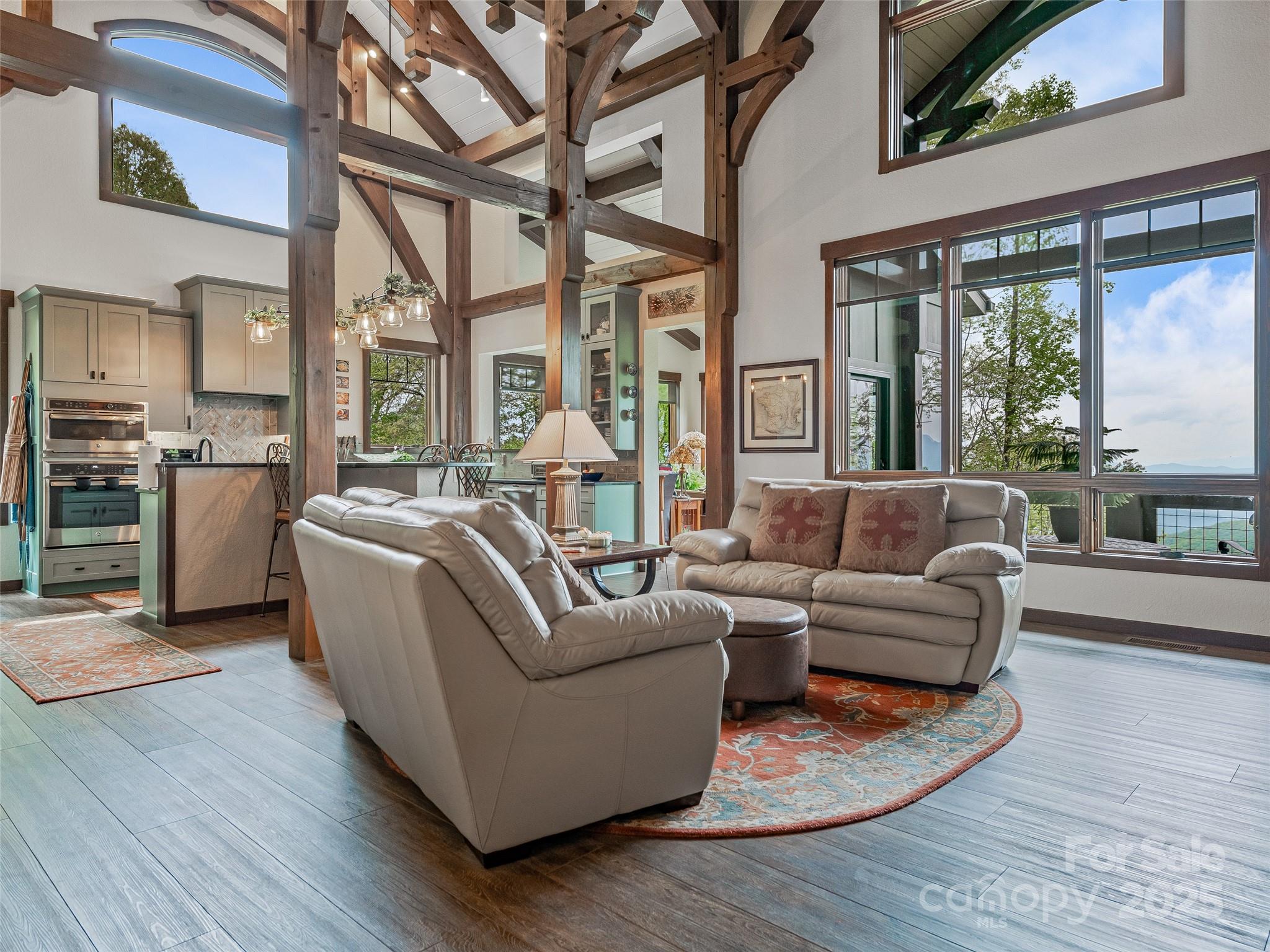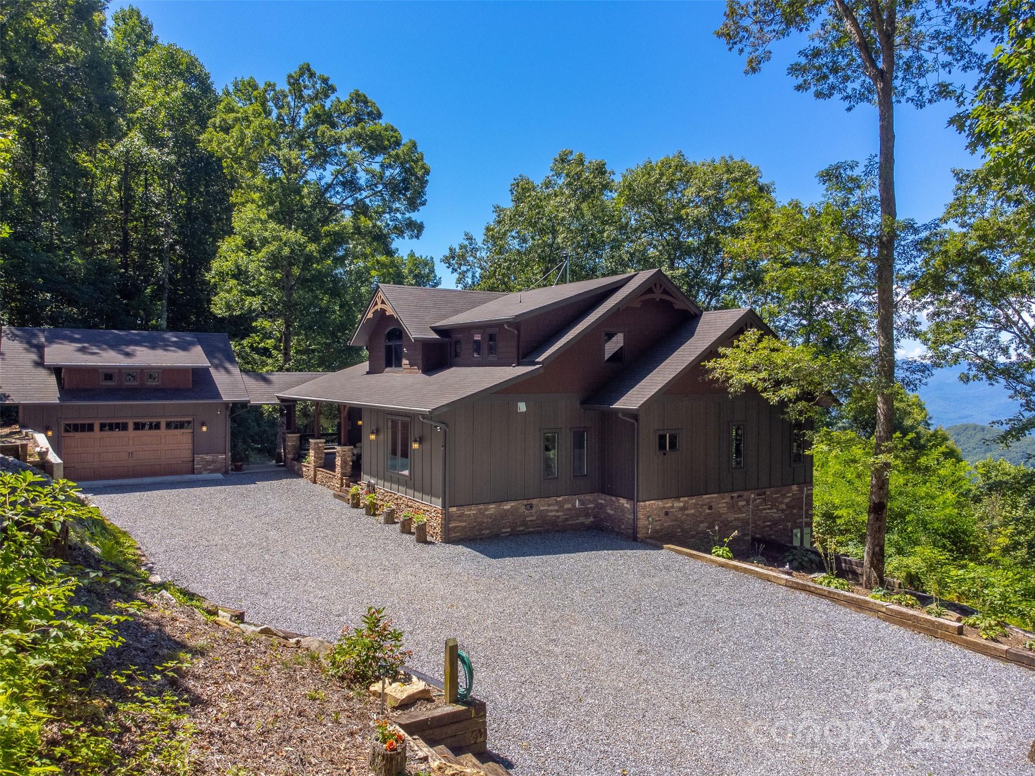 Escape to your mountaintop sanctuary. This custom-built, timber frame home with soaring cathedral-like ceilings and breathtaking views from every room was designed and built to be part of its natural surroundings. At 4,000 feet of elevation on over 17 acres, it borders over 39,000 acres of the Nantahala National Forest which is accessible for hiking, bird-watching or hunting. The heart of this spacious mountain retreat is designed for entertaining, with its open living room, wood burning stove and large gourmet kitchen. Additionally, the home features a spacious owner's retreat with en suite bath and walk-in closet, 2 guest rooms, 3 additional full baths, office, den, workshop and a very large room, perfect for a home gym, movie theater or game room. You will never tire of the awe-inspiring views, centrally located to the charming towns of Sylva & Waynesville, and less than an hour from Asheville and its airport. Come and unwind, explore and savor your unique mountain paradise.