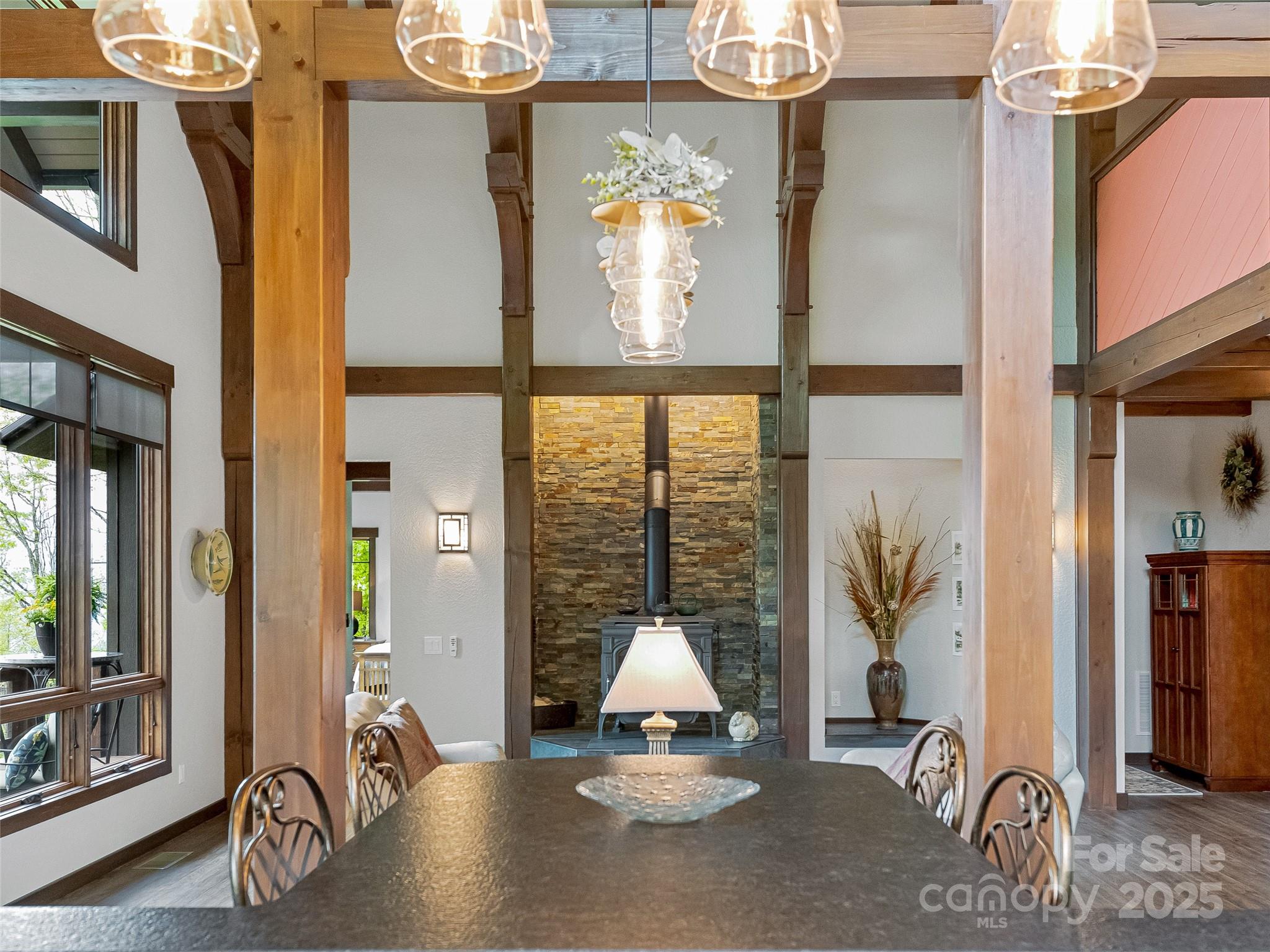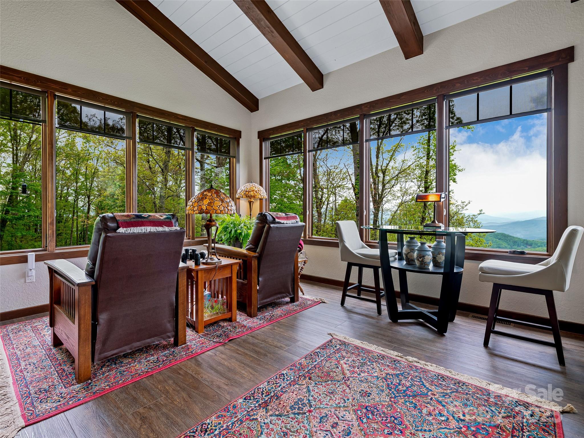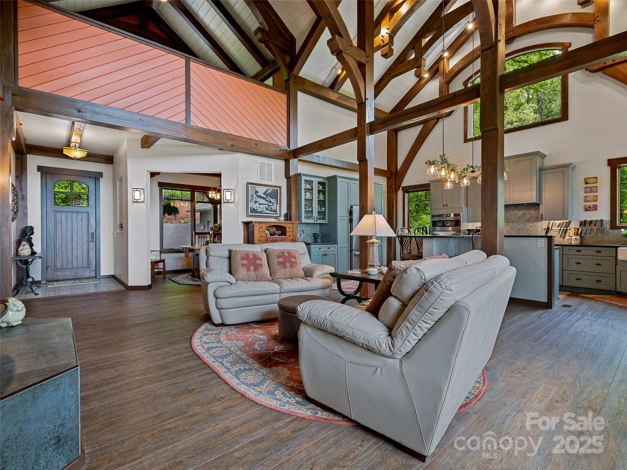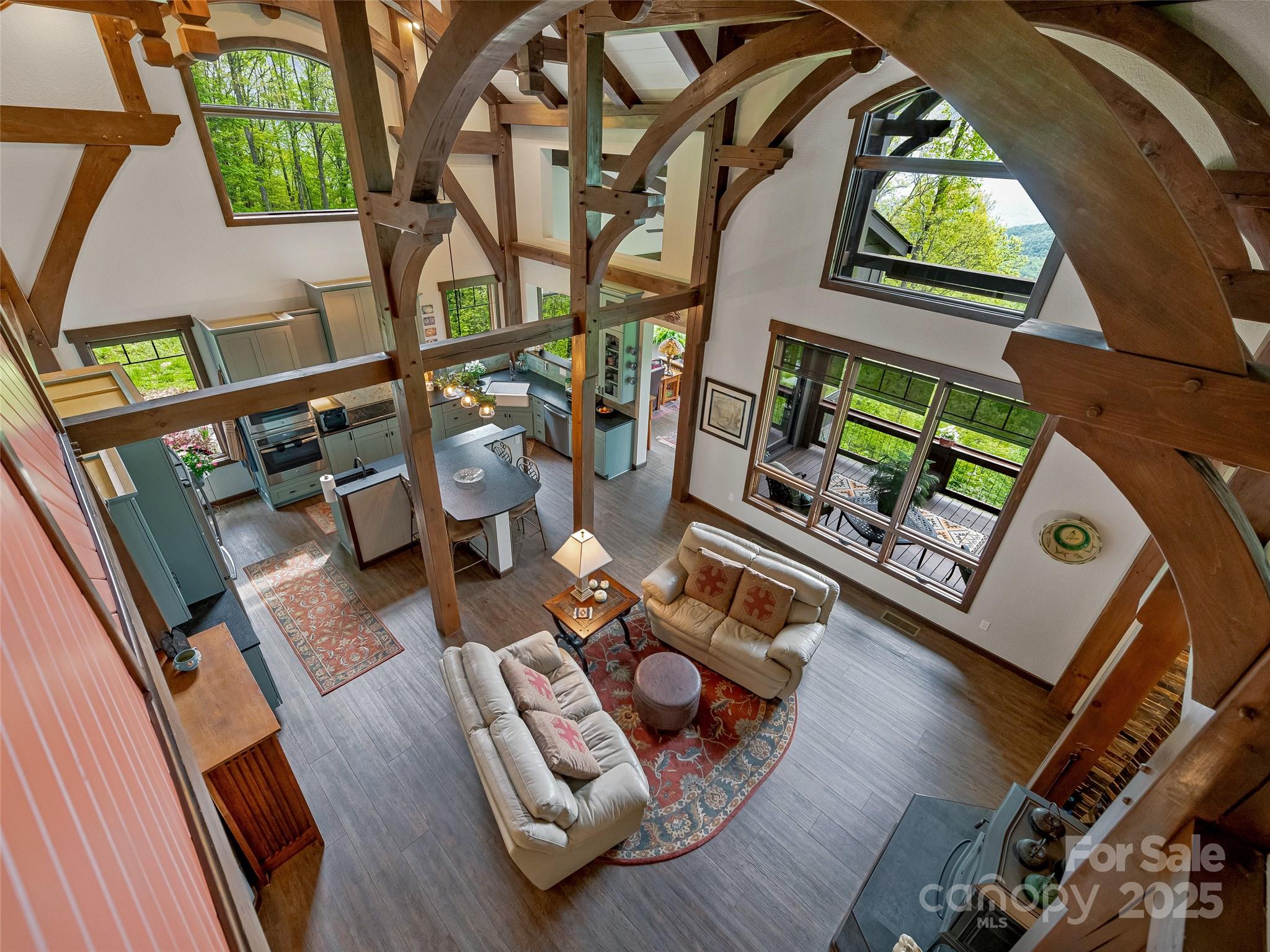 Escape to your mountaintop sanctuary. This custom-built, timber frame home with soaring cathedral-like ceilings and breathtaking views from every room was designed and built to be part of its natural surroundings. At 4,000 feet of elevation on over 17 acres, it borders over 39,000 acres of the Nantahala National Forest which is accessible for hiking, bird-watching or hunting. The heart of this spacious mountain retreat is designed for entertaining, with its open living room, wood burning stove and large gourmet kitchen. Additionally, the home features a spacious owner's retreat with en suite bath and walk-in closet, 2 guest rooms, 3 additional full baths, office, den, workshop and a very large room, perfect for a home gym, movie theater or game room. You will never tire of the awe-inspiring views, centrally located to the charming towns of Sylva & Waynesville, and less than an hour from Asheville and its airport. Come and unwind, explore and savor your unique mountain paradise.