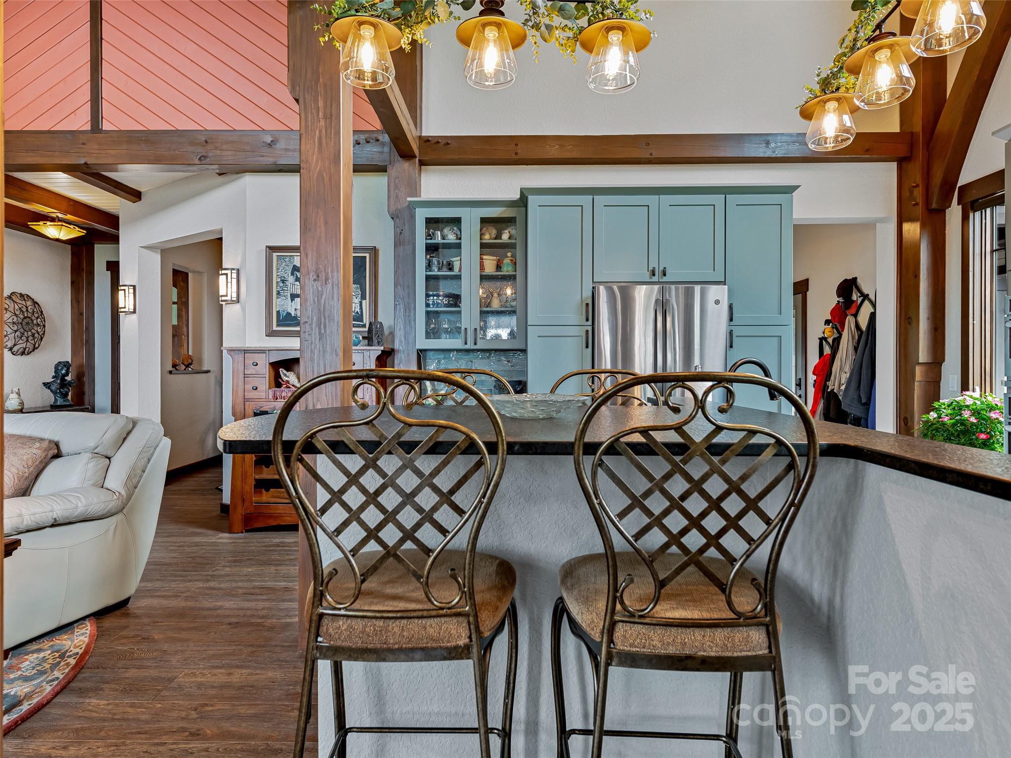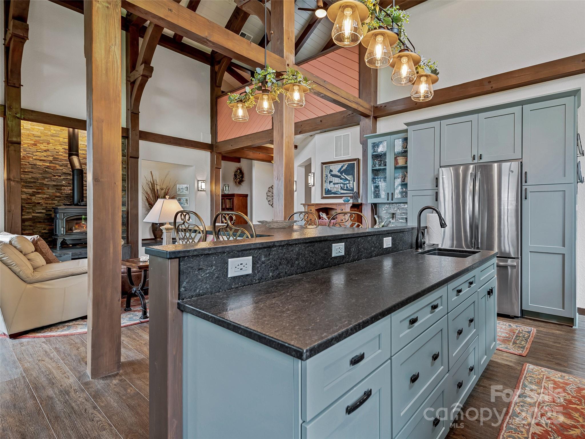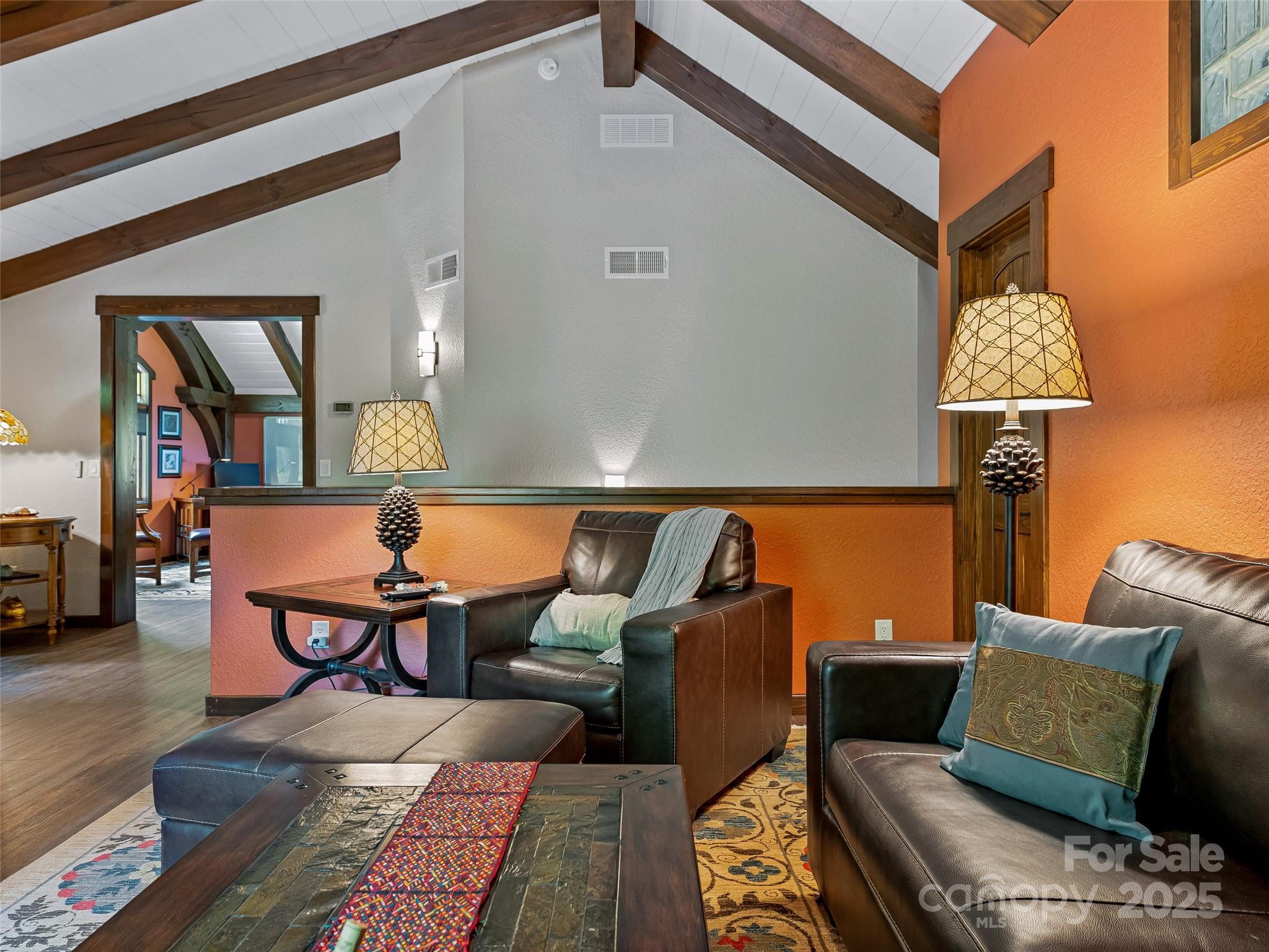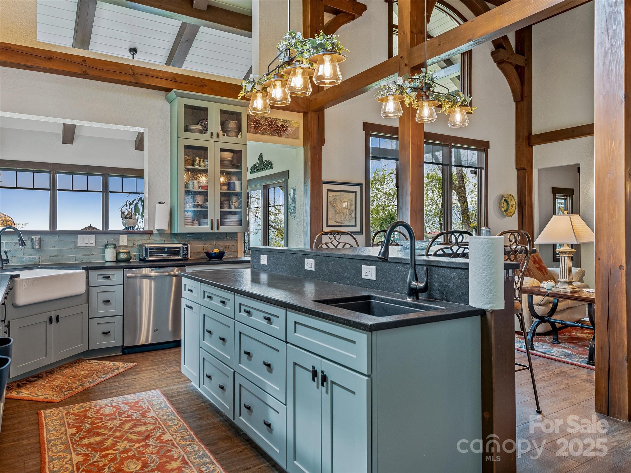 Escape to your mountaintop sanctuary. This custom-built, timber frame home with soaring cathedral-like ceilings and breathtaking views from every room was designed and built to be part of its natural surroundings. At 4,000 feet of elevation on over 17 acres, it borders over 39,000 acres of the Nantahala National Forest which is accessible for hiking, bird-watching or hunting. The heart of this spacious mountain retreat is designed for entertaining, with its open living room, wood burning stove and large gourmet kitchen. Additionally, the home features a spacious owner's retreat with en suite bath and walk-in closet, 2 guest rooms, 3 additional full baths, office, den, workshop and a very large room, perfect for a home gym, movie theater or game room. You will never tire of the awe-inspiring views, centrally located to the charming towns of Sylva & Waynesville, and less than an hour from Asheville and its airport. Come and unwind, explore and savor your unique mountain paradise.