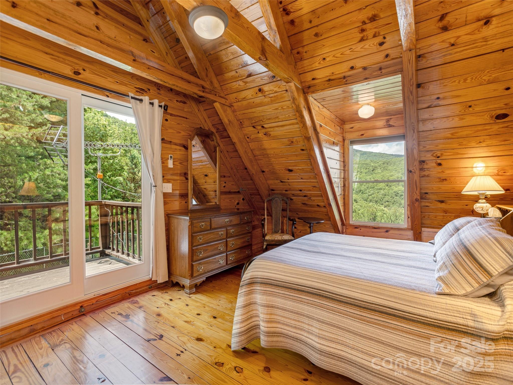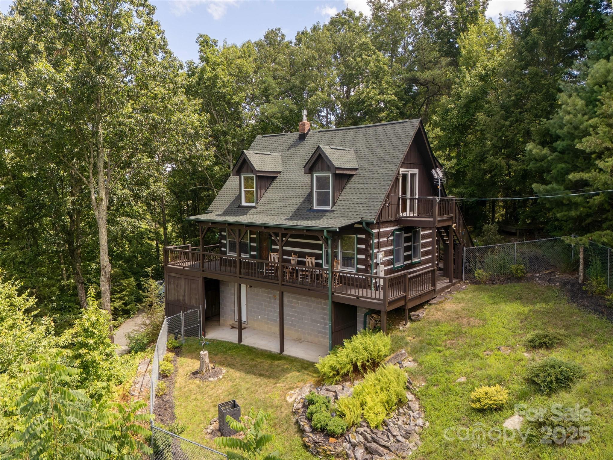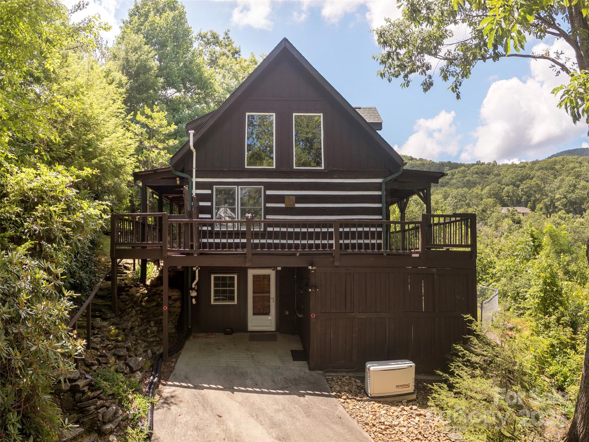 This thoughtfully designed 3 BR/2BA cabin offers privacy, comfort, spectacular mountain views. Ideal as a peaceful primary residence, or a vacation home, this home balances rustic charm with modern conveniences. The main level has 2 BR, 1 BA, kitchen/dining/living room. The Hearthstone gas log stove is the focal point of the 2-story living room, creating both beauty and warmth. The upper loft features an en-suite bedroom with sitting area, private full bath, and it’s own scenic deck. The basement area includes laundry, storage, and flexible area for recreation, office, gym, storage, or hobbies. Mature native plantings, fenced yard with gentle slopes, offers privacy and a forested retreat feel This home has been updated with all new appliances, brand new roof, whole house generator, and is being offered completely furnished. Nestled in the serene Lace Falls neighborhood just 15 minutes from downtown Hendersonville. No STR allowed in Lace Falls. Listing Agent to accompany showings. **SEE DIRECTION REMARKS**