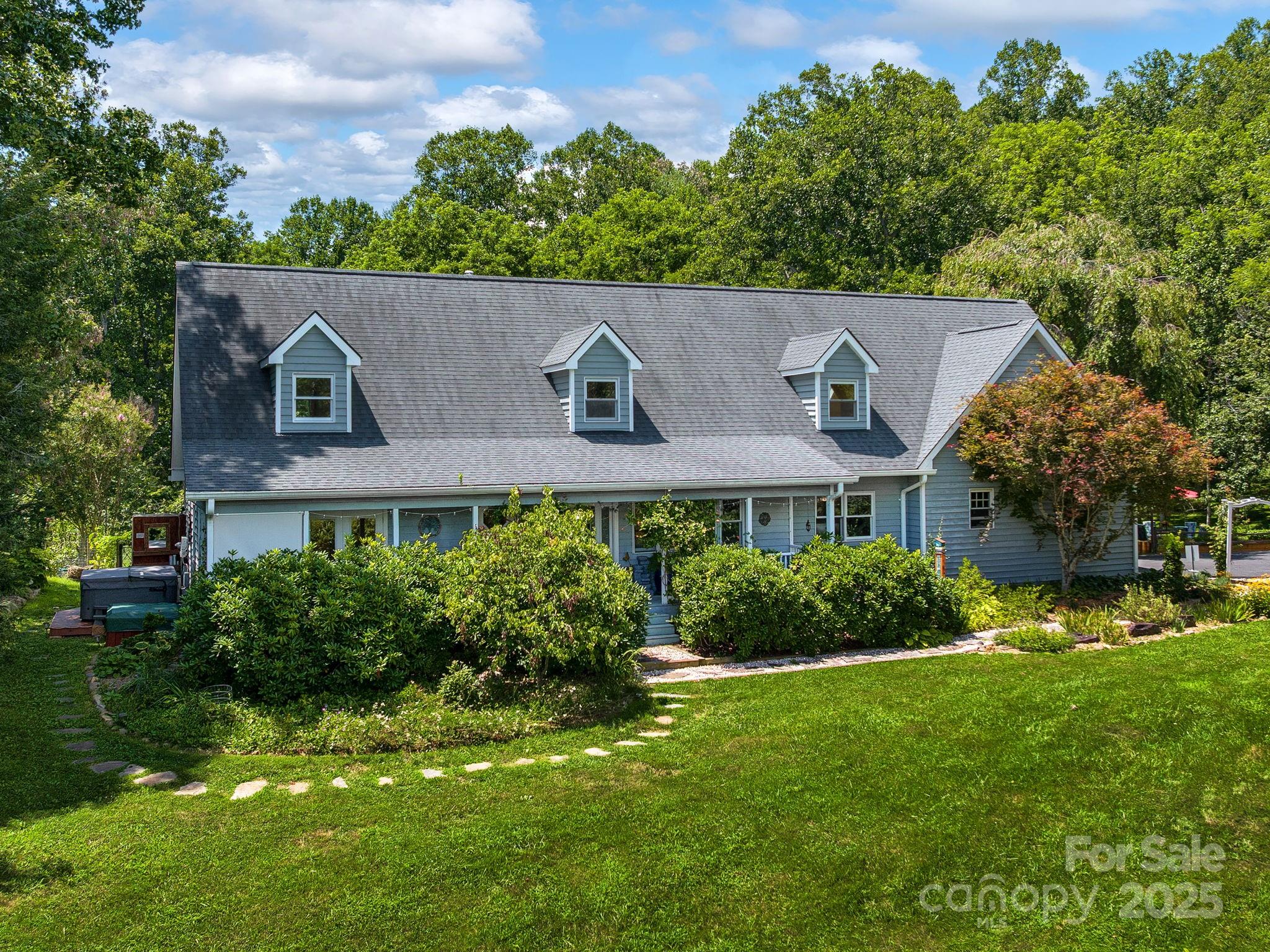PRICE DROP! Welcome to this rare 9.46-acre retreat property, well-known in the community as "Samasati Sanctuary", perfectly located in the peaceful countryside but just minutes from all that Weaverville and Asheville have to offer. This beautifully updated property offers a harmonious blend of comfort, natural beauty, and versatility. Updates Include: :: An updated kitchen and spa-like primary bath with radiant heat floors :: An open, light-filled living area on the main level, plus a spacious flex space on the upper level ideal for yoga, meditation, or large gatherings :: Two bonus rooms in the basement (some painted concrete block) with kitchenette and full bath, infrared sauna, and with private patio with a soothing cascading rock waterfall to enjoy :: 28-panel solar PV system with battery, Tesla EV charger, and hot tub with outdoor shower :: With many meandering trails created throughout the mix of meadow and forest, find calm with serene sitting areas for rest and contemplation :: Organic garden and extensive landscaping have been added to enhance the beauty of the property :: The surprisingly cute tiny cabin and a one-of-a-kind Yome (yurt/dome) add space for guests and family * Please see the adjacent property at 1702 New Stock Rd (MLS# 4288330), to be purchased together to create your own retreat center, family compound, or income-generating rental community. ** Be sure to watch the DRONE VIDEO and see the Additional Info Sheet attached ***No drive-bys, please!