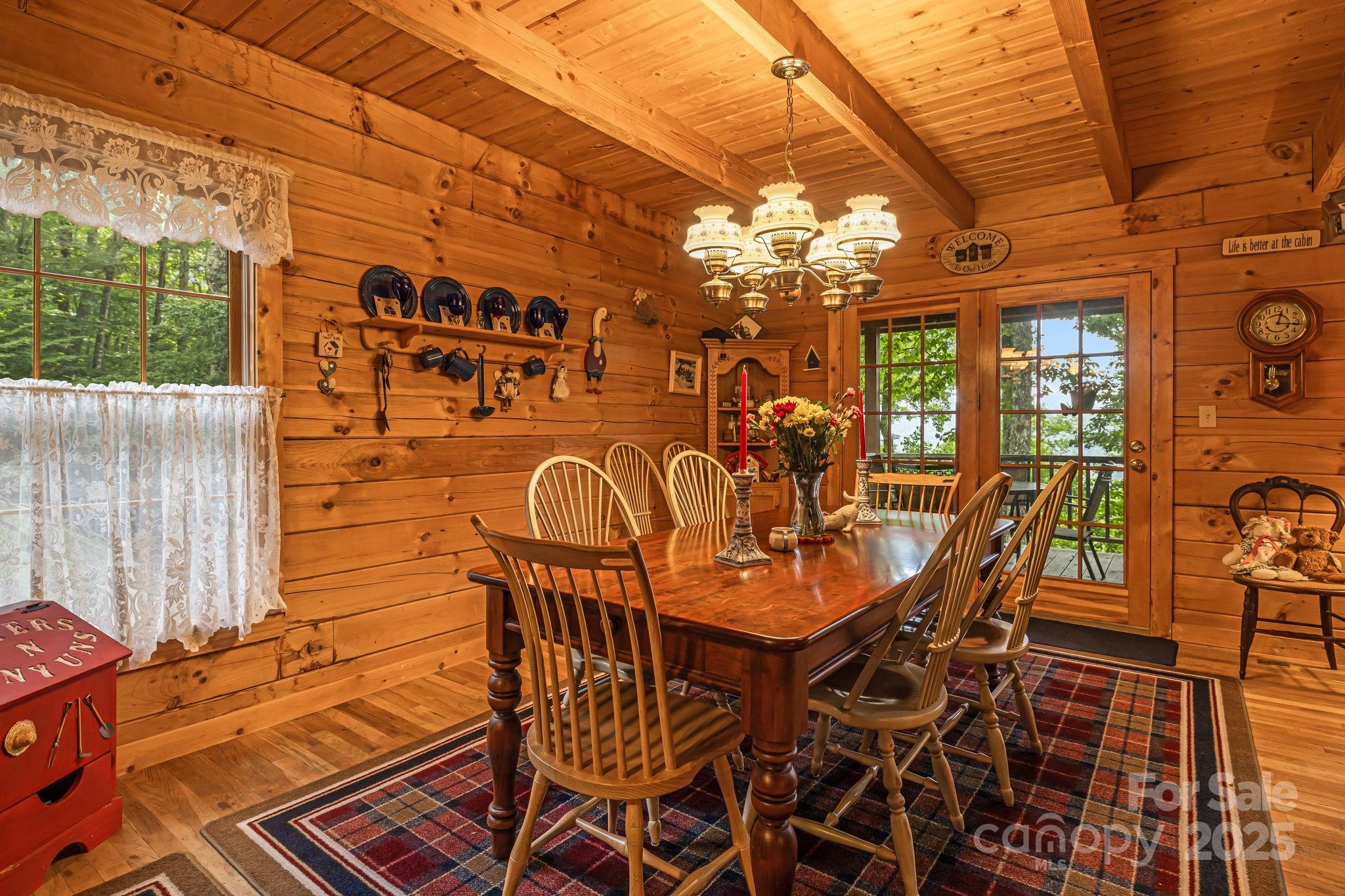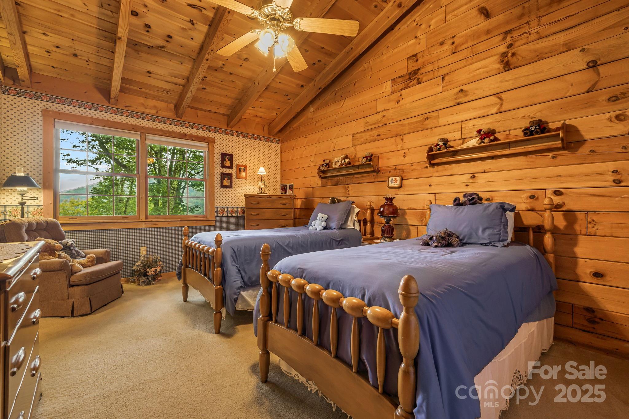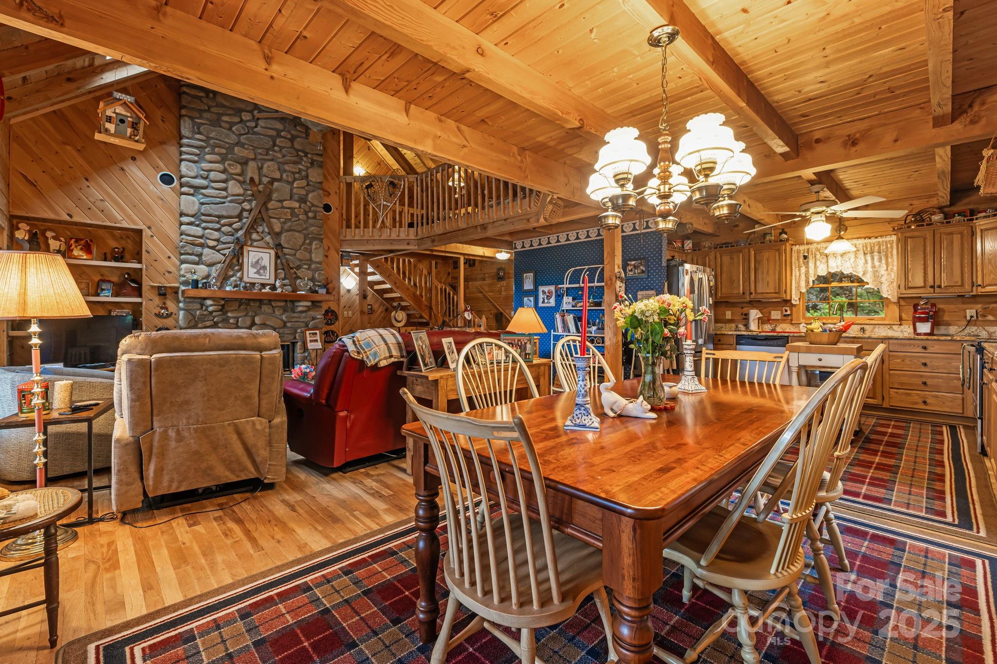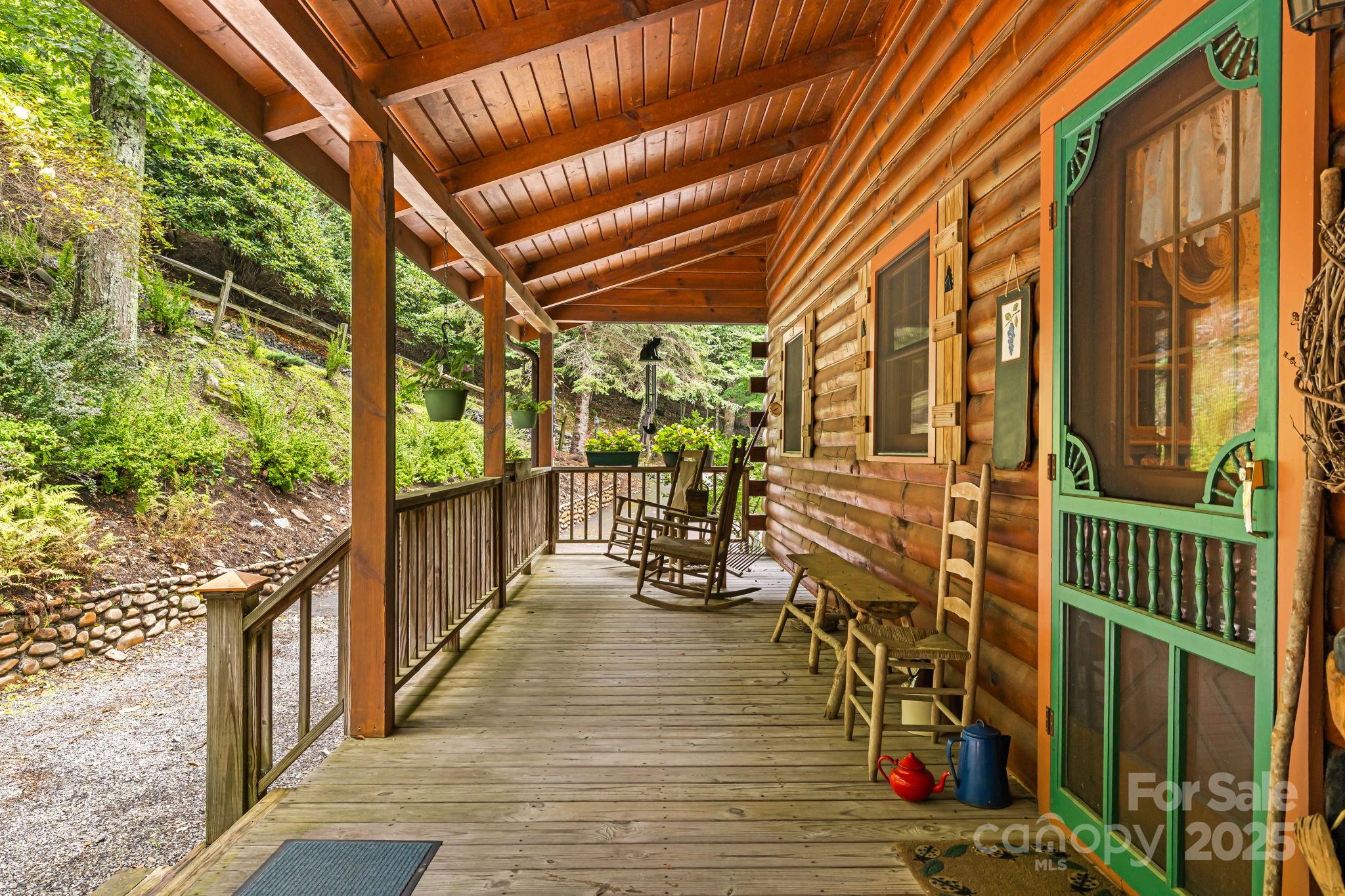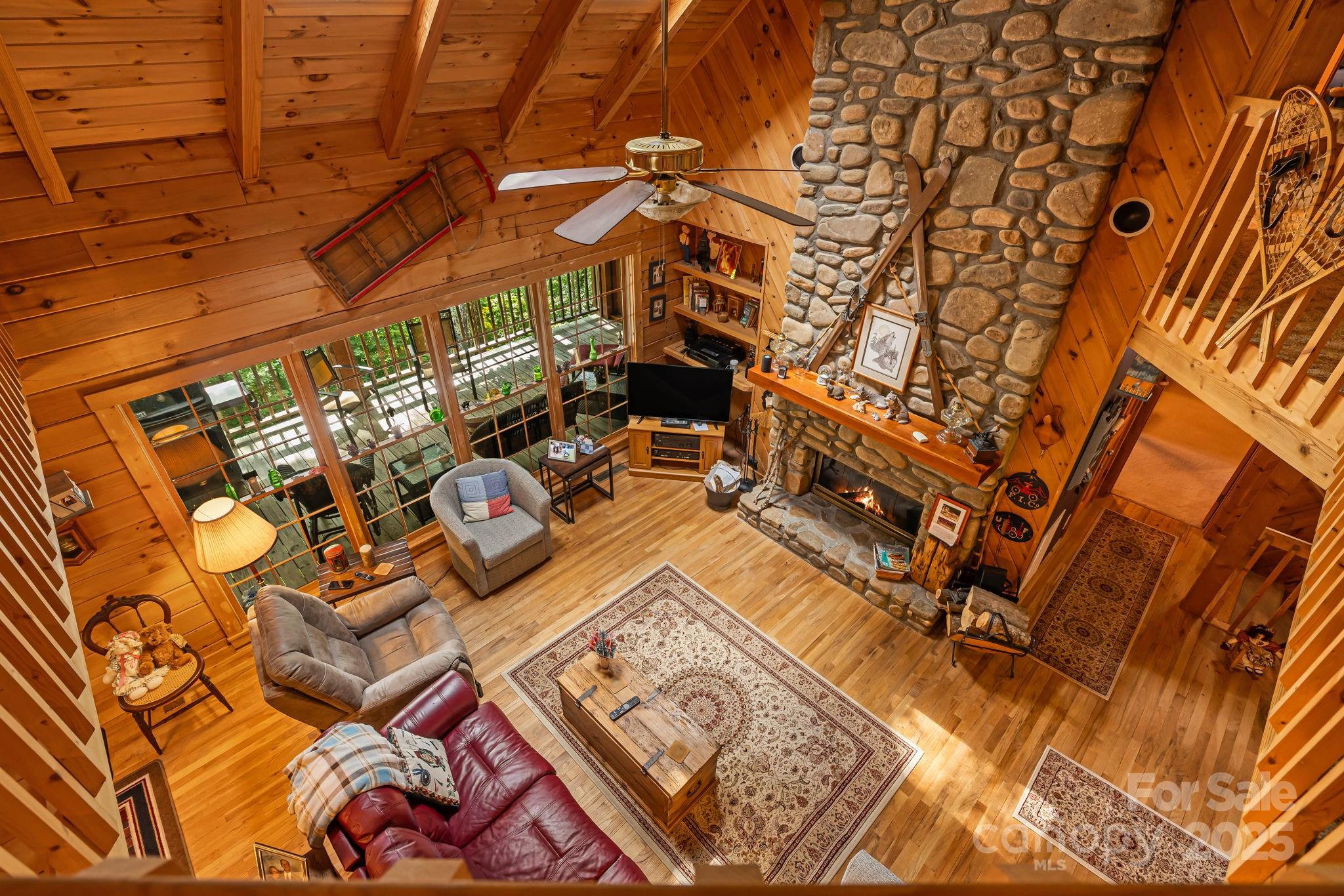 "The Enchanted Cabin" This home is immaculate inside and out. From the moment you walk onto the covered front porch you know this home is special. Sit on Front porch in your rocking chairs and enjoy the sounds of the waterfall. Spacious open floor plan with 3 primary suites. Entry into home will wow you with the soaring cathedral wood ceilings. Wood walls and ceilings throughout home. Skylights and lots of windows makes this home bright and cheery. Massive stone fireplace that is wood burning, updated kitchen with granite counters, newer stainless appliances and a dining area when you choose to eat inside. Large, covered deck to enjoy the cool summers at over 4000ft elevation and the wildlife, great spot to have your morning coffee. Primary suite on main level with office space and access to the deck. Large bath with storage and steam shower, granite counters and tile floor. Upstairs enjoy loft area with pool table that will convey and sleeping /entertaining area. 2nd primary with bath that has granite counter, shower/bath combo and tile floor. Bedroom with vaulted ceilings and plenty of storage area. Lower level enjoys a third primary suite with shower/bath combo, granite counter and tiled floor.in bath. Over-sized laundry room. One car garage and deck space with hot tub (has been drained and not used since 2020). Mostly furnished with list attached of exceptions. Efficient gas furnace that is serviced yearly. New roof 2014, exterior stained 2015, and touched up 09/2025. Village Club Membership to convey at closing. Blue Mountain HOA will be raising the dues in 01/2026 to $195 month. This is an amazing cabin in a gated community; high elevation and views will please any buyer looking for quality of life.