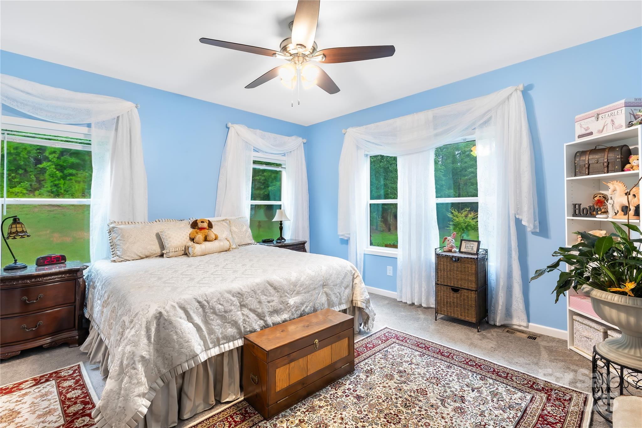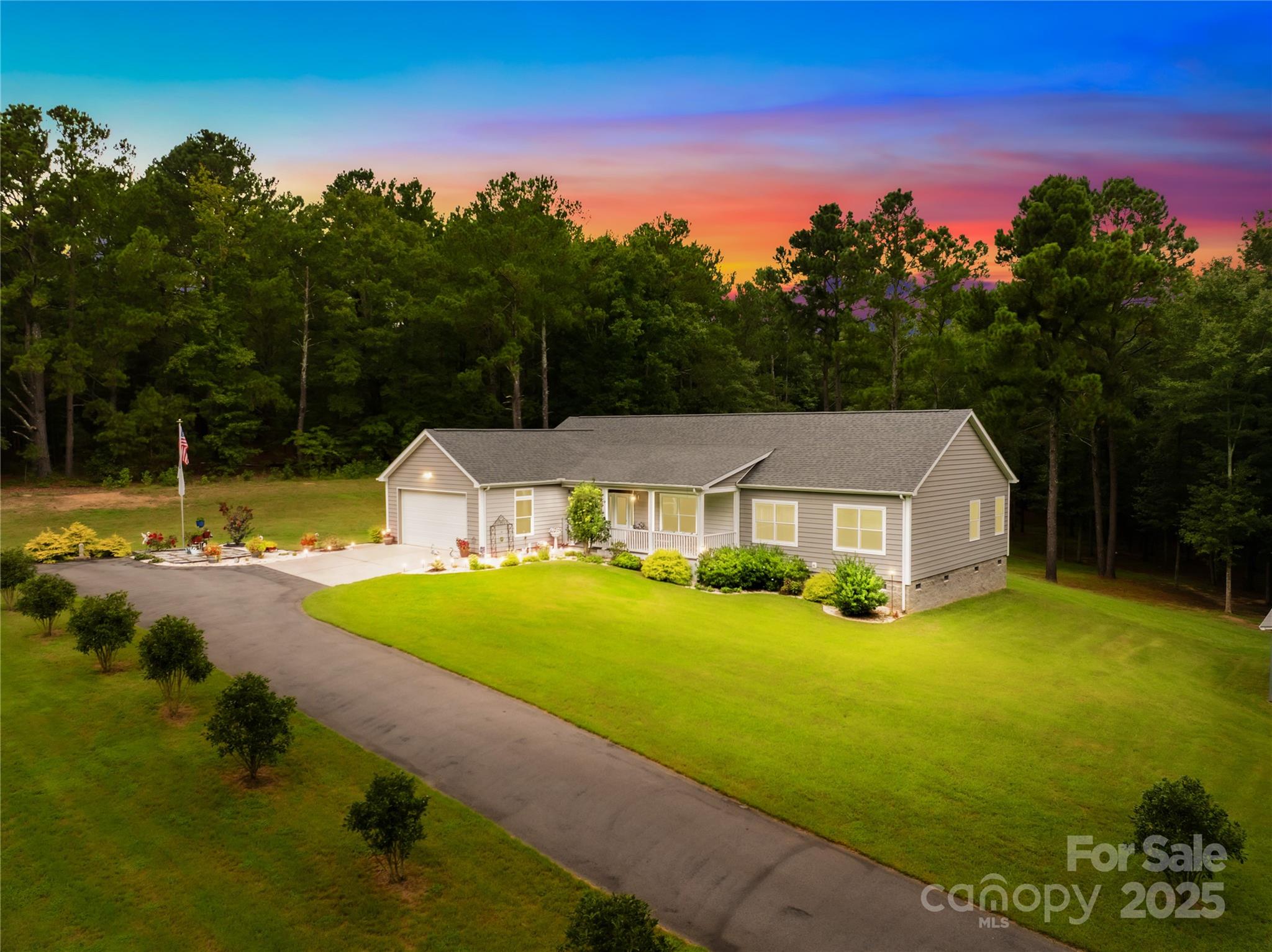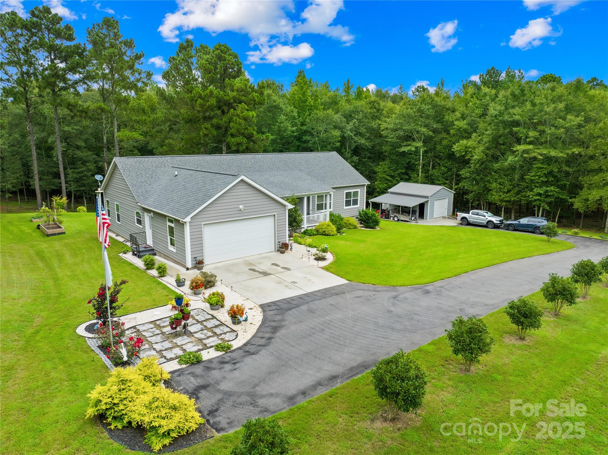 Escape to the country while staying close to town! This 2020 modular home sits on 3.25 serene acres, just 10 minutes from shopping and dining. With 4 bedrooms and 2 full baths, the split floor plan offers privacy and space, featuring a large open-concept living area with a gas fireplace and a spacious walk-in pantry. The primary suite includes a soaking tub, oversized walk-in shower, dual vanities, and a dedicated makeup vanity with lighted mirror. Enjoy a one-step entry through the front door and an attached 2-car garage with durable epoxy floors. Outside, a steel outbuilding with water, electricity, and attached carport offers tons of utility and storage. The wooded backyard is peaceful and private, with a creek at the rear of the property and forested lots on all sides. Reverse osmosis water filtration system, ample storage throughout, and quiet country charm—this property truly has it all!