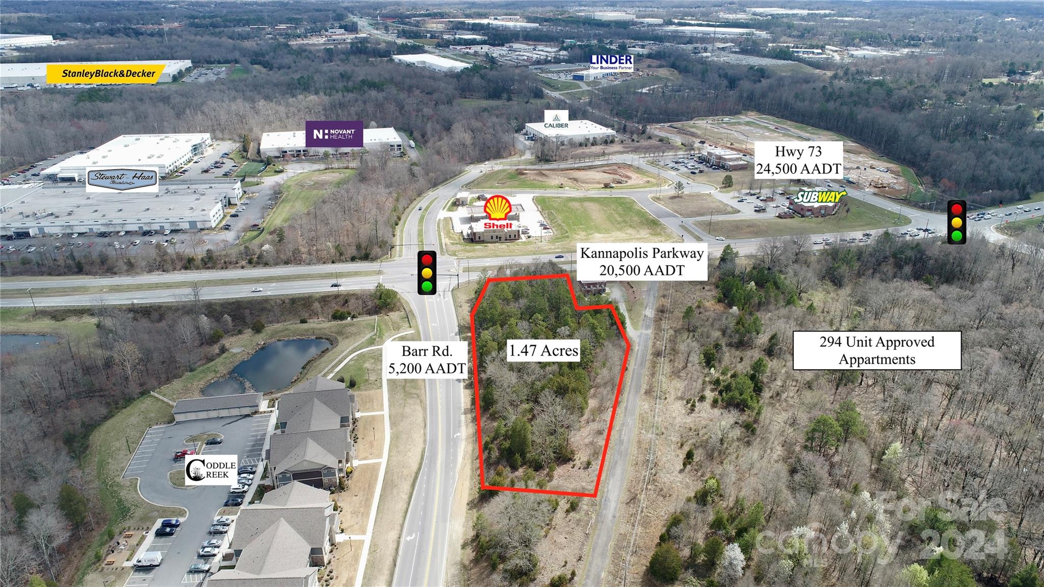 · SALE PRICE: $475,000 · CD COMMERCIAL ZONING · COMBINED 25,700 AADT TRAFFIC COUNTS · ON SITE WATER / SEWER NEARBY · ACCESS TO SIGNALIZED LIGHT · GENTLE SLOPING TOPOGRAPHY Located at the heavily traveled corridor of Kannapolis Parkway and Barr Rd. in Kannapolis, NC, this lot offers access to a signalized intersection, utility access, and flat topography. The site also enjoys close proximity to I-85, Hwy 73 (Davidson Hwy), I-485, downtown Kannapolis, and Concord. The property is within close proximity of many business parks, retail centers, residential developments, and schools. **An engineering firm contracted by the city has provided an estimate of approximately $460,000 to access and connect to the sewer line on RL Ketchie Blvd. **City owned property. Offers subject to upset bid process and City Council Approval. Earnest Money Deposit must be at least 5% of Purchase Price.