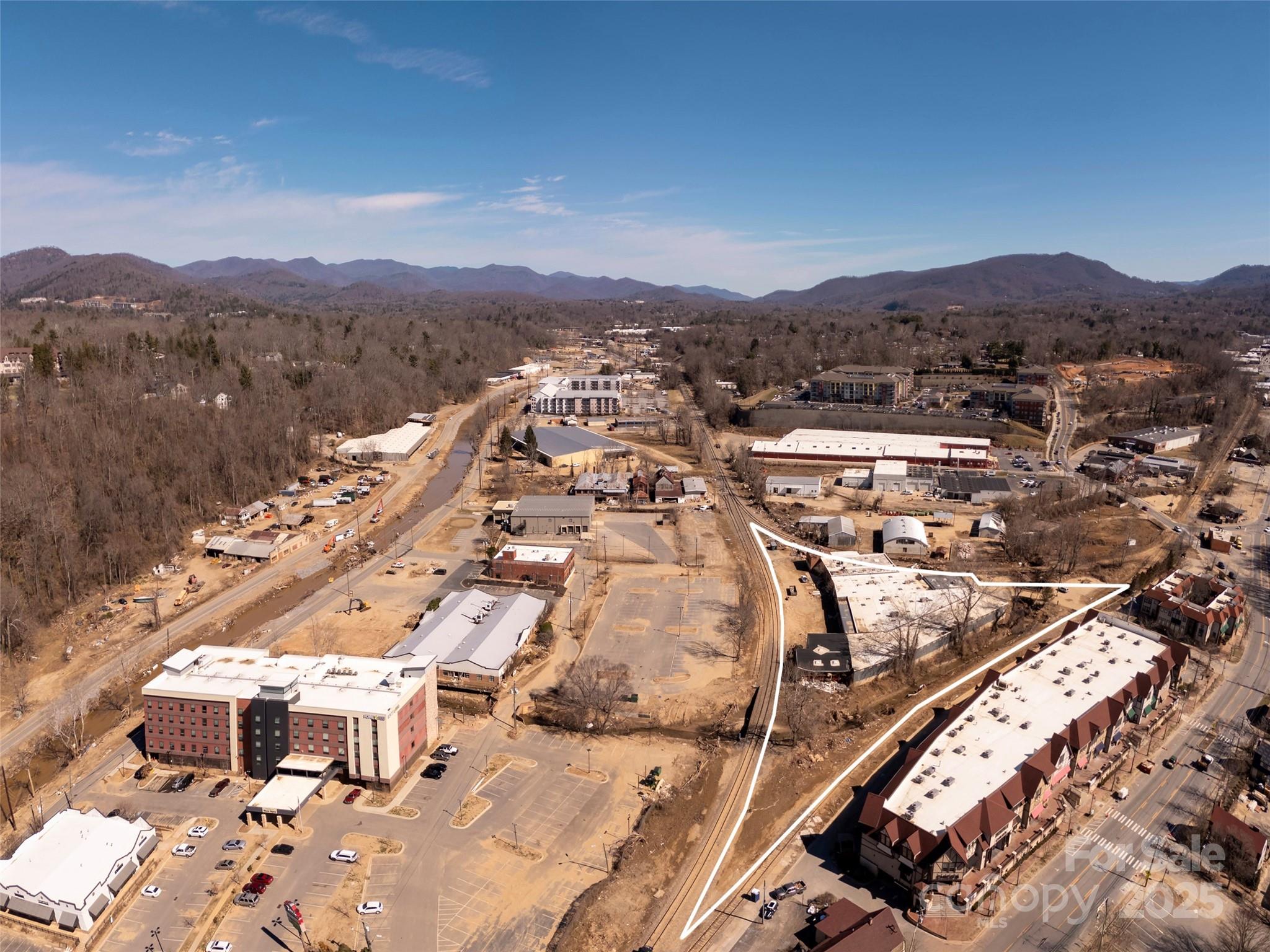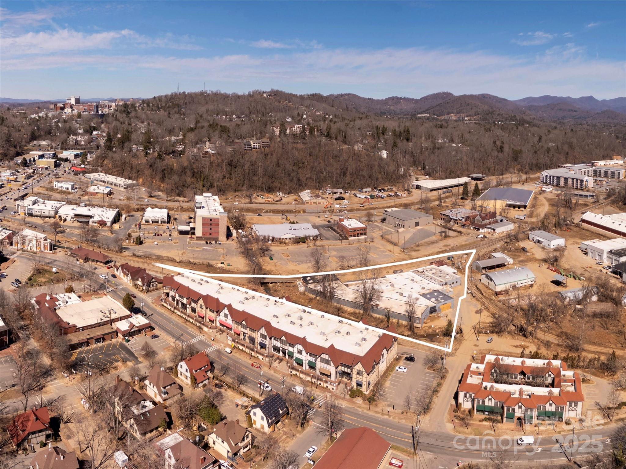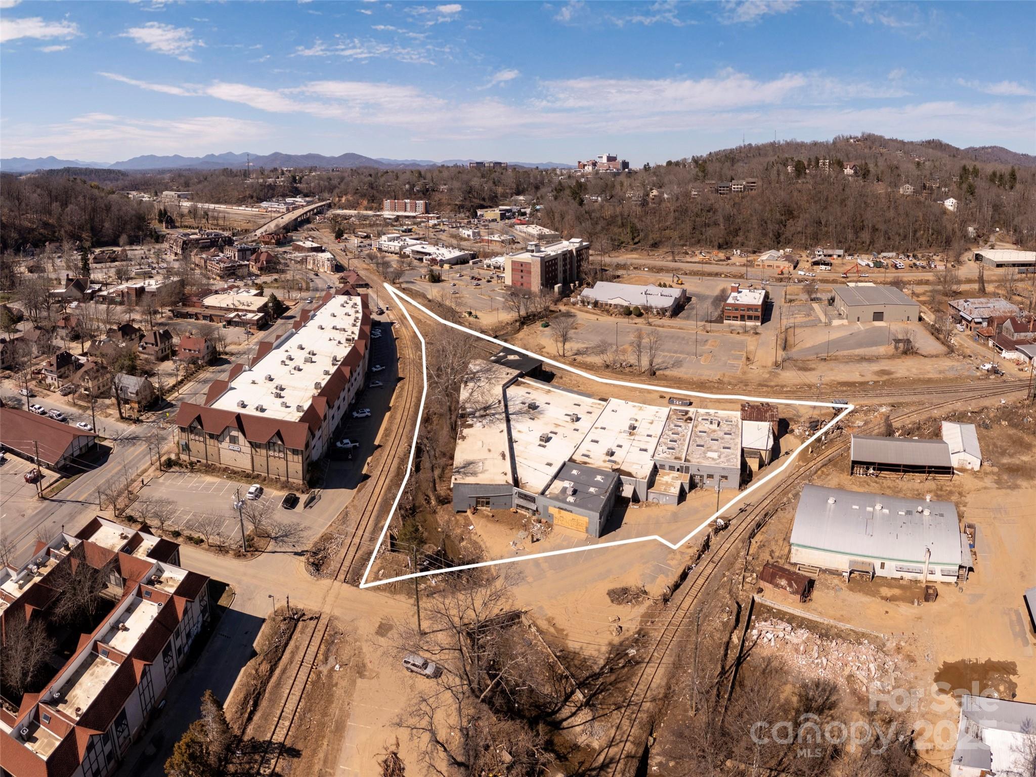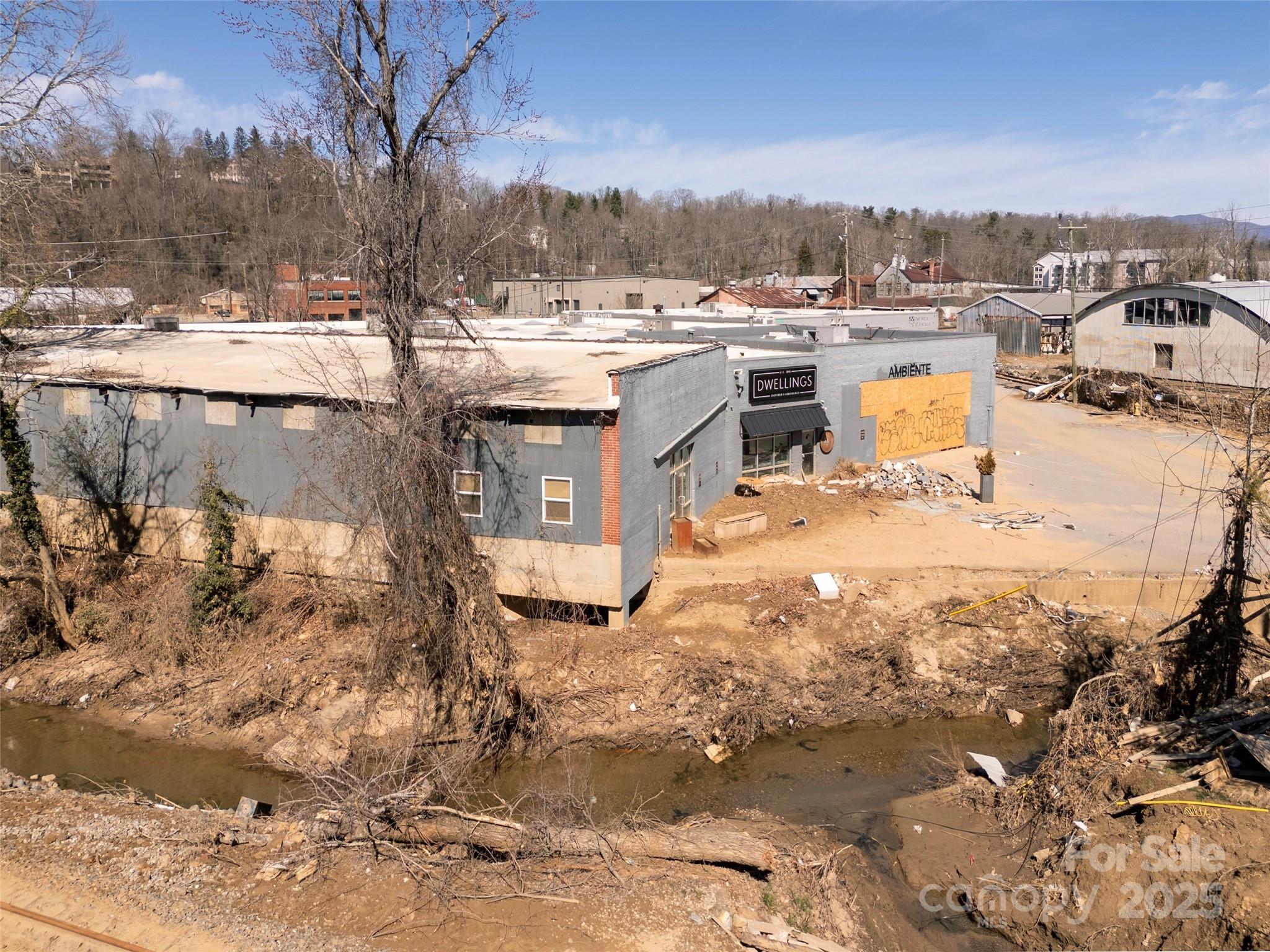 Excuse the Mess, But Don’t Miss the Opportunity! Beyond all doubt - Biltmore Village will emerge stronger and more vibrant than it has ever been! Look close - this diamond-in-the-rough industrial property presents the rarest of post Helene redevelopment opportunities: hospitality (blue zone), adjacent historic Biltmore Village District but not in the District, floodplain/floodway yes, ravaged yes, but ready for a fresh start under the 50% rule atop a ~45,000 SF building footprint! Explore surface parking to minimize ground penetration and rise-above parking with engineered columns as means to maximize the 2.34 acre horizontal plane. Railroad theme... possibly - a nod to history and George Vanderbilt’s vision that helped build this region and country. Truly a hub for top-tier retail, hospitality, and lifestyle – everything is walkable in Biltmore Village! If you seek excellence, this location undoubtedly calls out for the finest in hospitality or select mix-use redevelopment.