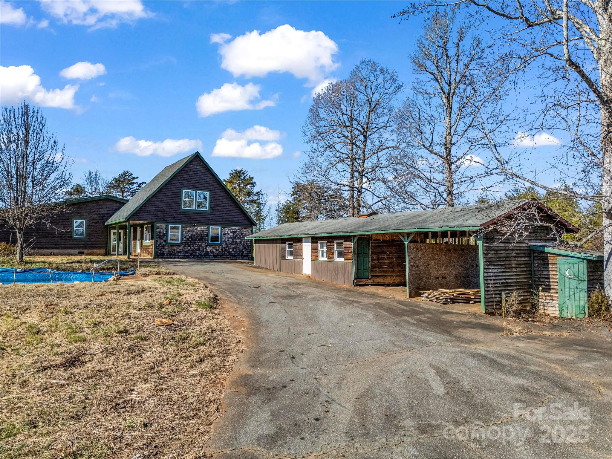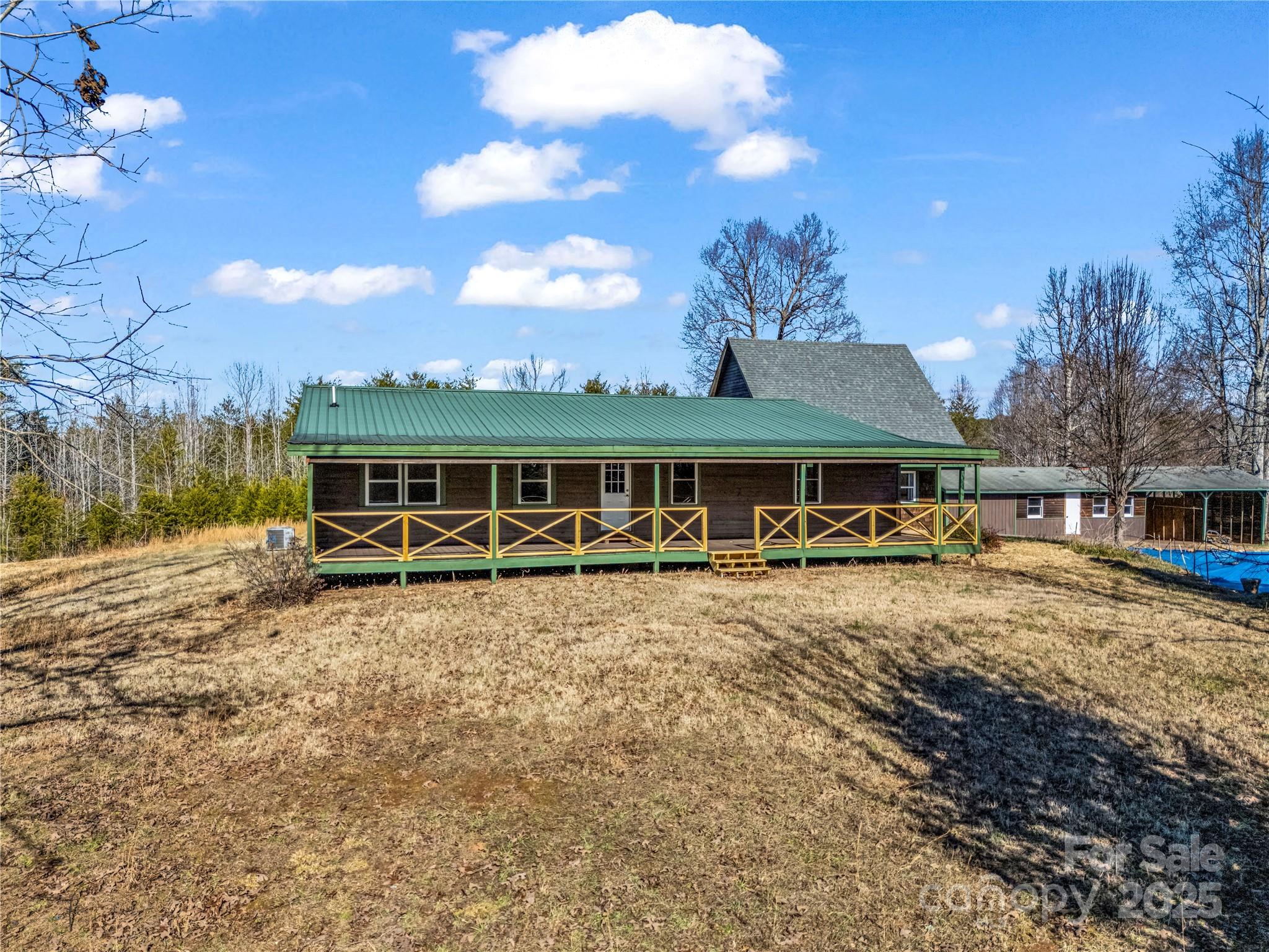 MOTIVATED SELLER! PRIVACY? VIEWS? NO RESTRICTIONS? Schedule your appointment today to view this AMAZING 3BD/4BA home offering 3,760 square feet on 5.47 acres with so much potential for a mini farm! Covered front porch welcomes you inside to a living room with FP/gas logs, a choice of 2 primary bedrooms each having primary full baths, and a flex/office space with laundry area! Massive great room has cathedral ceiling and stone FP/gas logs and wood stove. Open to your DREAM kitchen with a grand breakfast bar and butcher block countertops next to the dining area and walk-in pantry! Jack and Jill full bath open to a flex space/4th. bedroom! Guest quarters is accessible from the inside and has an exterior entrance featuring a family room, kitchenette, and upper level bedroom with bath! In ground pool, workshop/storage building, and a 4-stall barn! Perfect set up for horses and goats! Imagine yourself living here tucked away from the city life but conveniently located to major highways!
