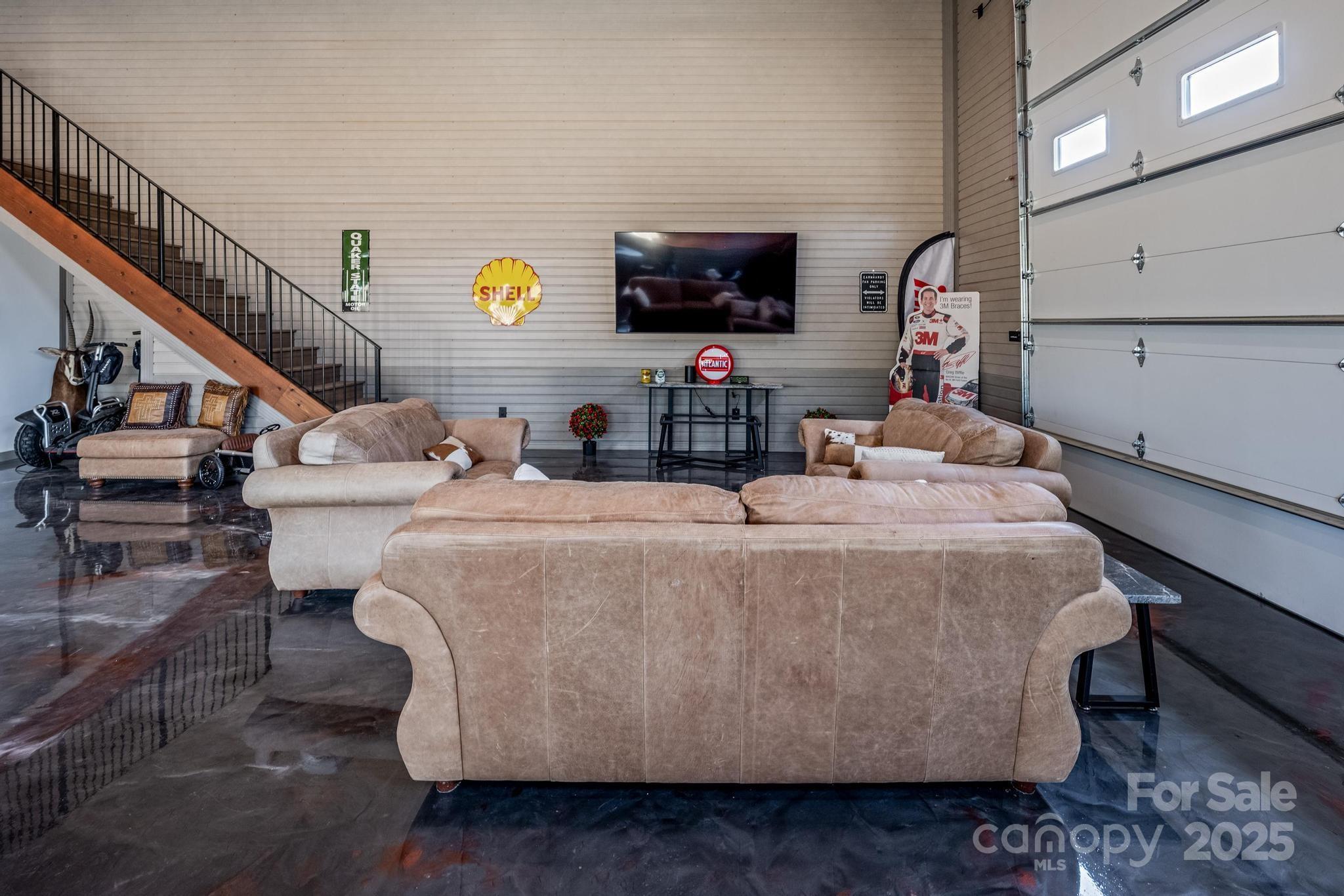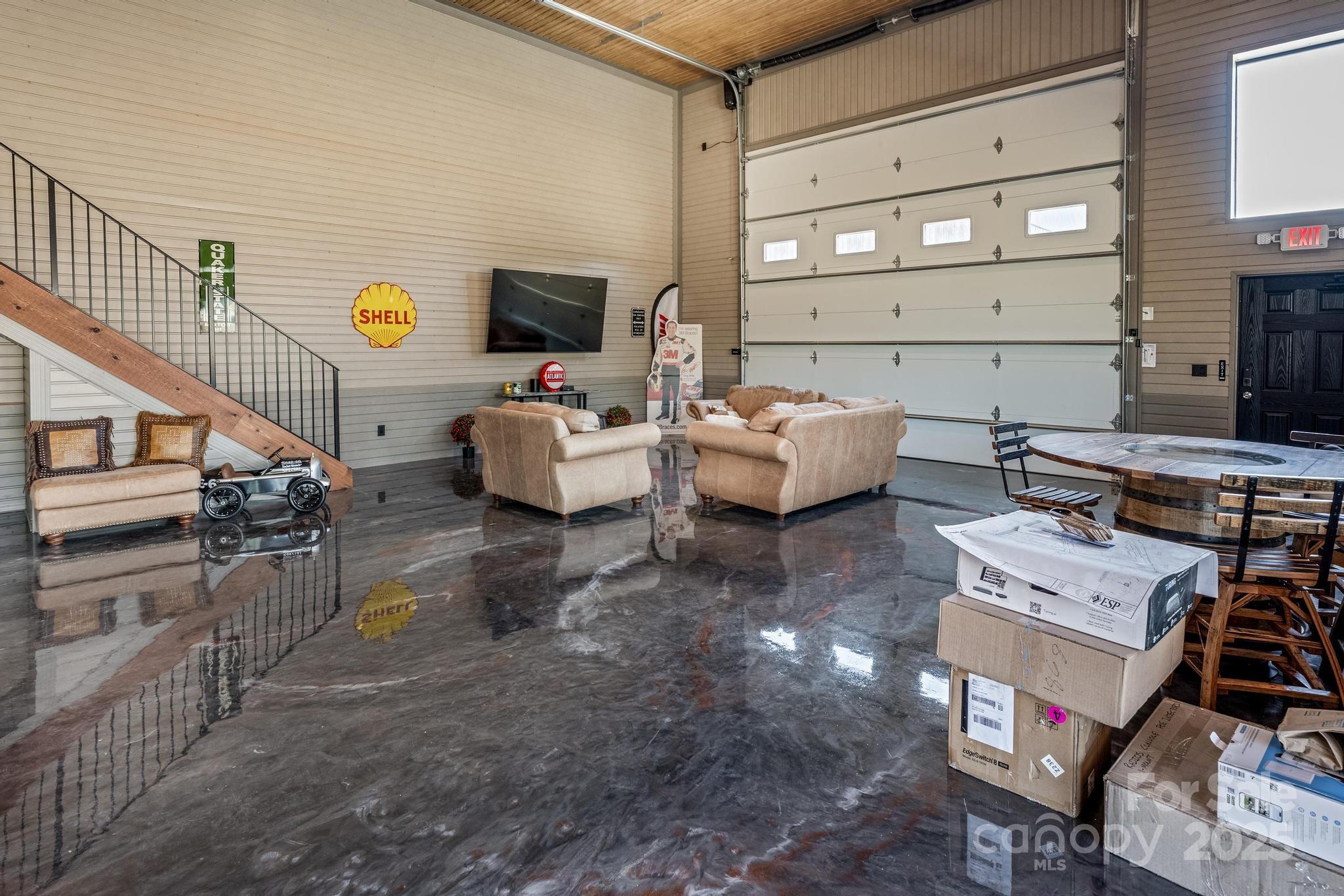 Unlock the ultimate storage experience at The Garages at LKN, just minutes from Lake Norman! This meticulously designed 1,500 sq. ft. luxury unit offers a spacious additional 360 sq. ft. mezzanine for entertainment, workspace, or extra storage, along with 18’ ceilings and a 16'x14' roll-up door for effortless access. Equipped with 50 amp power and an attached bathroom, this finished space is perfect for your RVs and stunning car collection. Custom Tagg floors blend elegance and practicality—just move in and close the door!With secure gated entry and keypad access, your valuable vehicles are safe and easily accessible. Enjoy amenities like a clubhouse, wash pad, and dump station to keep your possessions in pristine condition. Join a community of like-minded individuals who share your passion for luxury leisure. Don’t miss this chance to elevate your storage options—make this dream space yours today! The current owner is moving to a larger unit, creating this rare opportunity for you. Seller would consider a long term lease or other possible terms. Give us a call!