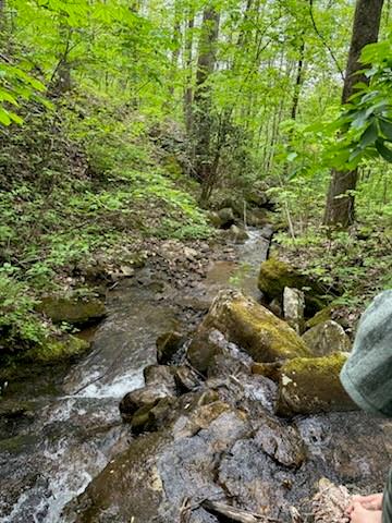 Mountain-top acreage in gated Silver Creek Springs subdivision located south of Morganton, NC: Five wooded, sloping acres with mountain views, bordered by a creek. Community well is available, needs water tap and septic tank. Clubhouse with fenced pool and picnic area are within walking distance. Required minimum square footage of 800 sq. ft. and architectural review. Required HA dues of $420/per year. Air B&B allowed with extra $200 HOA dues per year. Owner financing possible with acceptable offer. A separate entrance is available for oversized trucks and heavy equipment. Property is listed under tax value at $14,000.