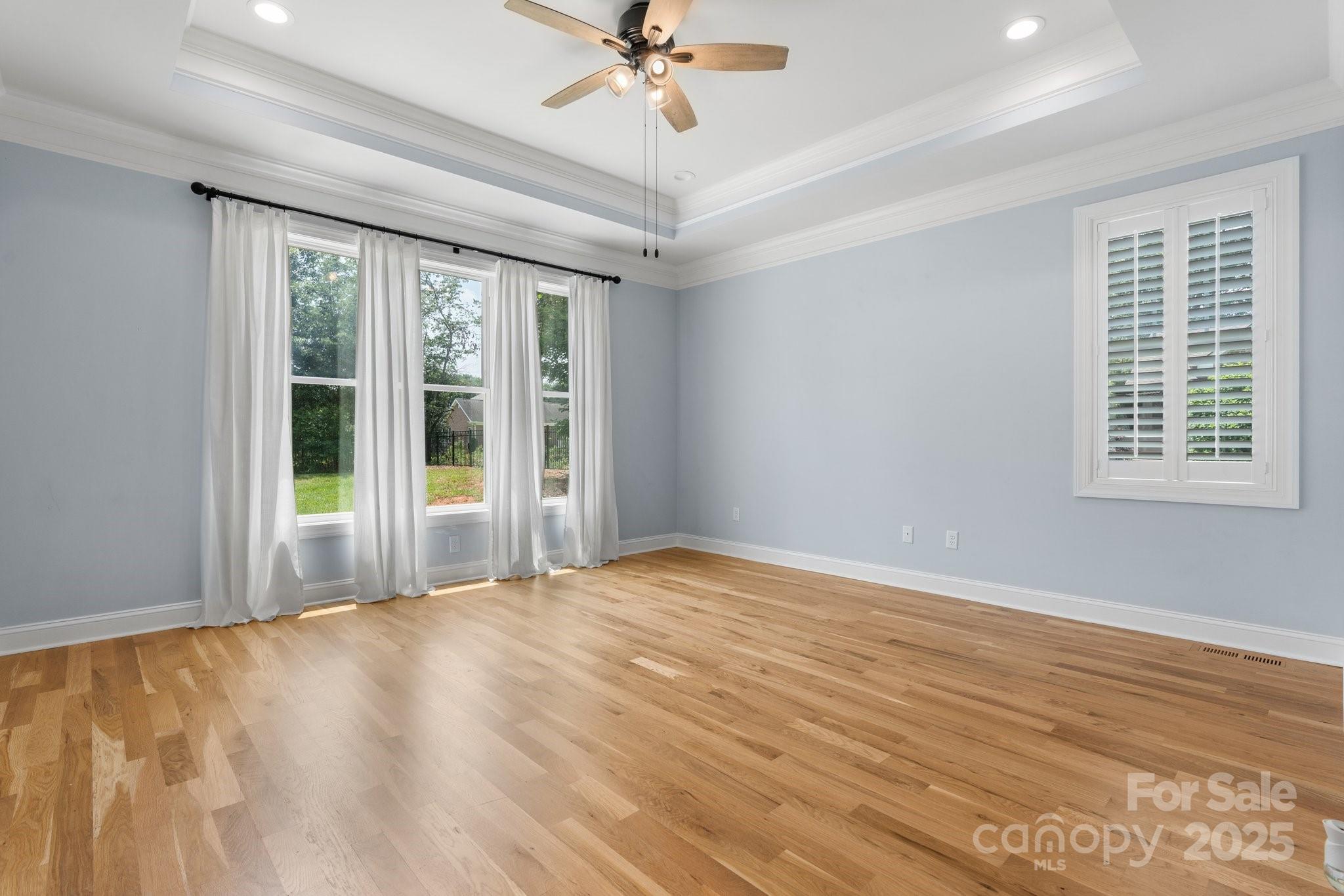 Welcome to this gorgeous modern farmhouse with thoughtful upgrades throughout! Enjoy an open-concept layout with vaulted ceilings, crown molding, & wood floors in main areas. Gas log fireplace in the living room. The kitchen with dining area features a gas range, built-in pantry with sliding drawers, & all appliances convey. The primary suite on the main level boasts a tray ceiling, steam-capable tile shower, dual vanities, & walk-in closet. Flexible front room works as a home office or formal dining room. Upstairs offers 2 spacious bedrooms plus a versatile 4th bedroom/bonus room over the garage, currently used as a theater room. Washer/dryer in laundry room convey. Outdoors, enjoy a fenced yard perfect for pets & wooded privacy behind. Upgrades include: encapsulated crawlspace, epoxy-coated garage floor, plantation shutters, Govee smart lighting, and security cameras. City water/sewer & no HOA dues. Don’t miss your chance to own this beautifully upgraded newer home built by Grogan!