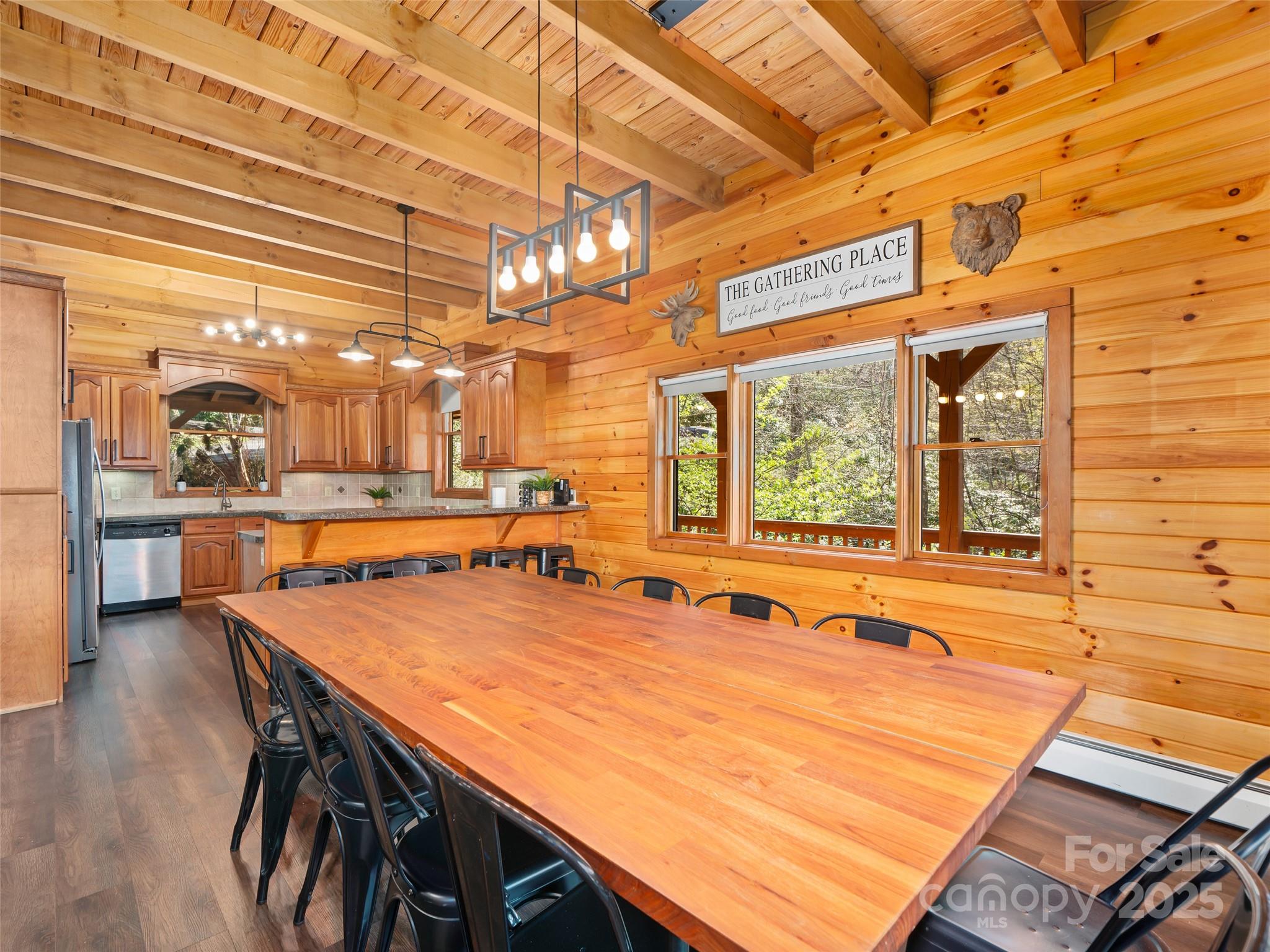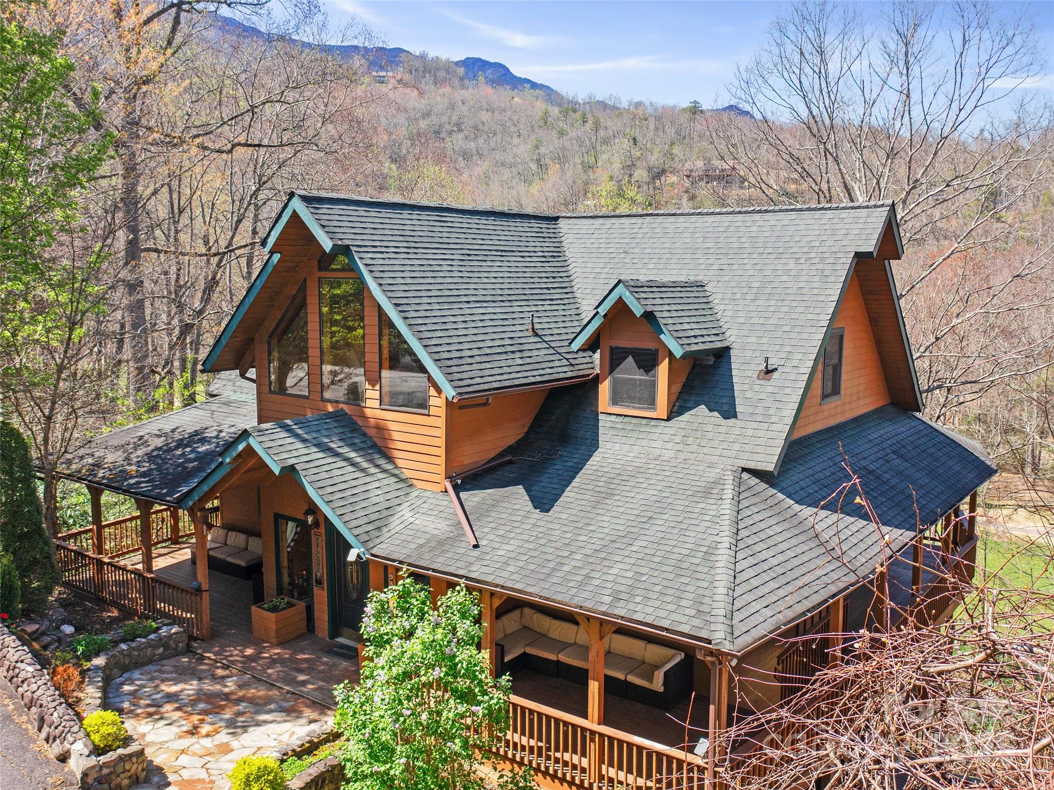 Resting above the Mt. Mitchell Golf Course -12th fairway with peaceful sounds of the passing South Toe River in the distance rest this 3 story beautifully crafted contemporary home with full basement. With its spacious 5 bedrooms sleeping 14 guests this beauty affords plenty of room for multi-generational living. Home rest on a carefully landscaped double lot with striking mountain views and has a creek running through its lower portion. This custom home is truly one of a kind, built by the previous owners (licensed contractors). The current owner has decorated and perfectly planned the various spaces throughout the home and has operated it as a very successful short term rental and will convey the contents of the home will convey with the right offer. This area boasts of three rivers for fishing and kayaking and is close to 10 of the highest peaks East of the Rockies, hosting plenty of trails for hiking, mtn. biking or just taking in the incredible natural beauty all around.