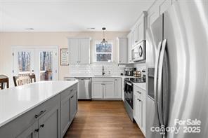 Welcome to this charming ranch home located just 5 minutes away from downtown Cherryville! This home boasts an open floor plan perfect for entertaining guests or simply relaxing with your loved ones. The spacious kitchen includes a large island with quartz countertops, SS appliances, and slow close cabinets. Barn doors on pantry and primary walk in closet have been added, which gives this home a modern farmhouse look. With a split floorplan of 3 bedrooms and 2 bathrooms, there is plenty of room for the whole family. Don't miss out on this opportunity to make this your forever home! NO HOA!!