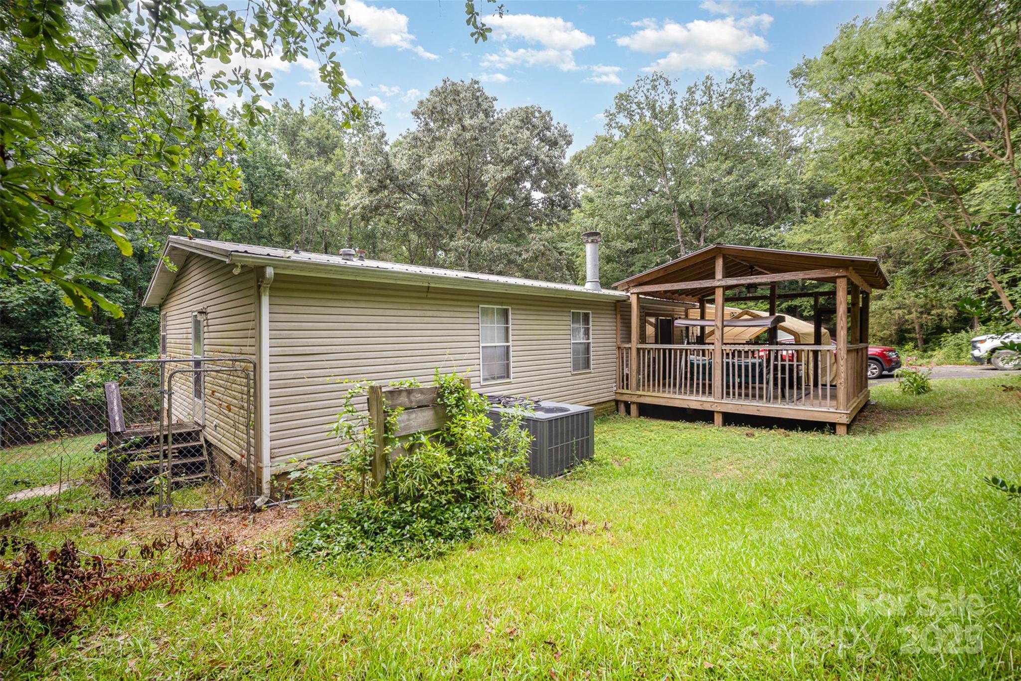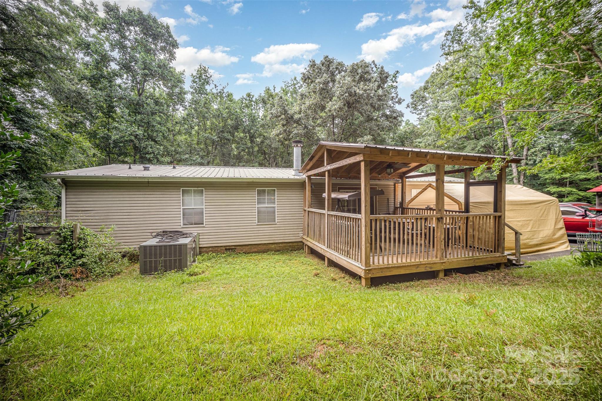Escape to your own private retreat on 3.01 acres surrounded by mature trees—peaceful, quiet, and no HOA restrictions. This 3 bed, 2 bath manufactured doublewide offers both comfort and confidence, with major updates already done: a 2019 electric heat pump HVAC unit, 2019 metal roof, and 2018 electric water heater. Enjoy your mornings on the front porch and unwind in the evenings on the covered back deck, listening to nature all around. Plenty of space to garden, explore, or just breathe. A rare blend of privacy, practicality, and peace of mind.