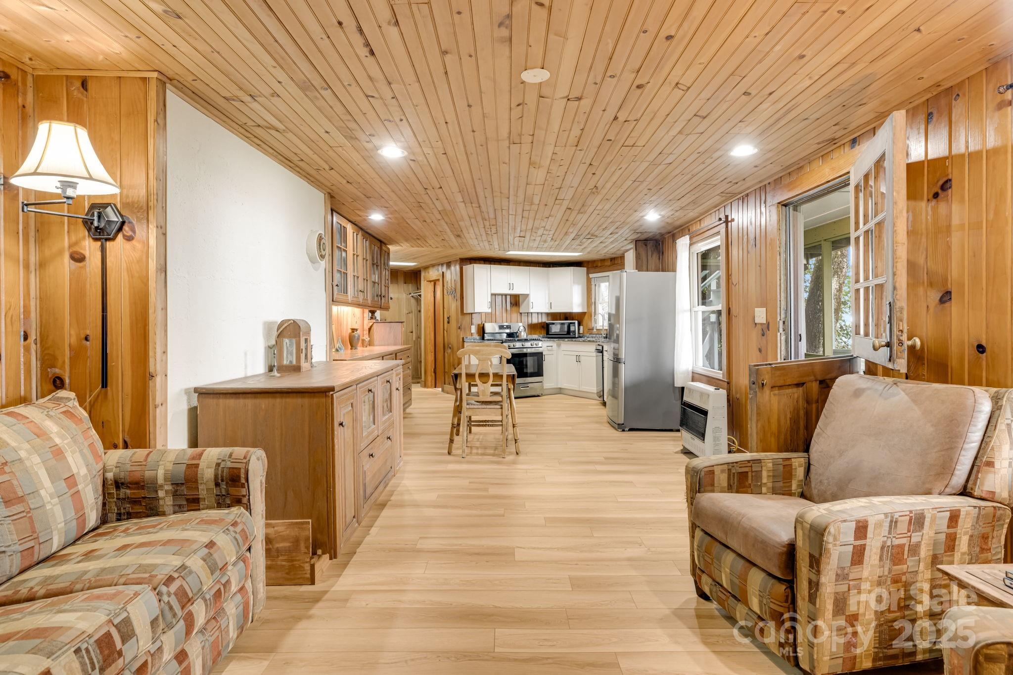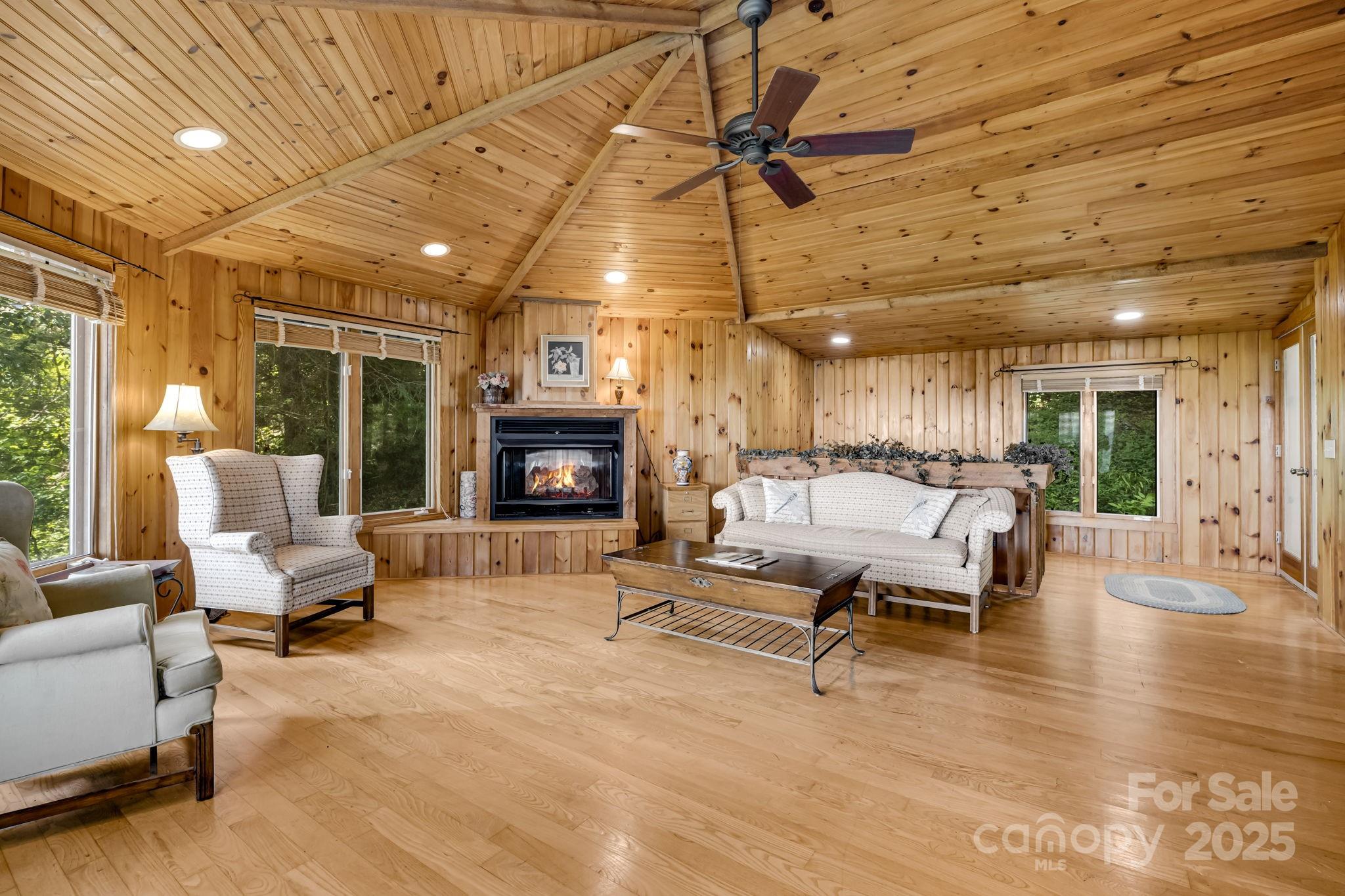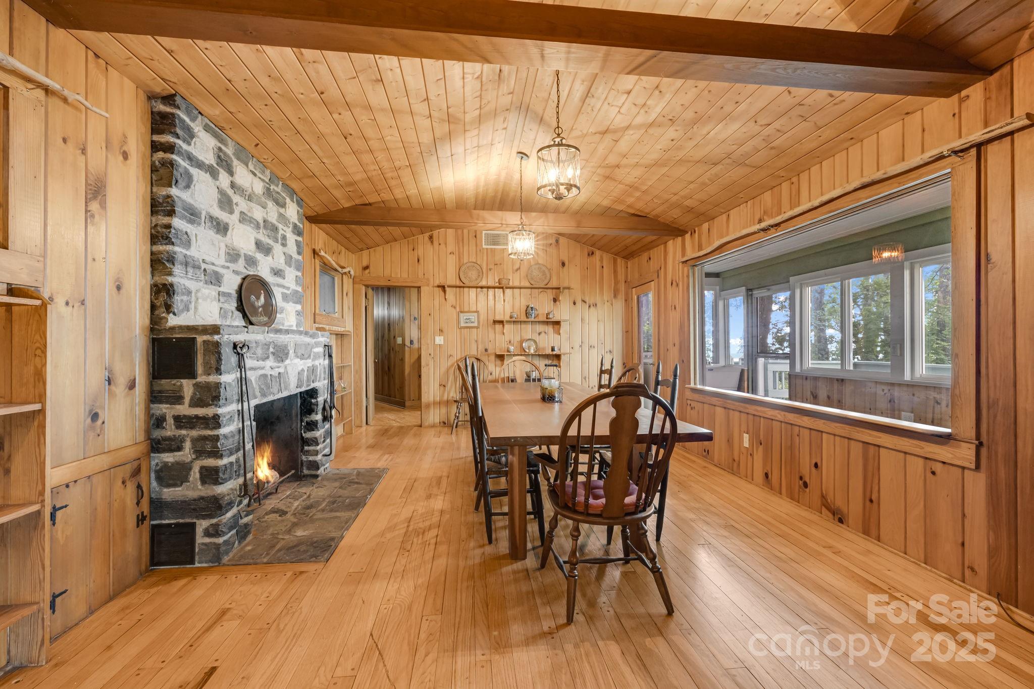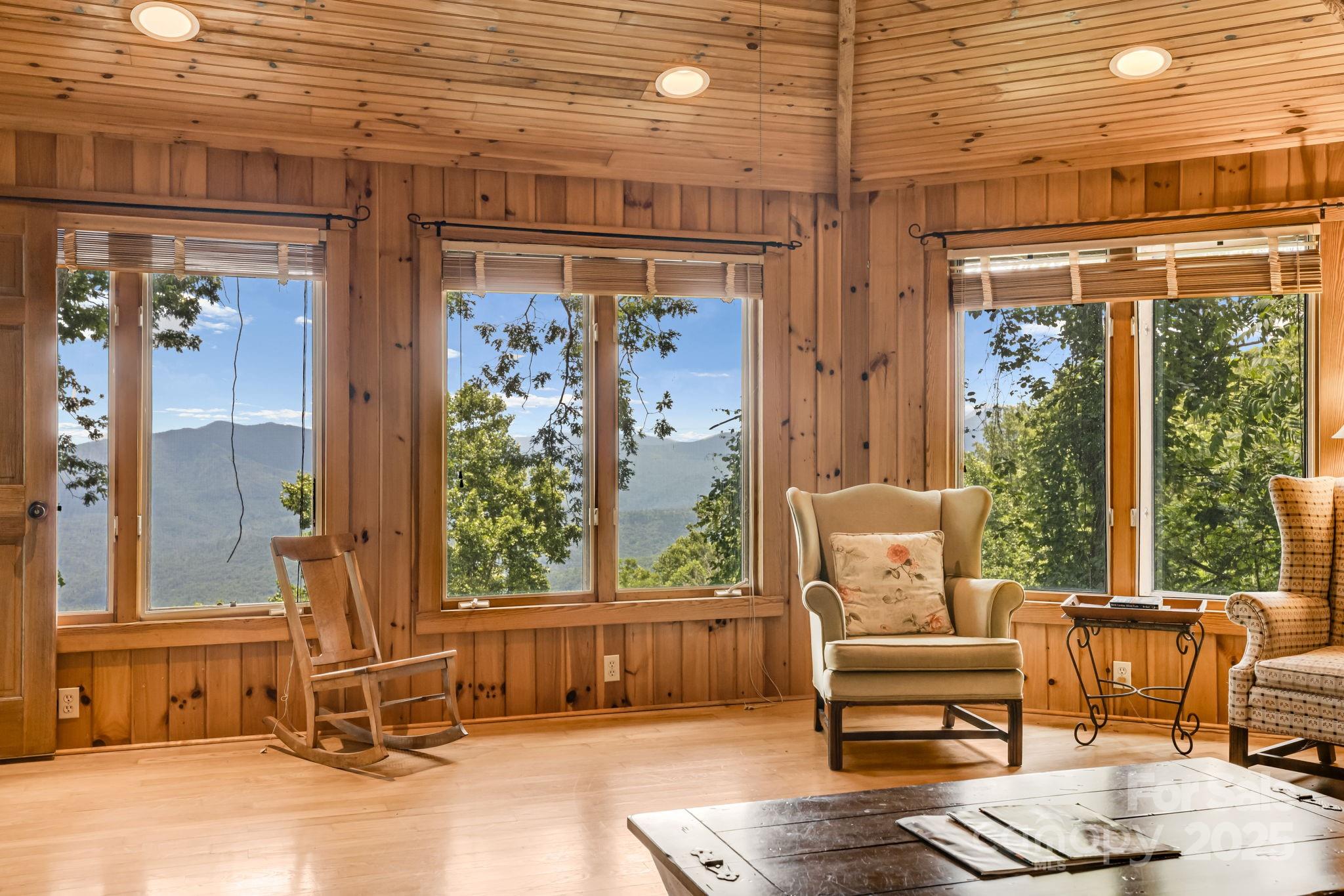 Tucked into the heart of Little Switzerland,this 3 bed,2 bath,multigenerational home offers breathtaking south-facing long-range views from almost every window!Embrace authentic mountain living with knotty pine walls, warm peg and groove flooring and charming Dutch doors! The heart of the main home features dramatic ceilings and a stunning stone fireplace complete with local quartz pieces.A separate,self-contained living quarters provides ideal space for guests.Step outside onto 2 inviting decks to soak in the endless panorama.Further enhancing the outdoor experience is a dedicated observation deck with a substantial stone barbecue nestled in the yard-perfect for gatherings amidst the peaks.Remarkably,no air conditioning is needed;the higher elevation and mountain updrafts ensure comfort.Cozy ambiance is guaranteed with both a traditional wood burning fireplace and the convenience of a gas fireplace.This unique haven seamlessly blends rustic character for unforgettable mountain living.