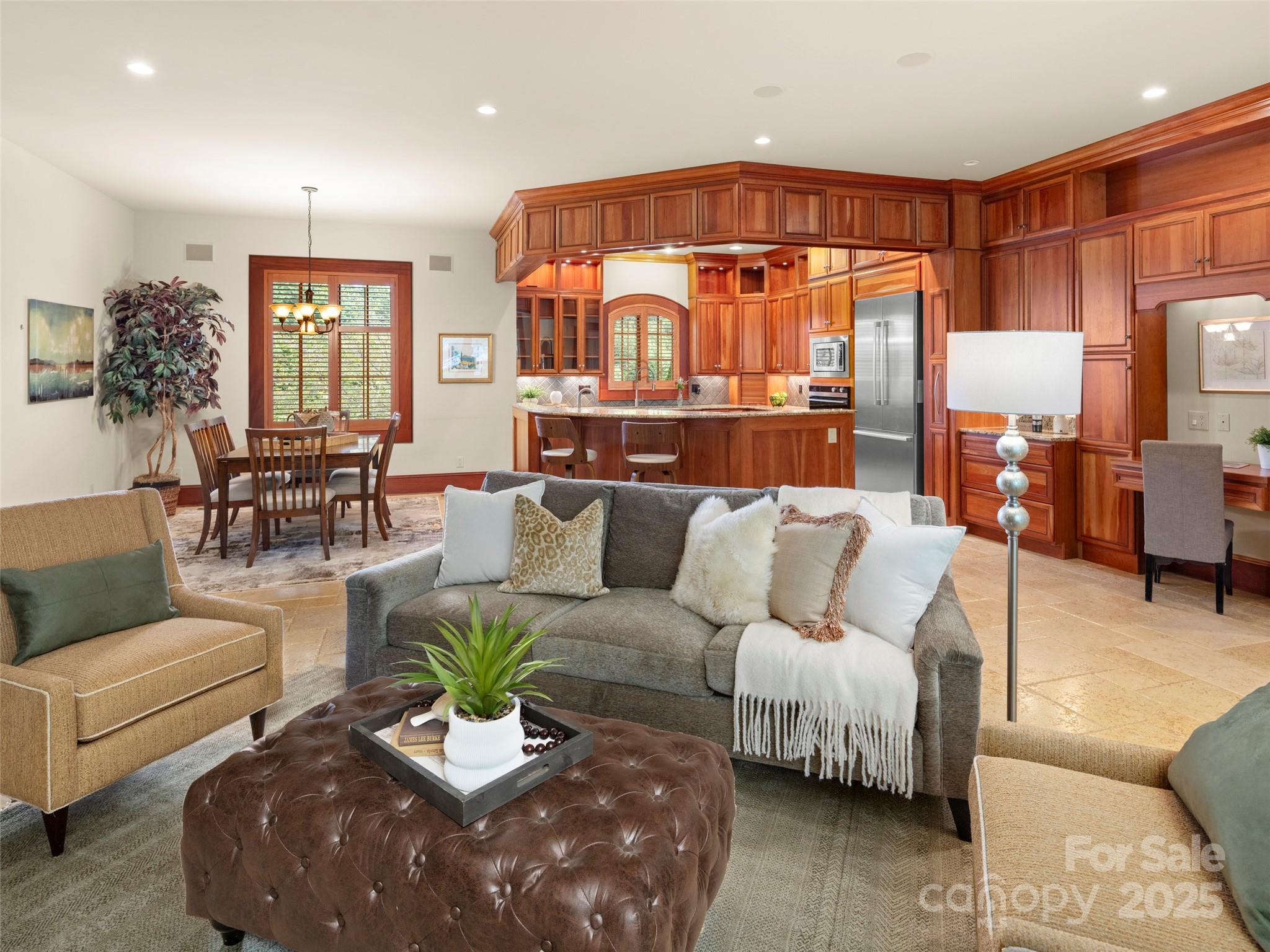 Welcome to this extraordinary residence, where timeless architecture and refined finishes come together to create an unparalleled living experience. From the moment you arrive at the gated entry, this exquisite estate makes a striking first impression. The main level offers over 4,000 square feet of luxurious living space, designed with an open-concept flow and an abundance of character. Soaring coffered ceilings, rich hardwood floors, and impeccable craftsmanship set the tone. The gourmet kitchen is a chef’s dream and seamlessly connects to the dining room, breakfast room, and great room. Here, an impressive floor-to-ceiling stone fireplace anchors the space, extending into the billiards room with a full bar which is perfect for entertaining. The primary wing is a true gem, featuring a large suite with dual baths, his & hers walk-in closets, a spacious walk-in shower and a soaking tub. Also included is a private study, and a dedicated laundry room, a cozy sitting room with a see-through fireplace which opens to a second living area and a private guest suite with a full bath. Upstairs, you’ll find another guest ensuite, a family room (which could function as a bedroom) and a private sauna/full bath. The lower level offers versatile heated spaces including multiple workshops, a craft room, fitness (or theatre) room, and full bath. Step outside to the covered stone terrace and enchanting English garden, where relaxation and elegance blend seamlessly. This remarkable home is a perfect balance of luxurious comfort, thoughtful design, and timeless sophistication, ideal for both private living and grand entertaining.