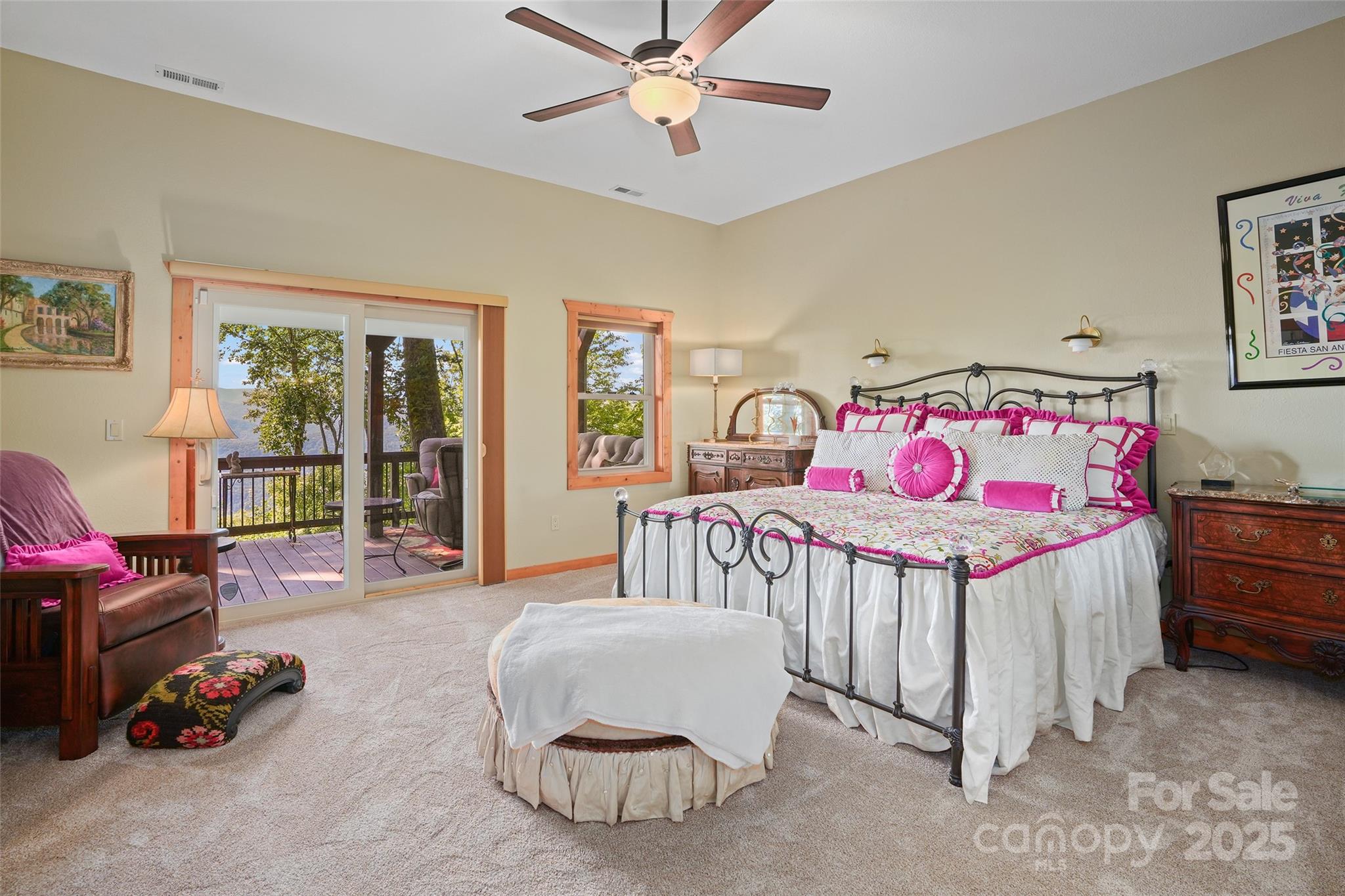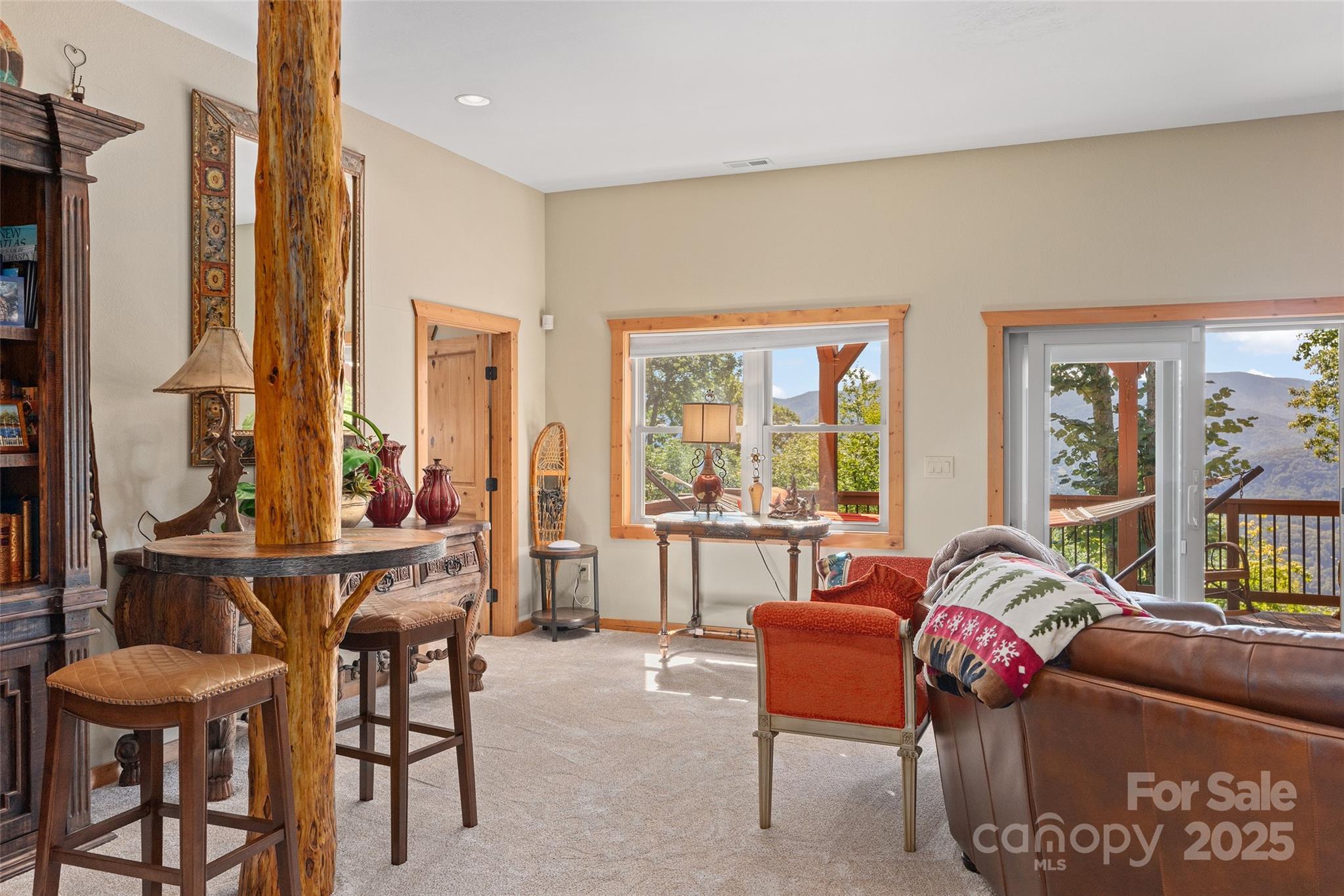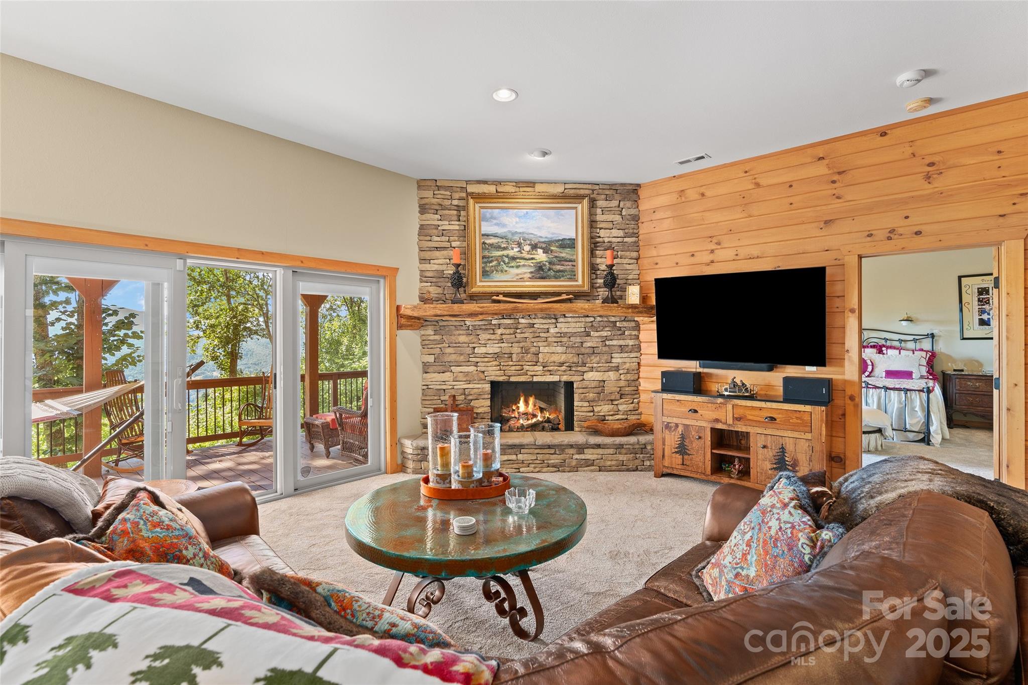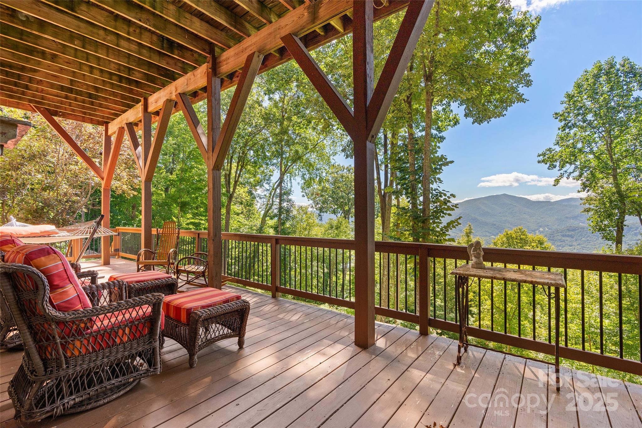 Live the mountain dream at 3,900 feet elevation in this expansive Laurel Ridge Country Club home, just 10 minutes from Main Street Waynesville! This stunning residence offers both covered and open decking to soak in breathtaking, long-range views of the mountains, city, valley, and golf course. Set on a rare 3.73-acre lot, you'll enjoy peace, privacy, and quiet that's hard to find. Featuring 3 bedrooms and 4.5 bathrooms, the home is ideal for a full-time residence, second home, or retirement retreat. While it's currently being used as a 4-bedroom home, the septic permit is for 3 bedrooms. As you step through the front door, a wall of windows immediately showcases panoramic mountain views. The post-and-beam front porch adds rustic charm, and nearly every room in the house captures the beauty of the surrounding landscape. The main level boasts a luxurious primary suite, with incredible double vanity counter top, and tile floor and shower, guest bedroom with full bathroom, soaring T&G ceiling great room with gas log fireplace, a beautifully appointed kitchen with quartz counter tops, and laundry room all on the main level! Upstairs, you’ll find an open loft office with a half bath. The lower level offers self-sufficient guest quarters complete with a coffee bar, recreation room, bonus/bedroom, full bath room, and additional guest suite—perfect for hosting family and friends. High-end finishes and meticulous attention to detail define the inviting floor plan of this exceptional mountain retreat!