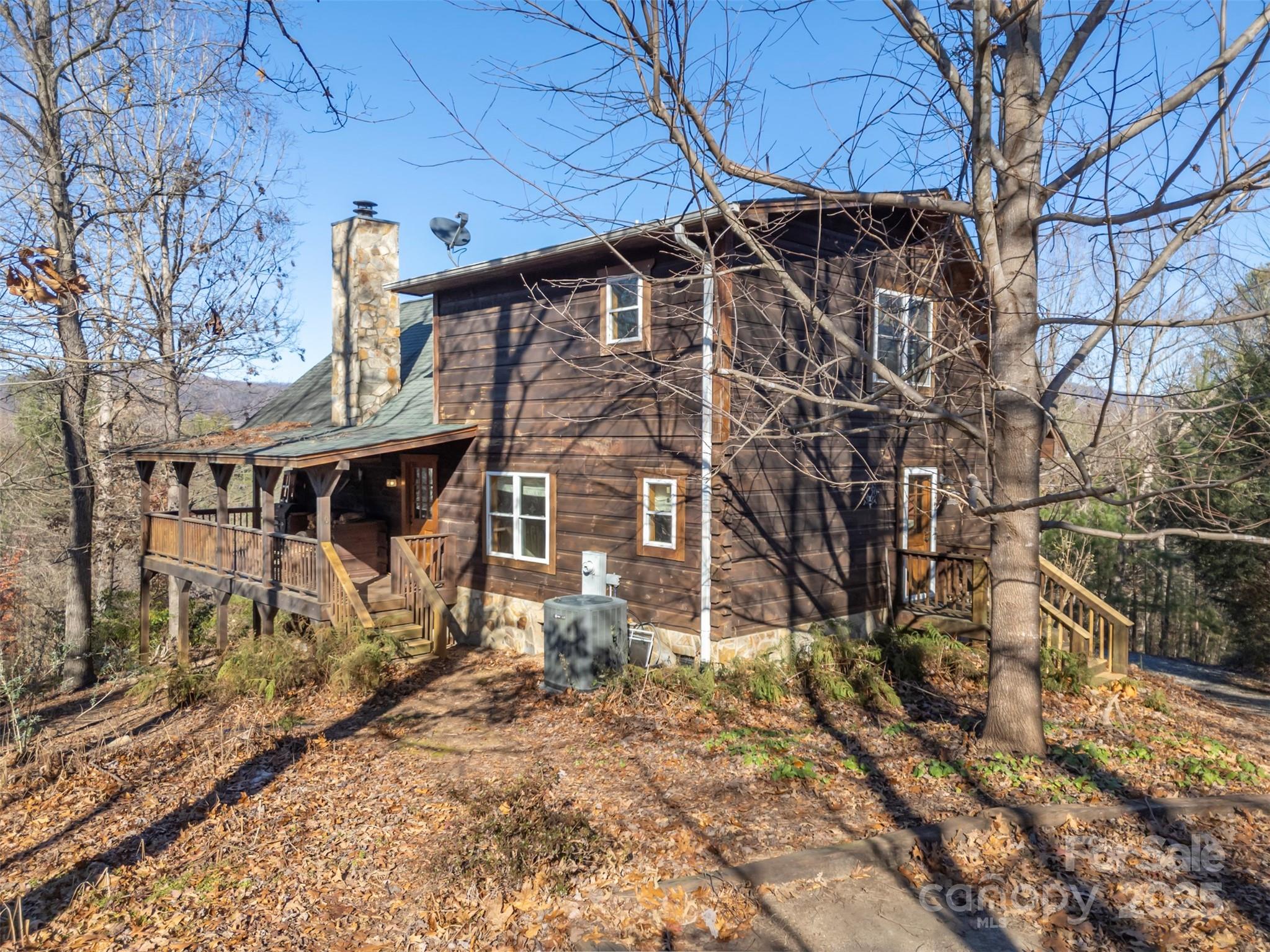 Hidden Log Cabin Hideaway with 10+/- acres in Bostic. Beautiful view of the South Mountain Range, Wraparound porch to enjoy the views, entertain, or just relax. Great Kitchen with granite counters and solid cherry cabinets, Living room features wood burning stone fireplace, large windows for plenty of natural light and to look at the mountain views. Two Primary suites, one on the main floor with tub/shower, a wooden branch staircase leading to the loft which hosts another primary bedroom with a walk-in closet, and bath with walk-in shower. Home offers red oak wood floors, tile floors in bathrooms, and a dry crawlspace with storage area. New roof installed 9/12/2025. The property offers 35 Blueberry bushes, Asian Persimmons, Pawpaw trees, Apple trees, Plum trees, a creek, and privacy. The 3.5 acre tract has a well and septic tank on it, conditions of each are unknown.