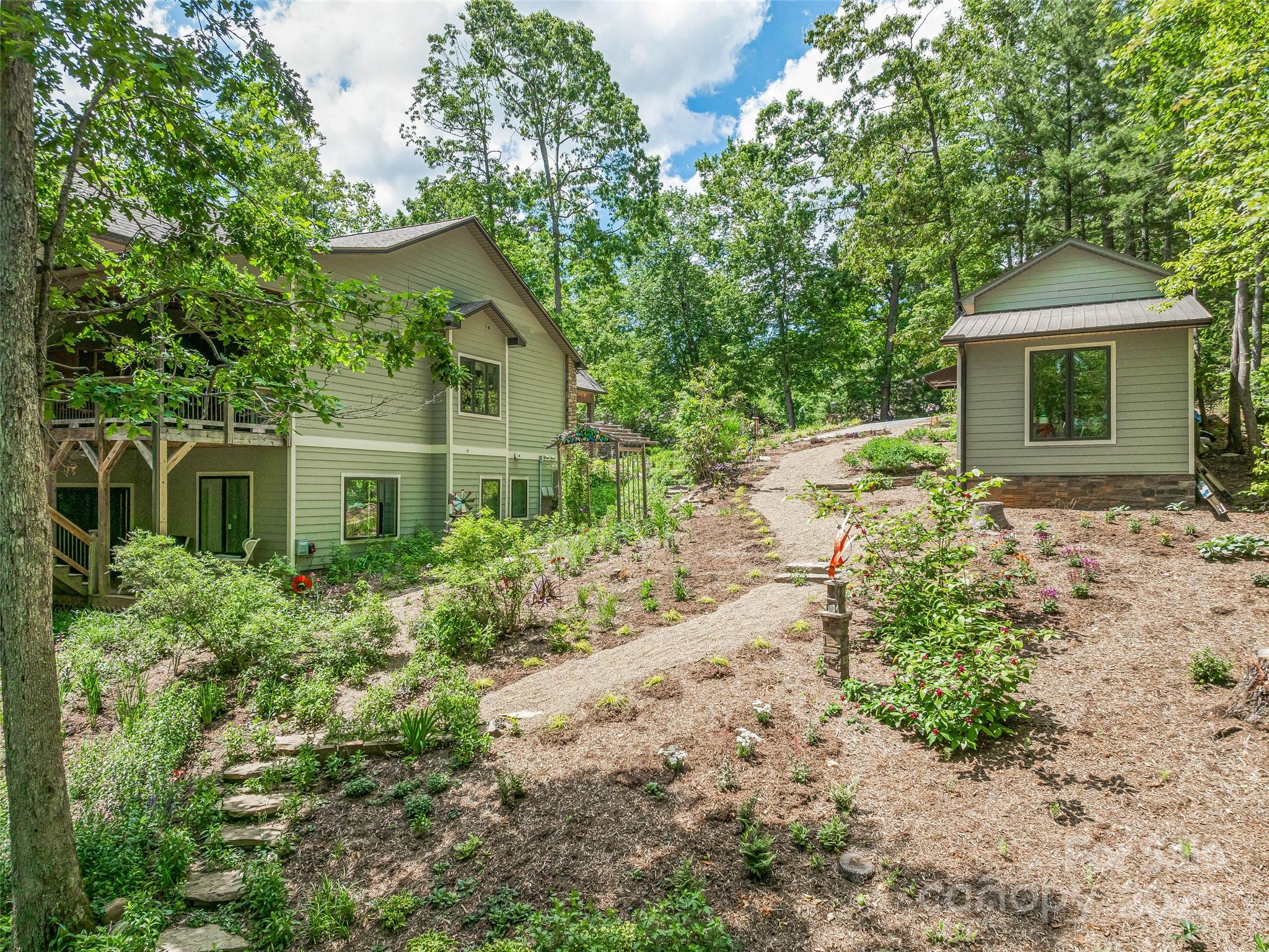 Discover elevated mountain luxury at 105 Blackberry Lane—a private retreat where sophistication meets serenity. Enter through a custom arched Italian door into a gallery-style foyer with soaring ceilings and custom lighting. Entertain effortlessly in the chef’s kitchen, great room, and music nook and large second living area, or host memorable evenings on the tree-top covered deck with an Earth stone pizza oven and artisan wood-burning fireplace. Enjoy 2,400+ SF of outdoor living with a spa-grade hot tub, pergola grilling area, and forest view firepit deck. The primary suite offers a spa-inspired bath, private balcony, and infrared sauna. Most of the home was updated in 2016, and the separate storage building was also added in 2016. Curated gardens, stone paths, water features, and seamless indoor-outdoor living enhance the experience of this beautiful property. It's not just a home—it’s a mountain sanctuary.