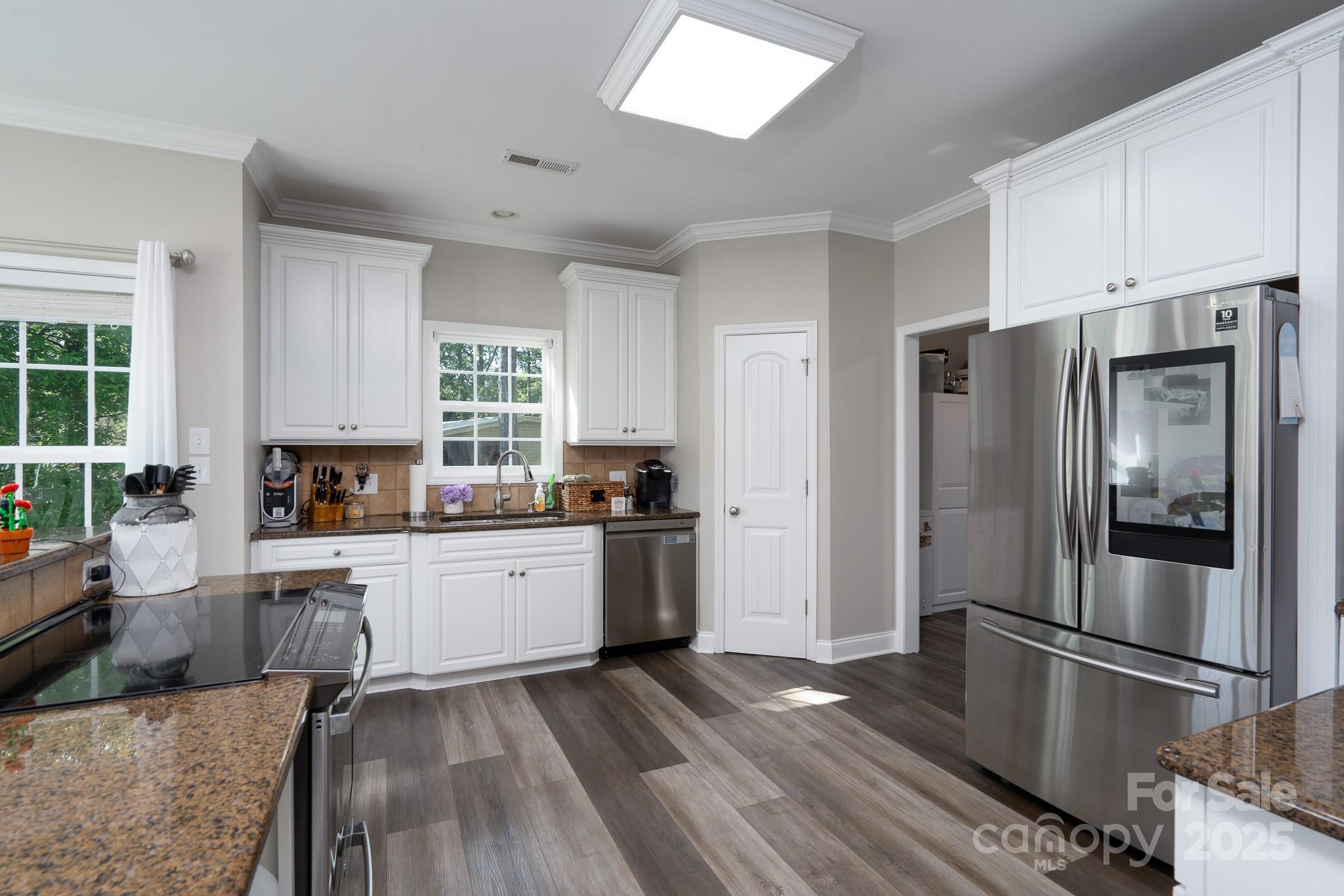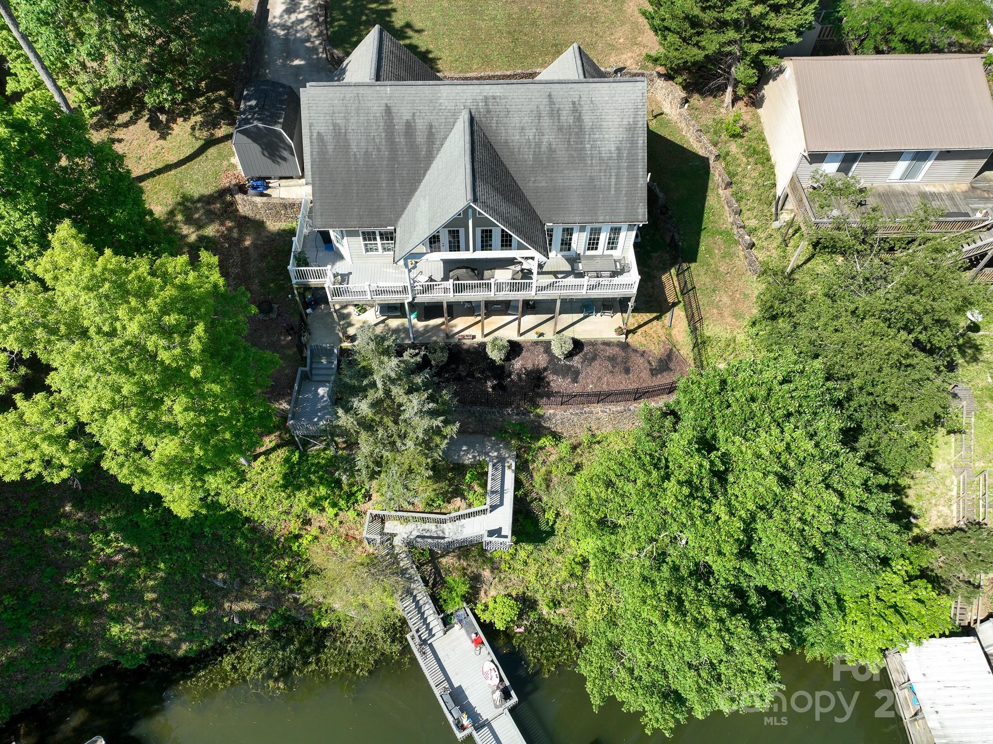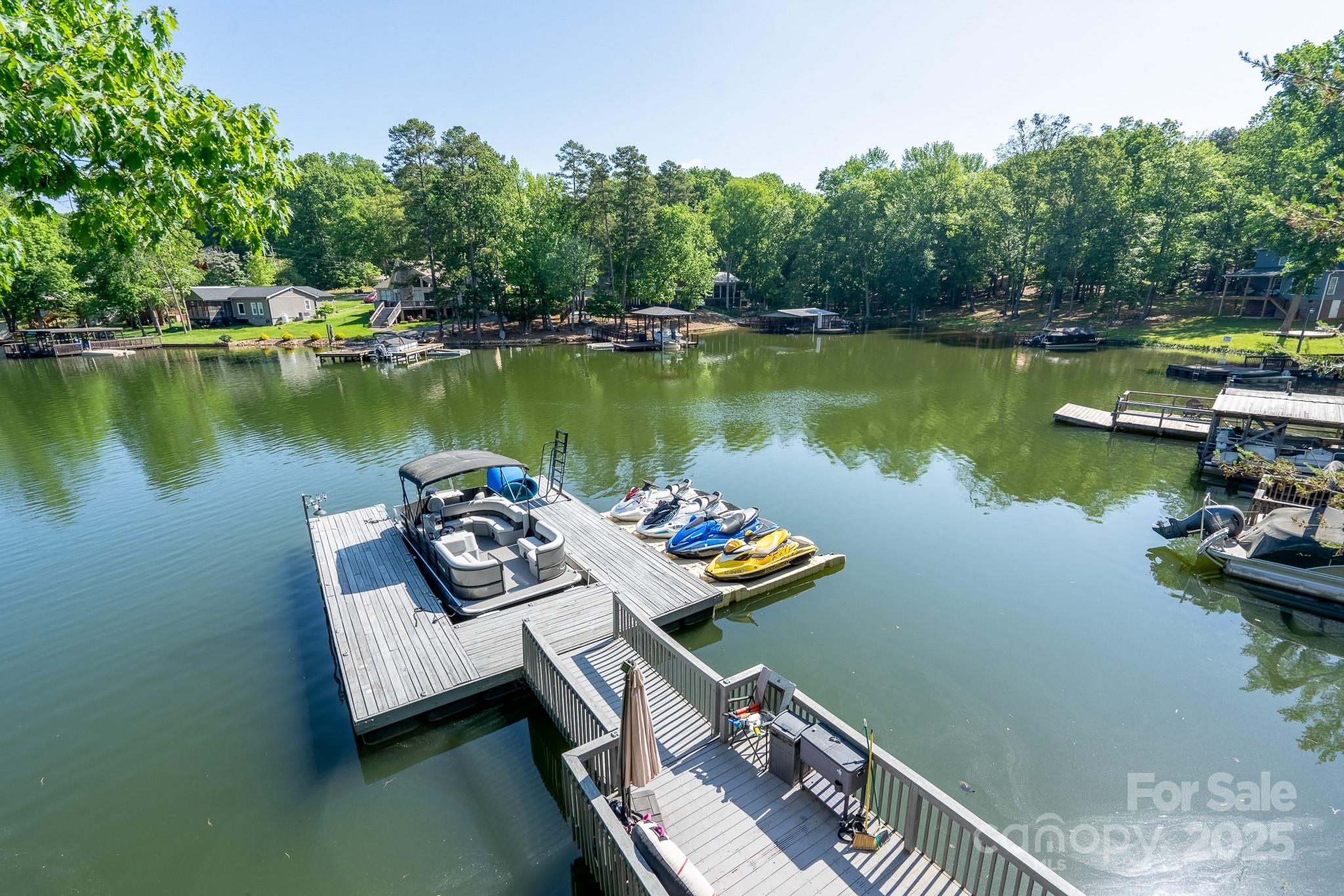 Custom built home offers serene setting for relaxing lake living! Spacious 1 level home with finished basement that overlooks a wide deep cove on Badin Lake. Open main level living that overlooks the beautiful lake with primary bedroom with master bath. Open family area to kitchen with breakfast area and bar that also has a breathtaking view of the lake. Dining room or Office on main level... you choose! Basement offers 2 bedrooms with Jack and Jill bath, theatre room/bonus room, large bonus room with a view of lake, plus another full bath. Paint and flooring was updated 3 years ago. Boat Slip with 4 jet ski docks and ladder, level 2 charging available for electric vehicles. Whole house fiber internet available. This home has it all!