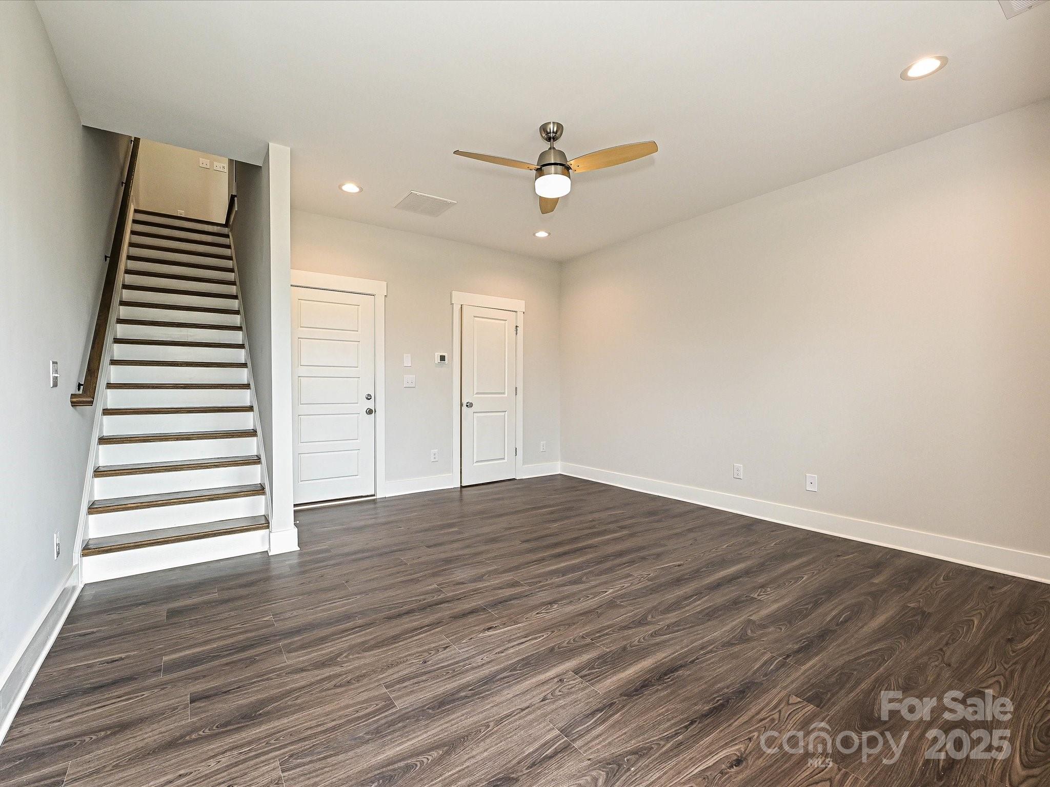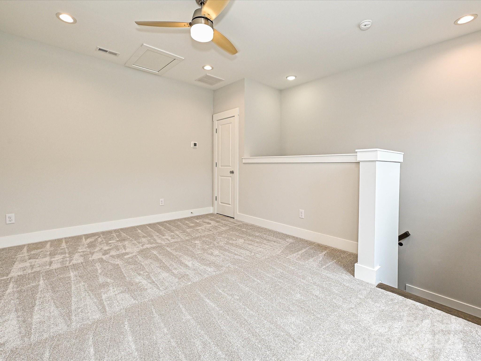Want close proximity to Uptown Charlotte and Camp North End? This townhome offers that & much more. The 1st floor has a 1-car garage & Flex room w/ half bath, & the top floor has a Rec Room & spacious rooftop terrace. The second floor has an open layout, plus a small deck off the kitchen. The Kitchen features 42" light grey cabinets, LED under-cabinet lights, trash pullout, large undermount SS sink, quartz counters, & GE SS app w/ gas range. The 3rd floor hosts both bedrooms and the laundry closet w/ tile floor. Full baths include quartz counters, white cabs, tiled floors. Premier Bath includes a tiled shower with semi-frameless surround and built-in shampoo niche. LVP flooring is throughout the first and second floors, plus third floor landing, with oak treads on all stairs and tile in the flex powder room. Ceiling fans are included in the flex, living room, premier suite and rec room. Walking distance to bars, restaurants, events, and more! Additional street parking is available.