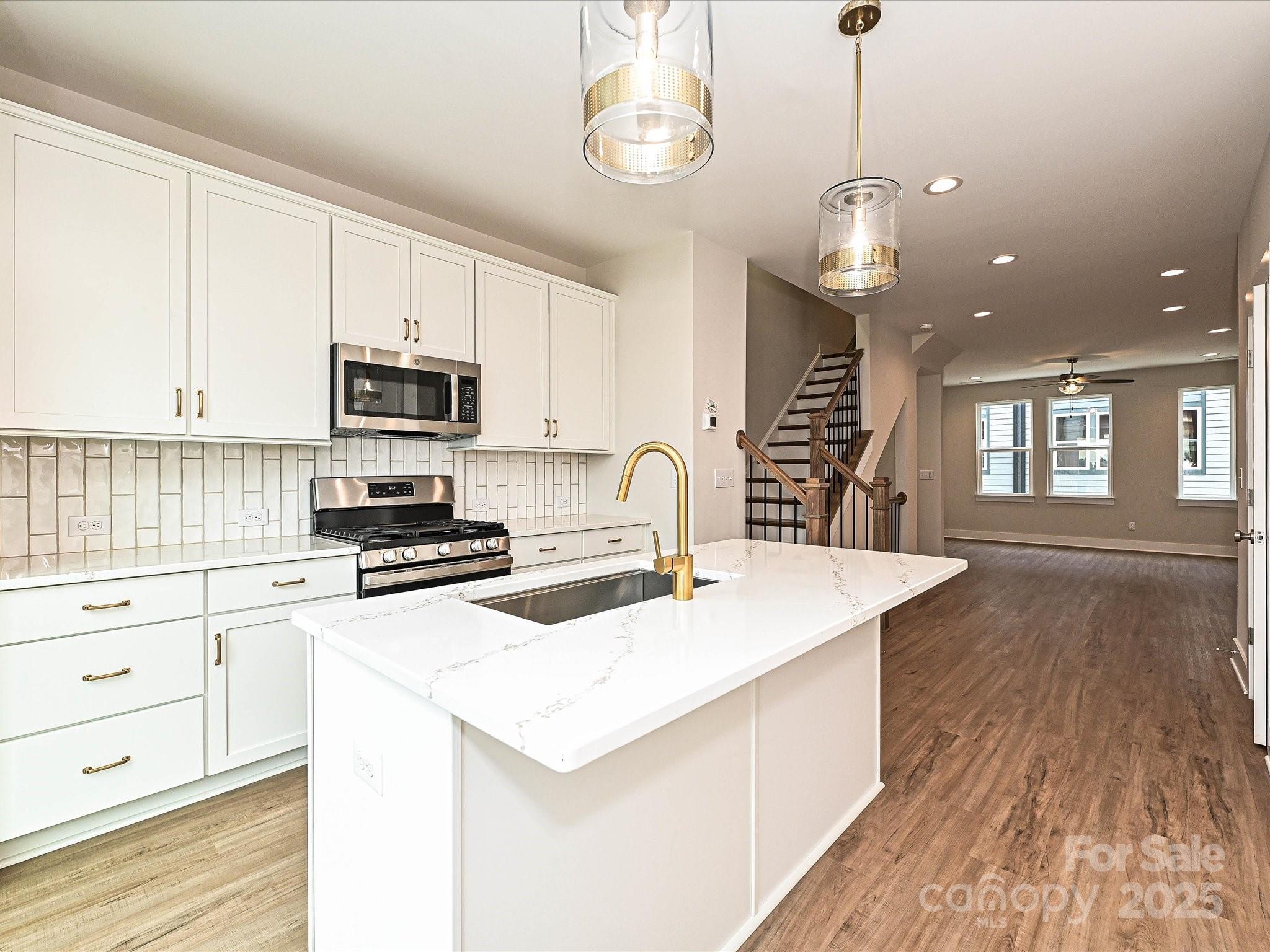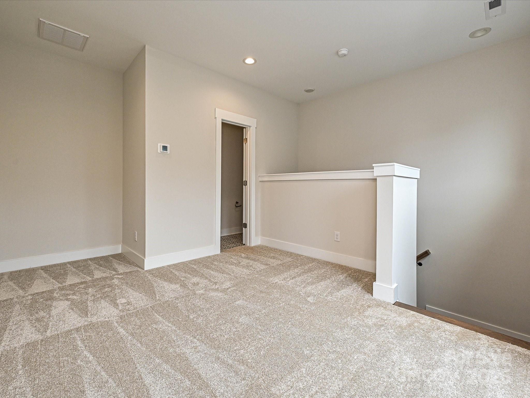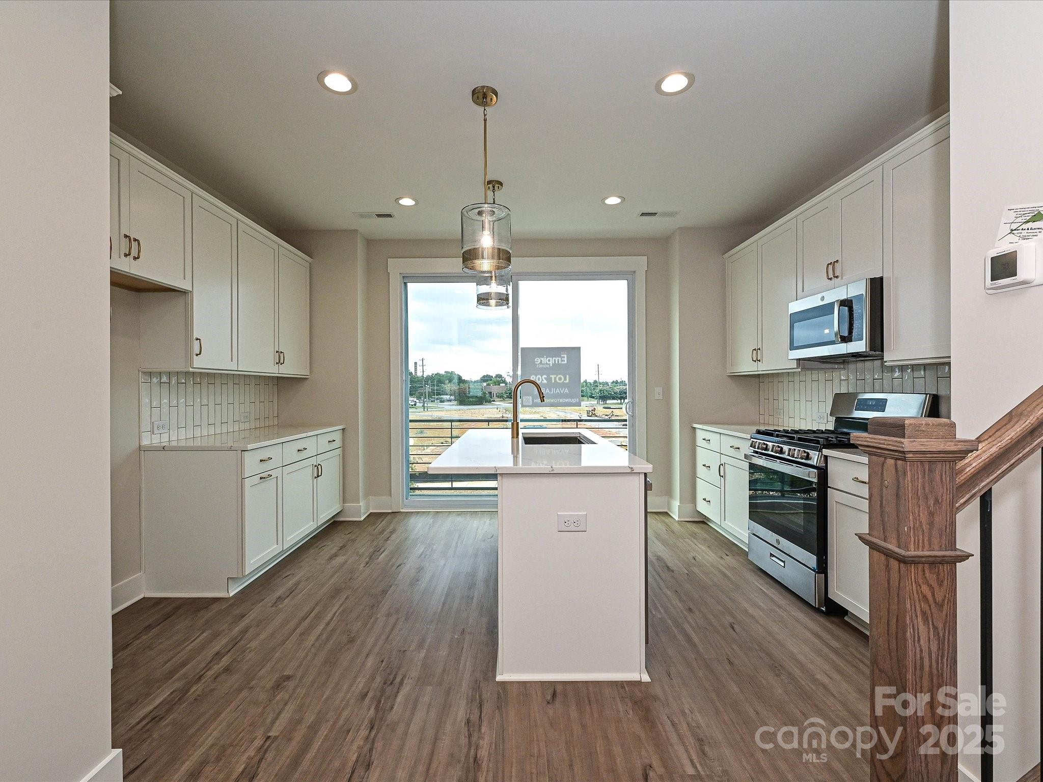 LOCATION! 4-story townhome across from Camp North End & minutes to Uptown! Highlights include 9' ceilings throughout, a 2-car tandem garage (plus on-street parking is available), on-trend lighting & design features, & a versatile 4th floor, including a Rec room w/ half bath & spacious rooftop terrace w/ TREX decking. Kitchen features white painted 42" cabs w/ brushed gold hardware, a pantry cabinet, trash pullout, LED under-cabinet lights, quartz counters, large SS undermount sink, & GE SS app w/ gas range. Small deck off kitchen w/ TREX decking. 3rd floor hosts both bedrooms & laundry closet with tile floor. Premier Suite has an en-suite bath w/ light grey cabs, satin nickel hardware, quartz counter, tiled floor, & tiled shower with semi-frameless enclosure. Guest bath has white cabinets, quartz counters, and tiled floor. LVP flooring is throughout the 1st & 2nd floors, plus 3rd floor hall. Oak treads on all stairs. 52" ceiling fans are included in the living room and premier suite.
