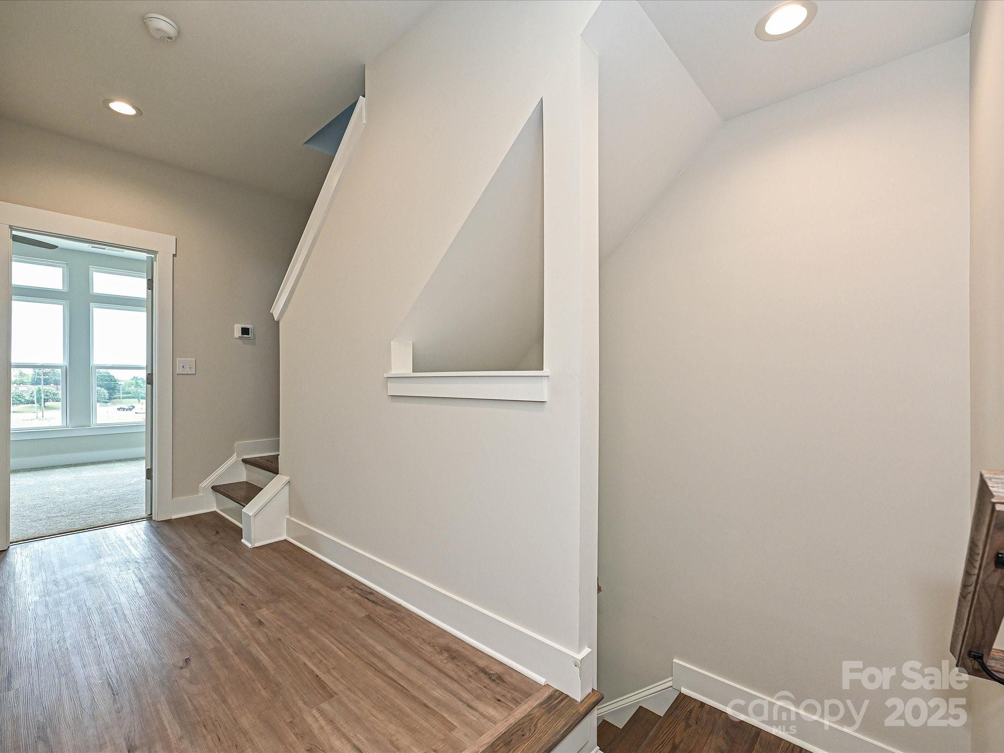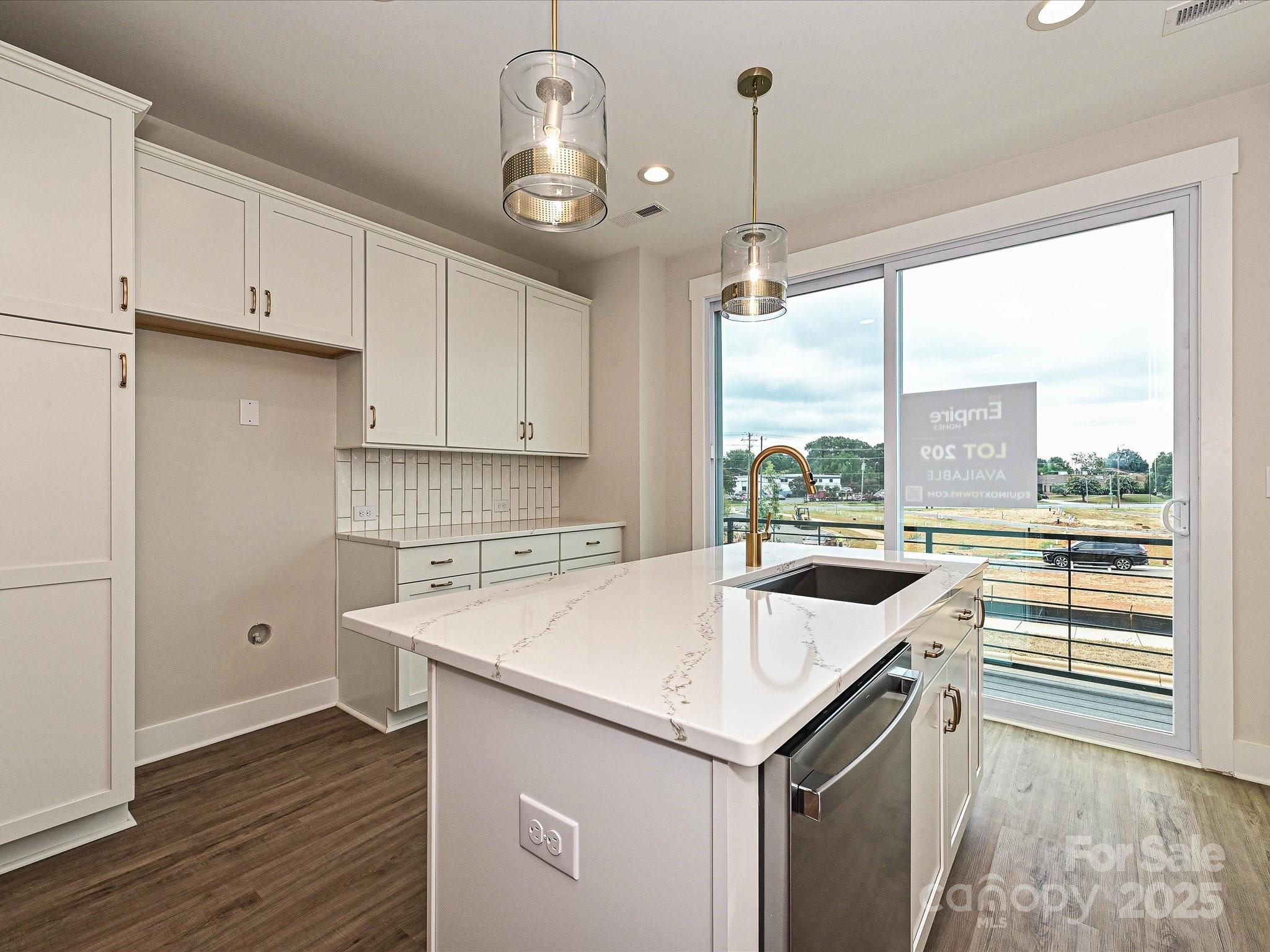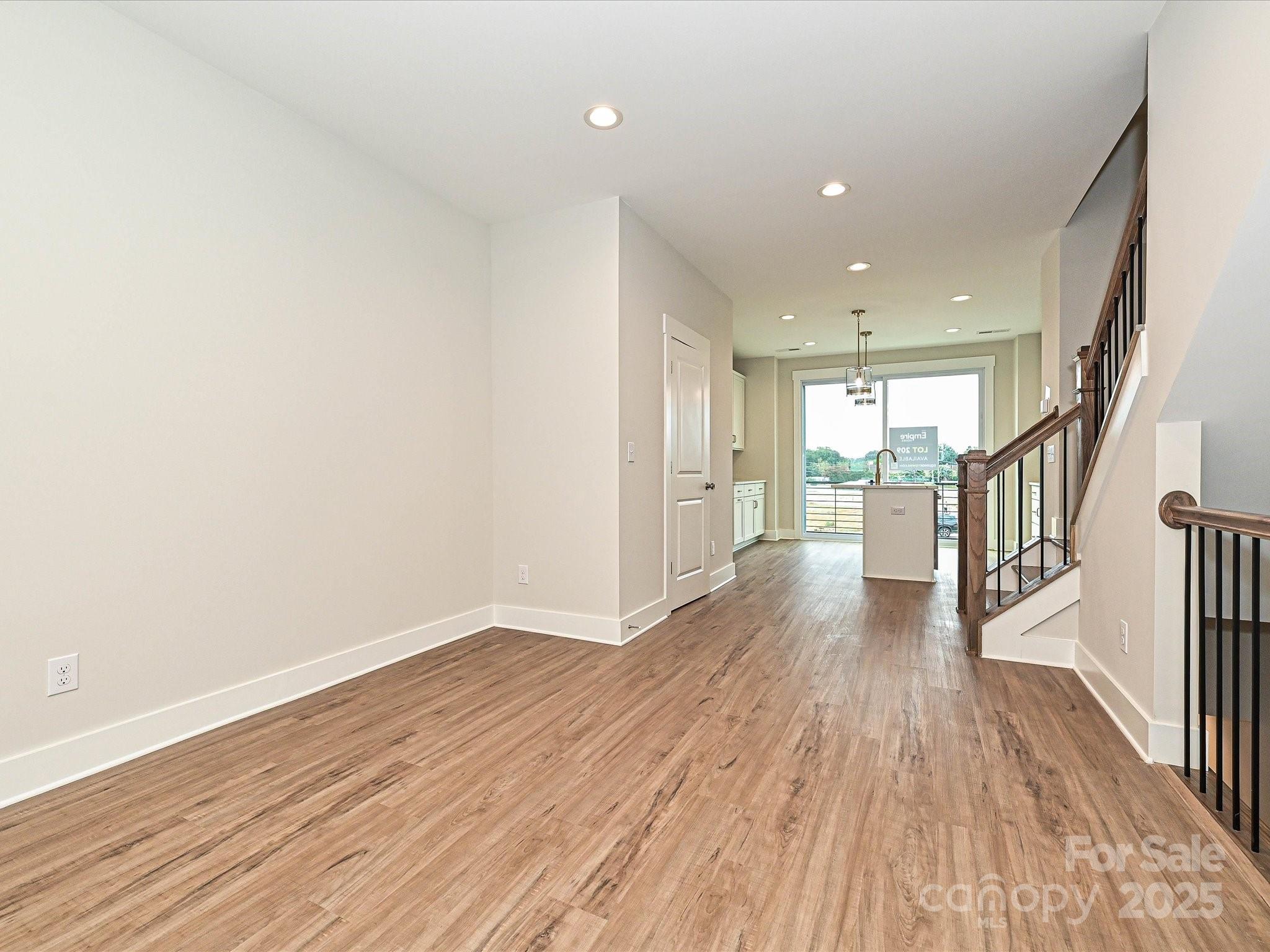 LOCATION! 4-story townhome across from Camp North End & minutes to Uptown! Highlights include 9' ceilings throughout, a 2-car tandem garage (plus on-street parking is available), on-trend lighting & design features, & a versatile 4th floor, including a Rec room w/ half bath & spacious rooftop terrace w/ TREX decking. Kitchen features white painted 42" cabs w/ brushed gold hardware, a pantry cabinet, trash pullout, LED under-cabinet lights, quartz counters, large SS undermount sink, & GE SS app w/ gas range. Small deck off kitchen w/ TREX decking. 3rd floor hosts both bedrooms & laundry closet with tile floor. Premier Suite has an en-suite bath w/ light grey cabs, satin nickel hardware, quartz counter, tiled floor, & tiled shower with semi-frameless enclosure. Guest bath has white cabinets, quartz counters, and tiled floor. LVP flooring is throughout the 1st & 2nd floors, plus 3rd floor hall. Oak treads on all stairs. 52" ceiling fans are included in the living room and premier suite.
