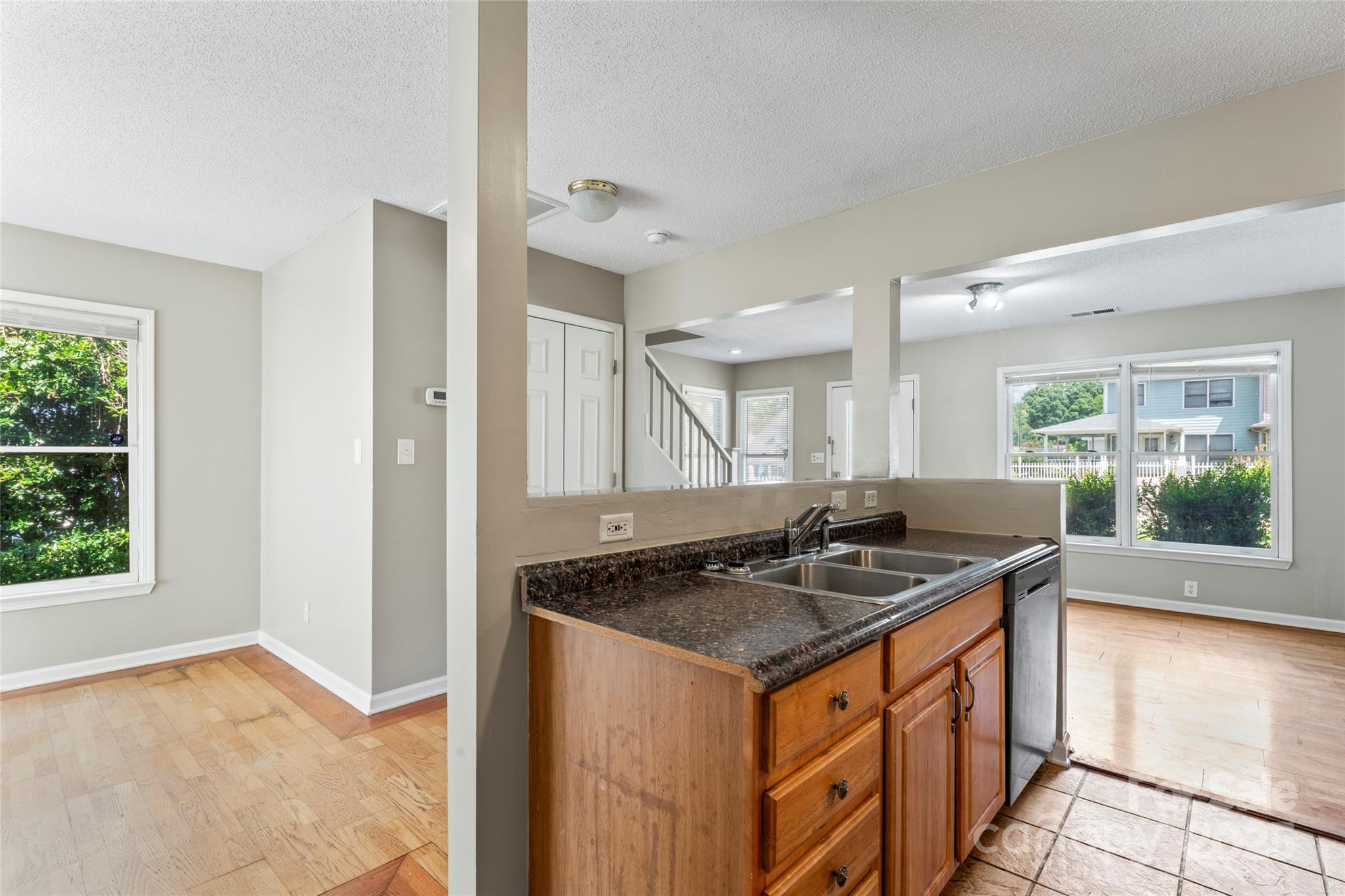BACK ON MARKET at no fault of seller. Charming townhome in the heart of Rock Hill! With over 1,100 sq ft of comfortable living space, this property offers great flexibility for both homeowners and investors. The open-concept layout features a spacious living and dining area, a breakfast nook leading to the backyard patio, and hardwood floors throughout the main level (tile in the kitchen). A full bathroom is conveniently located on the main floor. Upstairs, you’ll find two generous bedrooms—including an oversized primary that was previously two separate rooms. Seller is offering a $4,000 renovation credit to reinstall the dividing wall and access door, allowing you to easily convert it back to a 3-bedroom layout. Additional highlights include off-street parking in the back and a wired storage building. Schedule your showing today! This property qualifies for 100% financing with no PMI and $20,000 in lender assistance for the following: Closing costs, rate buy down, and loan amount reduction.
