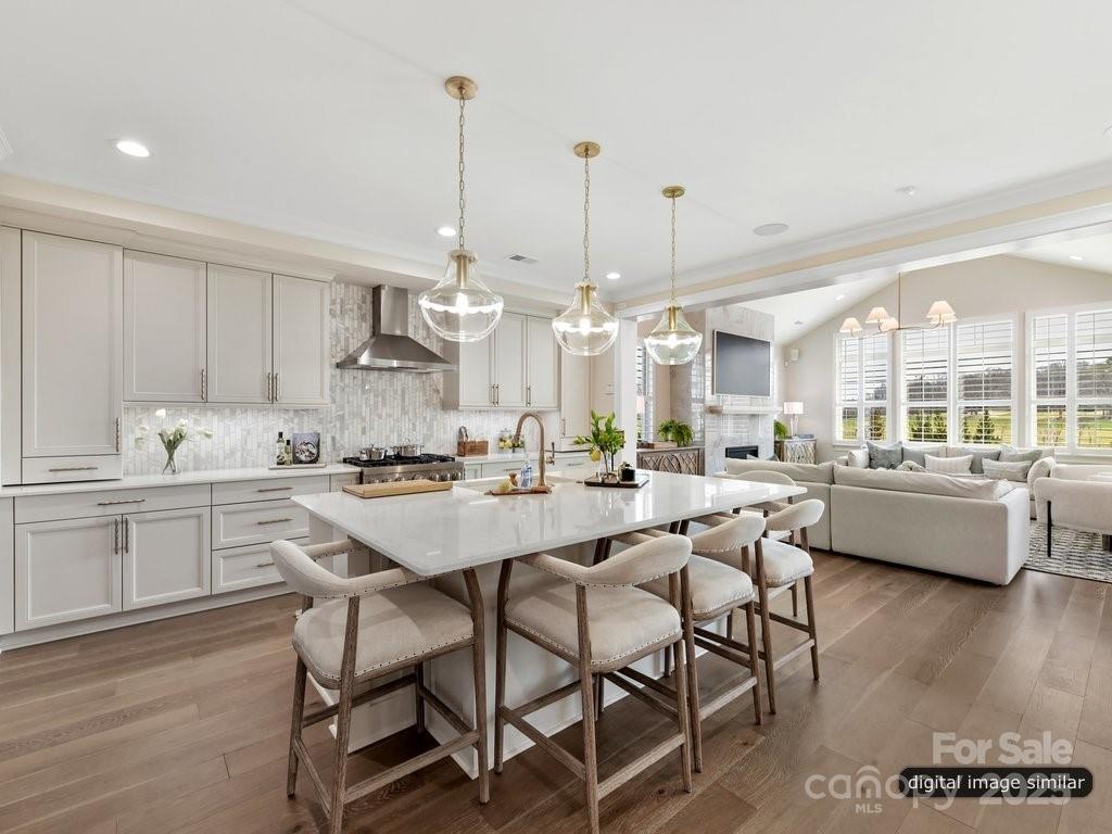 Fall in love with this beautiful American Cottage home by Charlotte's locally owned, and nationally recognized luxury homebuilder. Move-in ready for October and located in the McLean South Shore community. Awarded "Best Floorplan in the Country", the Monterey explodes with personality. Inspiring oversized kitchen and spacious Great Room with vaulted ceiling. A Dining Room with stacking sliding doors, opens to the Outdoor Living Room, blurring the line between indoor/outdoor spaces. The Main Level Primary suite boasts a vaulted ceiling and is separated from the living area with a vestibule and hallway, ensuring privacy. The Primary bath spa atmosphere is sure to delight. Upstairs, a large Bonus Room and three bedrooms with walk-in closets and ensuite baths are tucked away off of a private hallway.