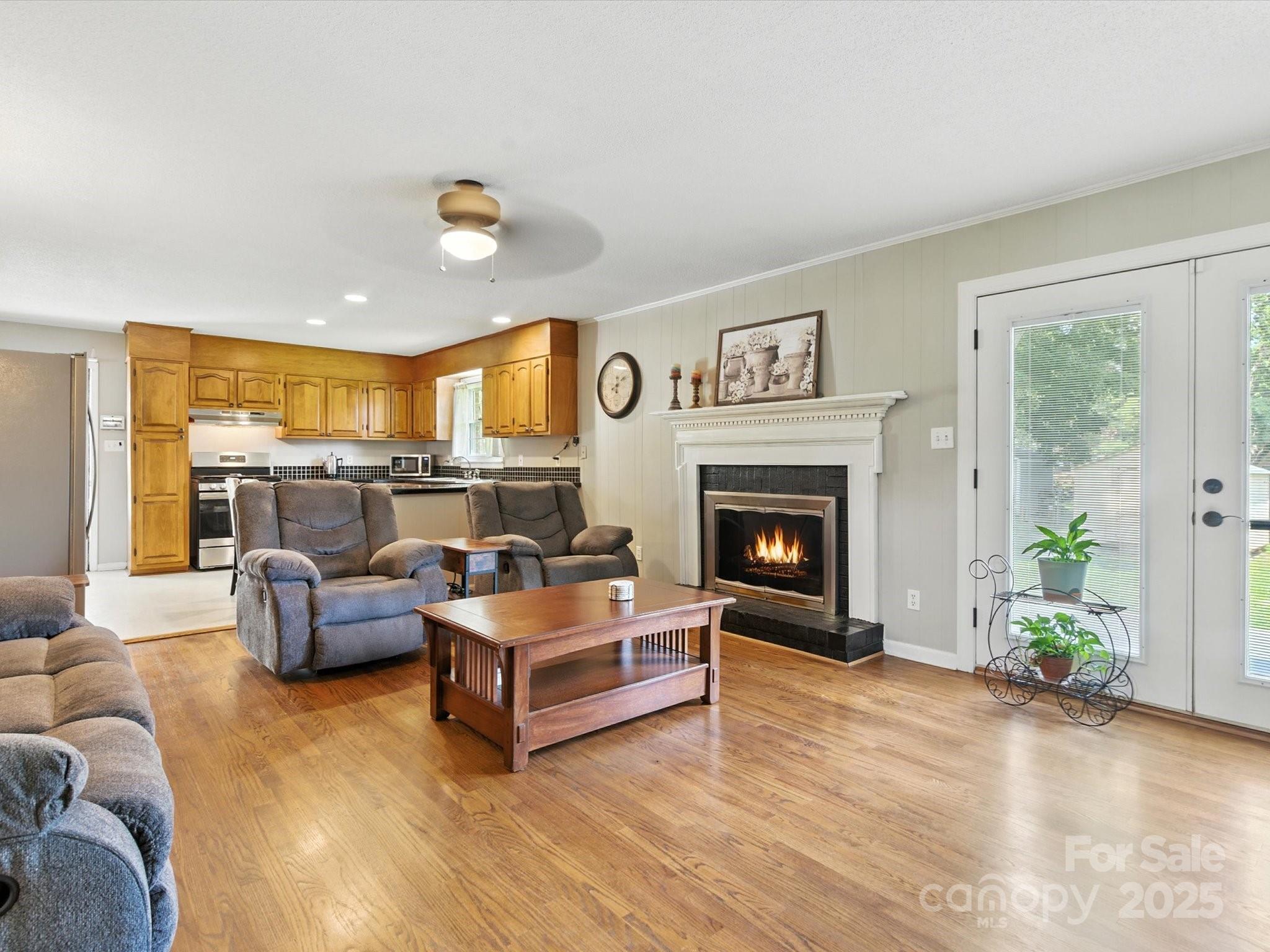 Seller to Provide Home Warranty AND 2 Months of Professional Land Scaping MOTIVATED Charming 3BR/2BA Brick Ranch in Sedgefield This beautifully maintained brick ranch sits on a .34-acre professionally landscaped lot and perfectly blends timeless style with modern comfort. Inside, you’ll find gleaming hardwood floors throughout, a cozy indoor gas fireplace, and a tankless water heater for endless hot baths. The home offers two spacious living areas, a laundry room, and a covered two-car carport with ample parking and a utility/storage room. French doors open onto a raised patio, extending your living space outdoors. Enjoy evenings on the stately columned front porch or gather around the outdoor fireplace on the back patio—ideal for entertaining, gardening, or grilling with friends and family. Located in the heart of the Sedgefield neighborhood, this home is just minutes from shopping, dining, and entertainment, making it as convenient as it is inviting.