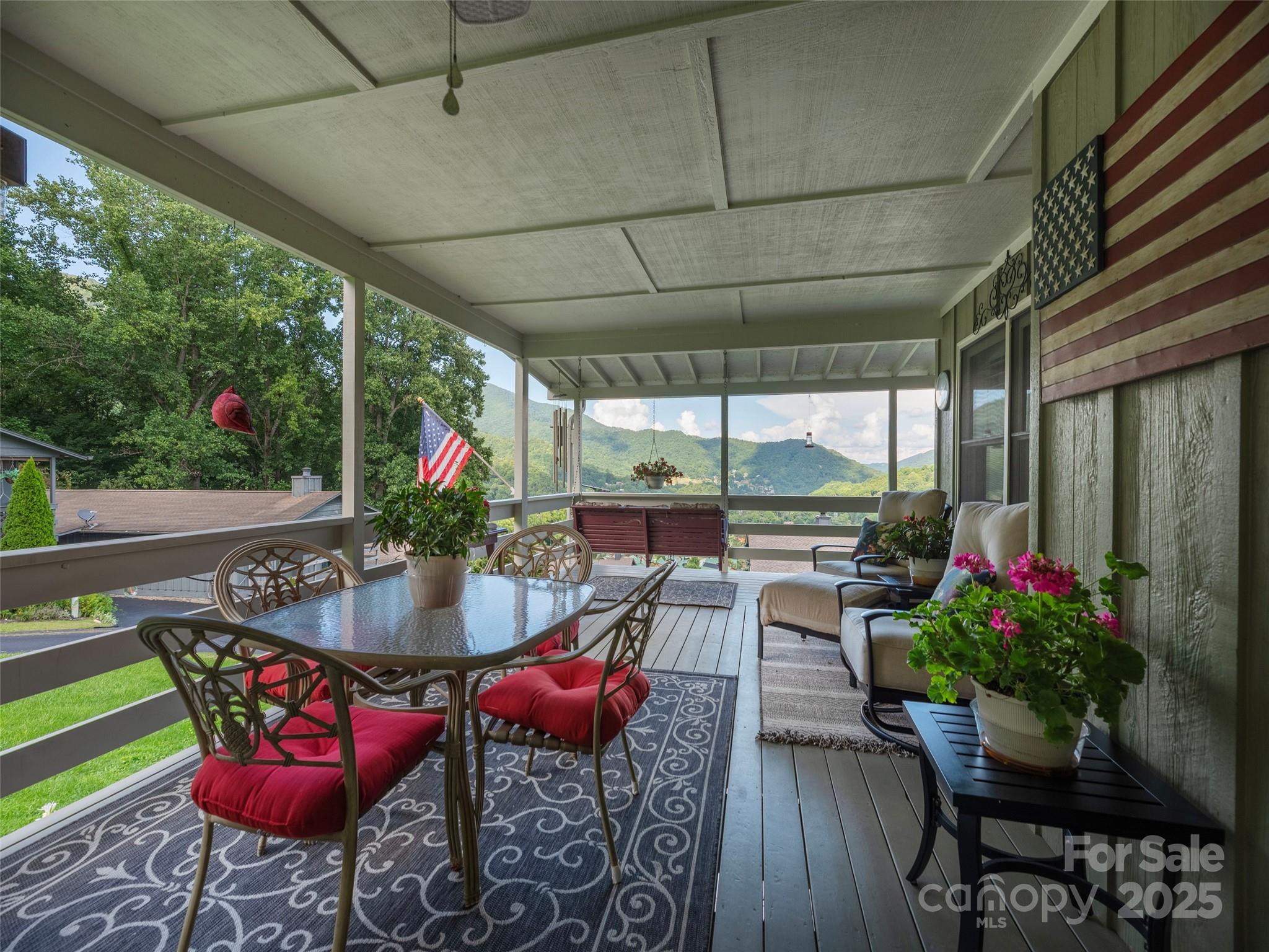 Welcome to your cozy retreat in the heart of Maggie Valley! This charming bungalow offers breathtaking mountain views that can be enjoyed from inside as well as the covered front and side porches—complete with a porch swing perfect for relaxing with your morning coffee or evening tea. Inside, you'll find a warm and inviting space with 2 bedrooms and 2 baths that's thoughtfully designed to feel like home. The main living area is intimate yet functional, providing the perfect blend of comfort and charm. The remodeled basement (2019) serves as an efficiency apartment, ideal for guests or as a private retreat only accessible from a separate exterior entrance. Equipped with a brand new mini-split system installed in 2024, the basement offers modern comfort year-round. Don't miss this opportunity to own a serene mountain escape in one of North Carolina's most picturesque locations! Rentals allowed after 2 years of home ownership.