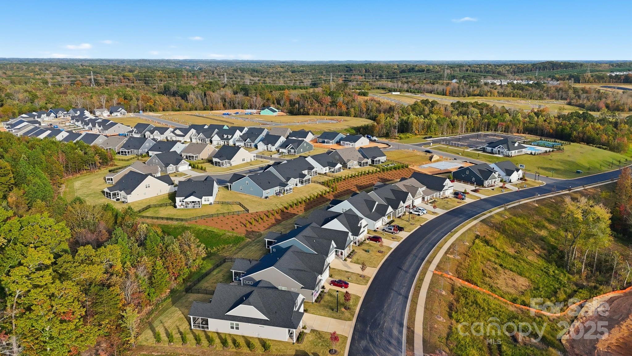 Beautifully crafted single-level home on a desirable corner homesite in a vibrant 55+ community, just steps from the amenity center for easy access to neighborhood activities. This charming residence offers three spacious bedrooms, including a luxurious primary suite with a modern full bath and generous closet space, complemented by a second full bath for guests or family. The well-appointed kitchen, ideal for cooking and entertaining, features a spacious island, sleek quartz countertops, and premium appliances, creating a seamless space for gatherings. Step outside to the tranquil screened patio at the rear, perfect for enjoying morning coffee or relaxing in peace. This home blends contemporary comfort with timeless charm in a welcoming community setting!
