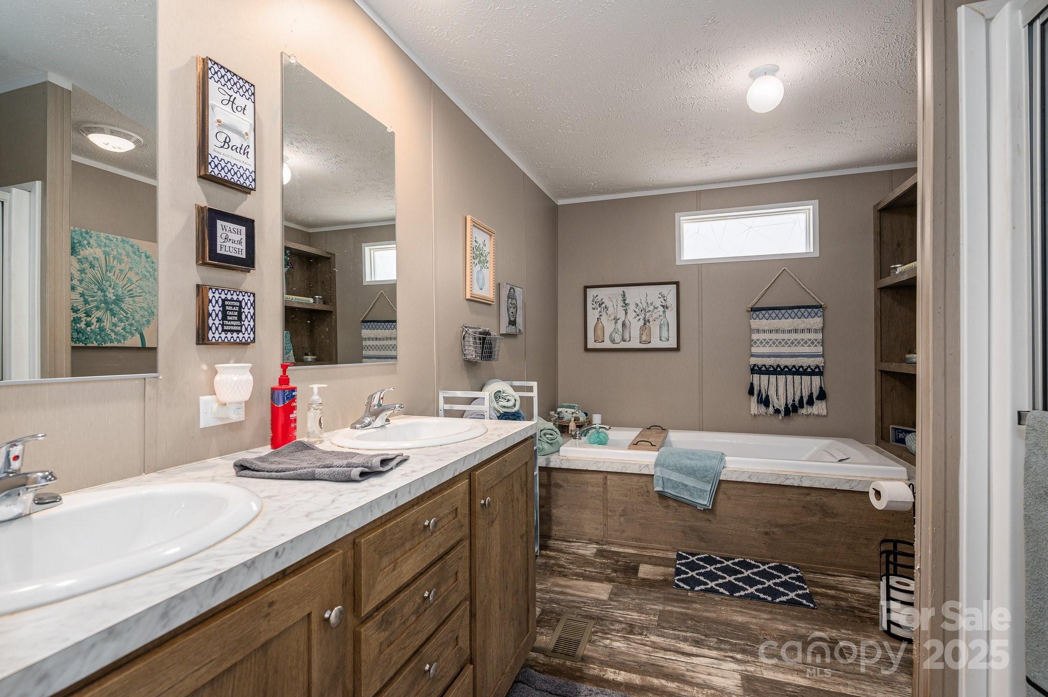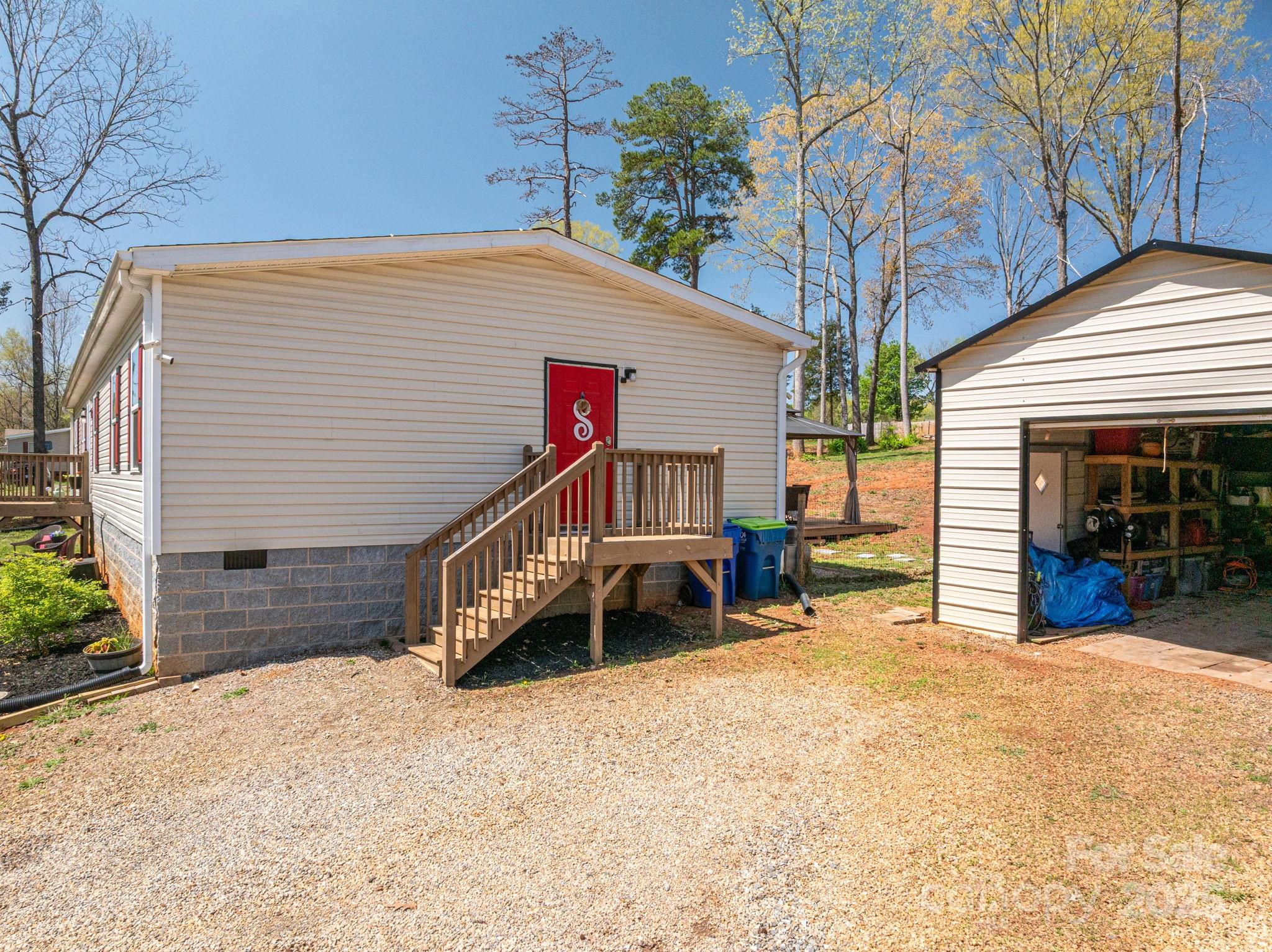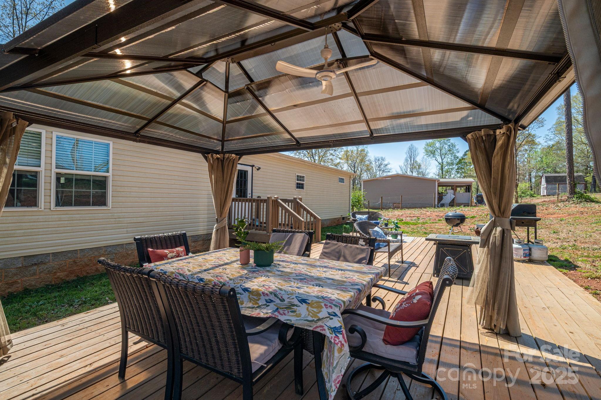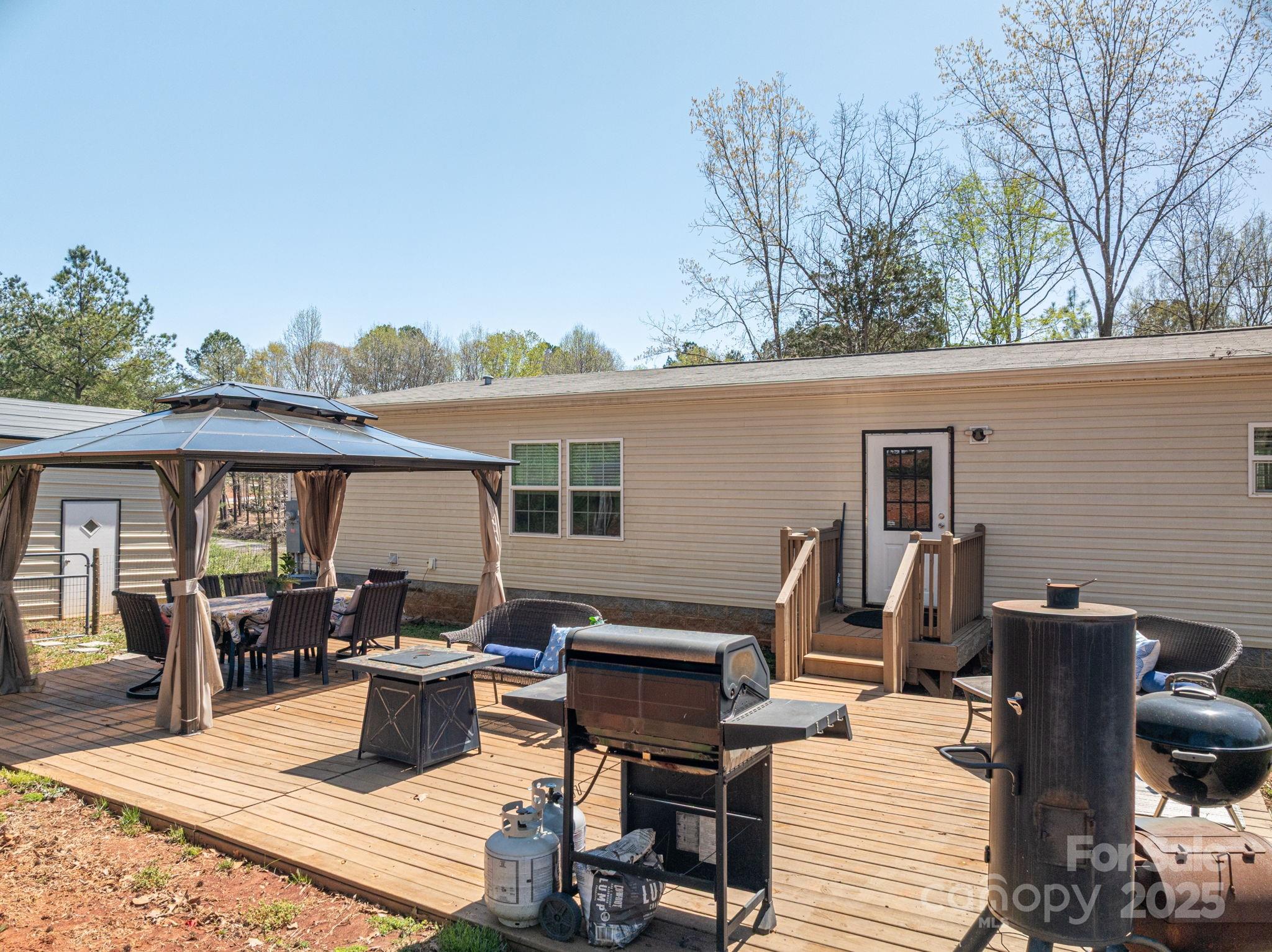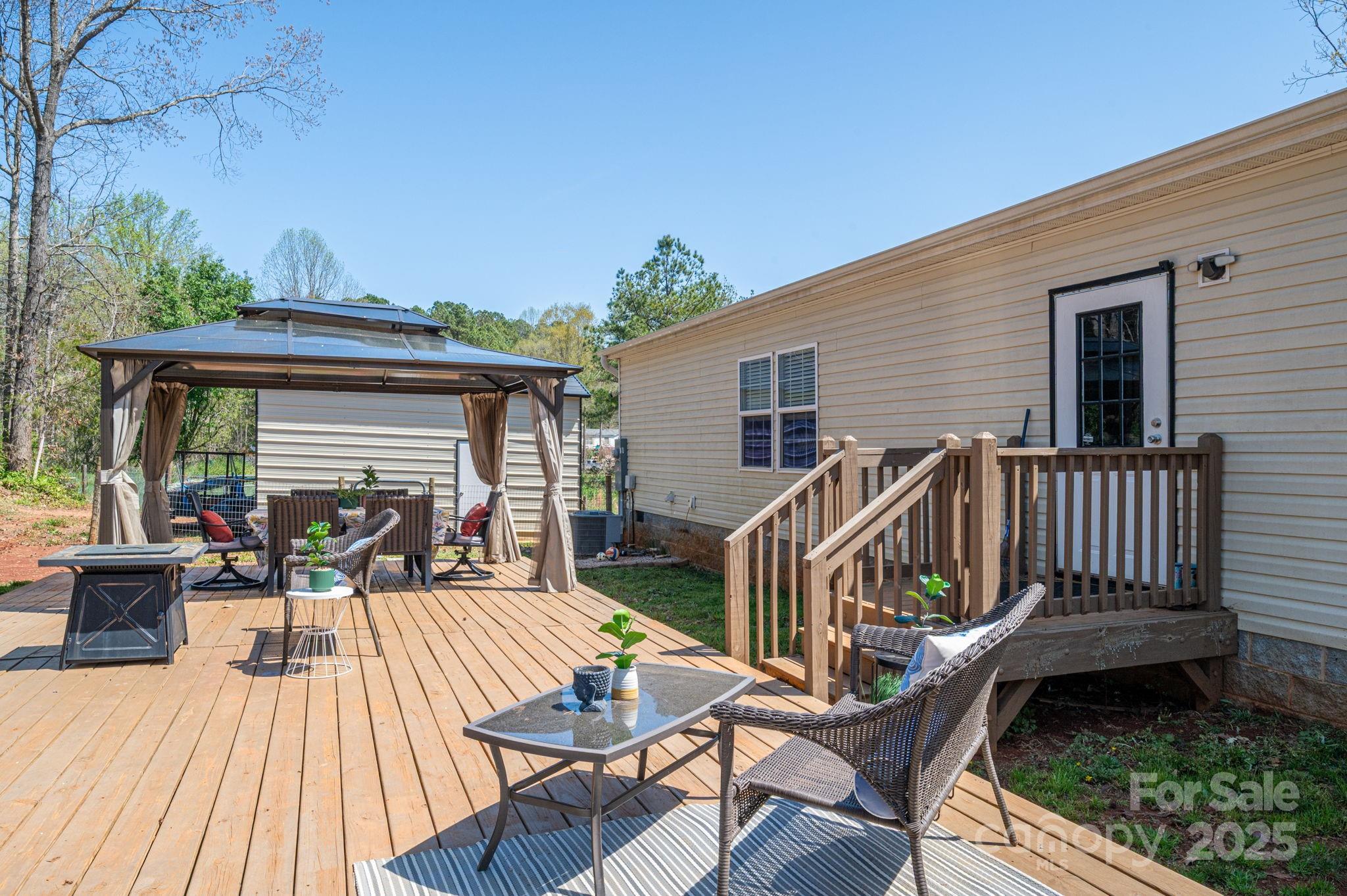 Spacious 2020 model double-wide on nearly an acre lot! This 3BR/2BA home with an office offers 1,800+/- sq. ft. of farmhouse charm. The open floor plan features a stylish kitchen, two large living room area(s), and a massive primary suite with a walk-in closet, soaking tub, and dual vanities. Enjoy plenty of outdoor space with a rear patio deck and gazebo plus a 18x20 detached metal garage for storage or projects. Just minutes from Hwy 321 and downtown Lincolnton!