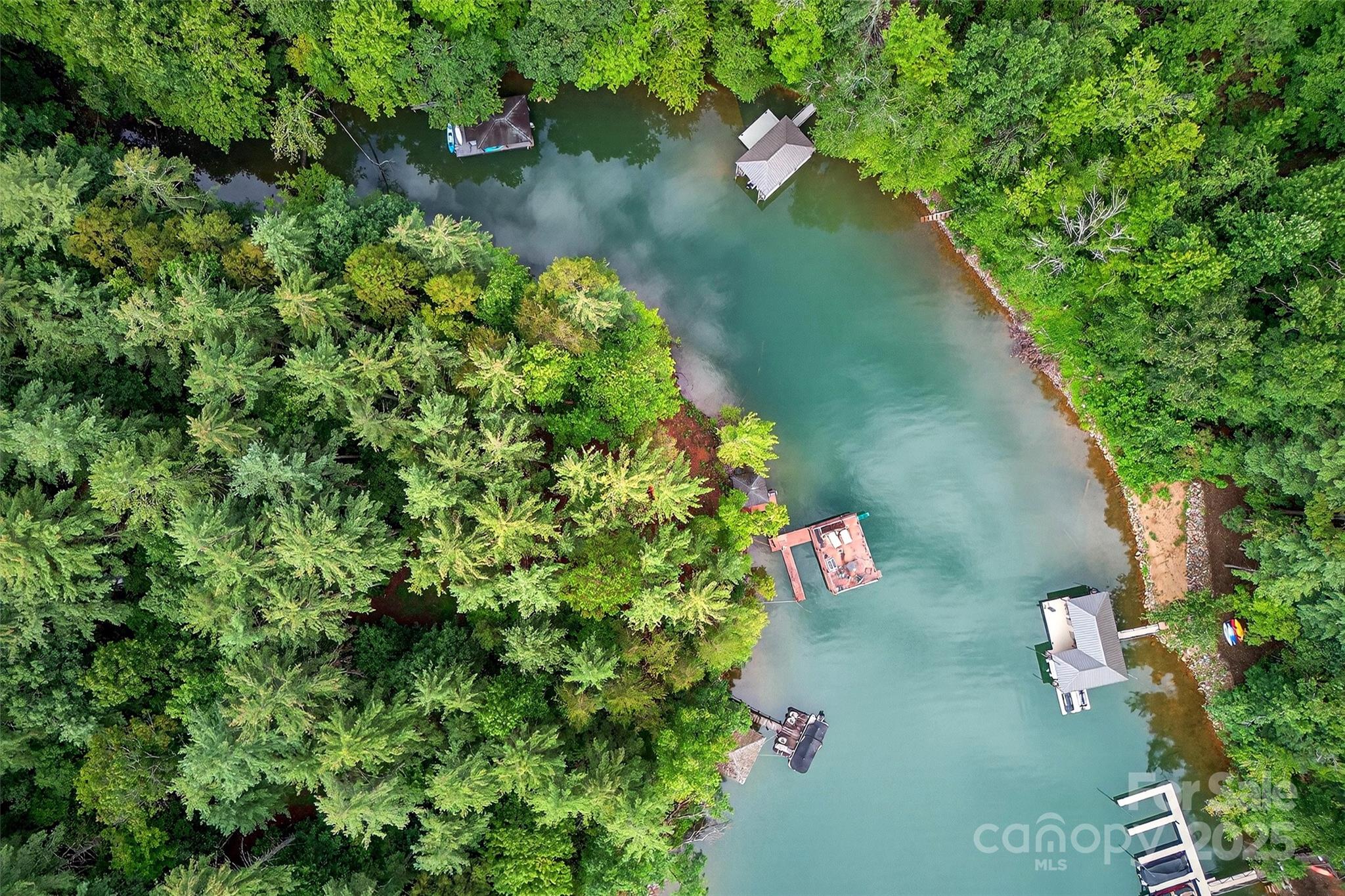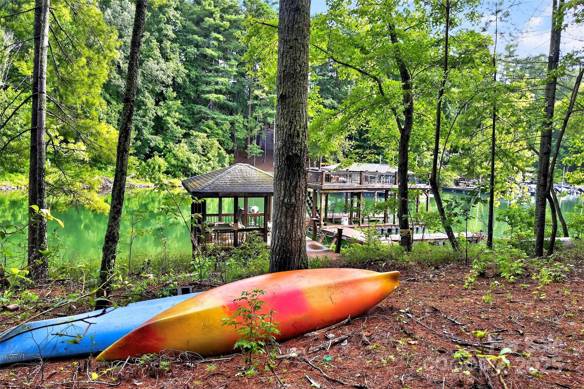 With approximately 500 feet of water frontage, a double-decker floating dock with two slips, a waterfront screened and covered gazebo, this truly wonderful piece of property sits ready for you build your dream home on. Owners have owned for nearly 30 years. Mallard Pointe only has 38 home sites. Tucked back in its own cove in a no-wake zone, the waters of Lake James sit at your feet, perfect for swimming, boating, bonfires, dinners in the gazebo - you name it. The lot is one of a few on Lake James that is nearly flat from the road to the water - you don't get that in the mountains. With underground high speed internet now in the neighborhood and power already running the distance of the lot all the way to the gazebo and dock, you have everything you need here to live out your mountain lake fantasies.