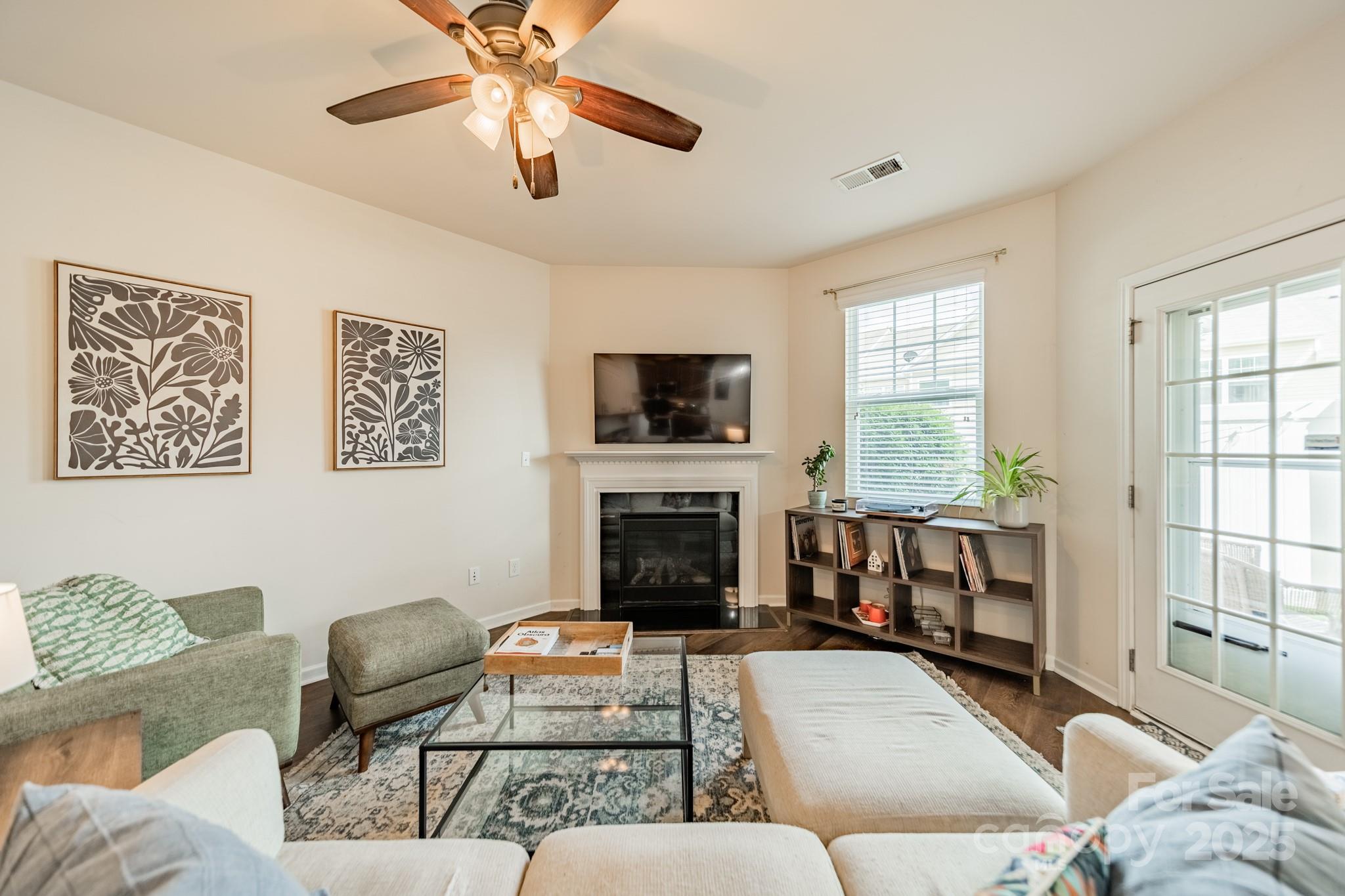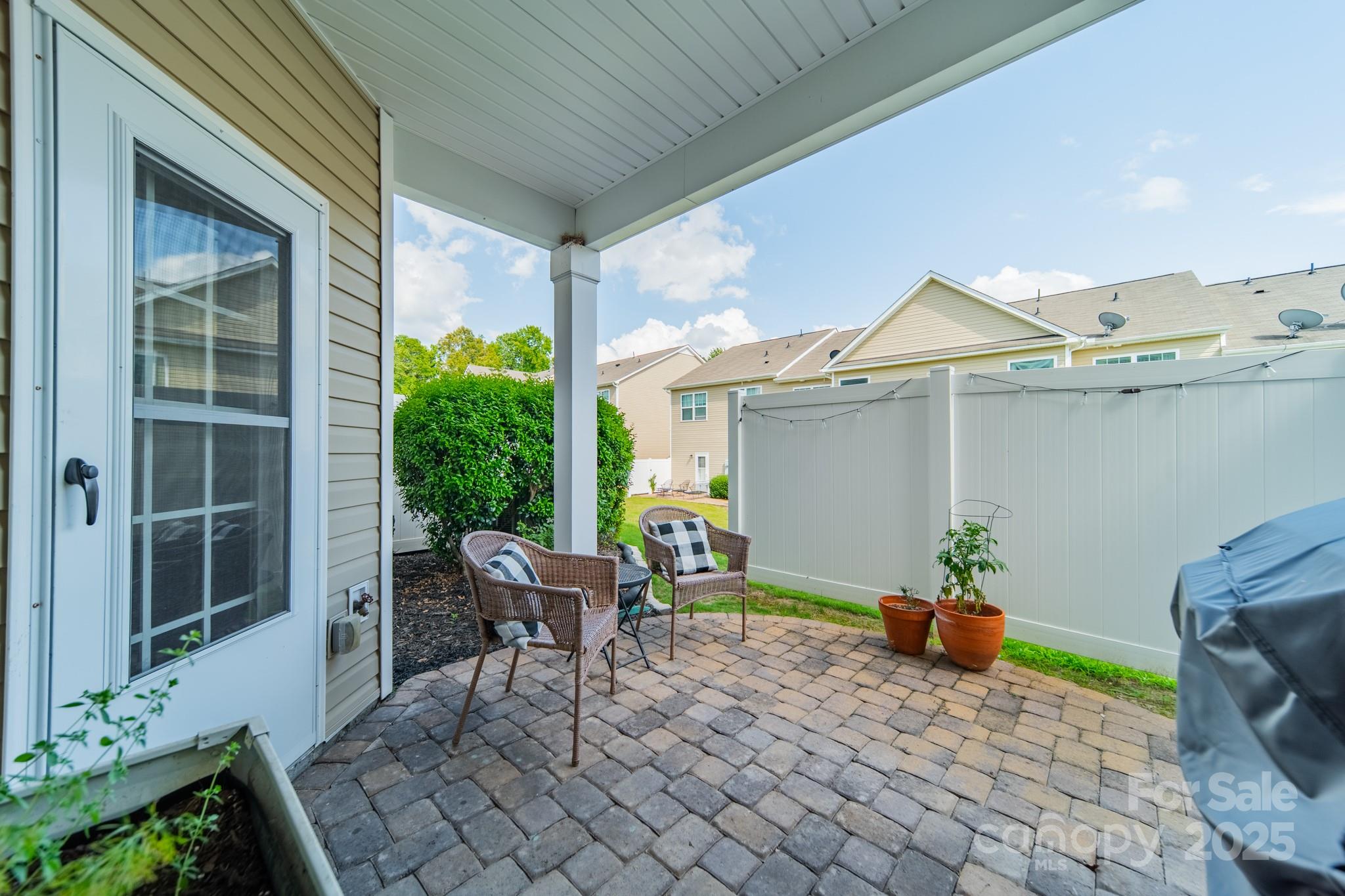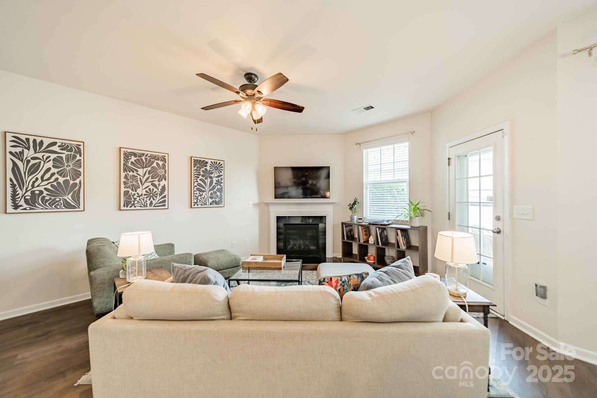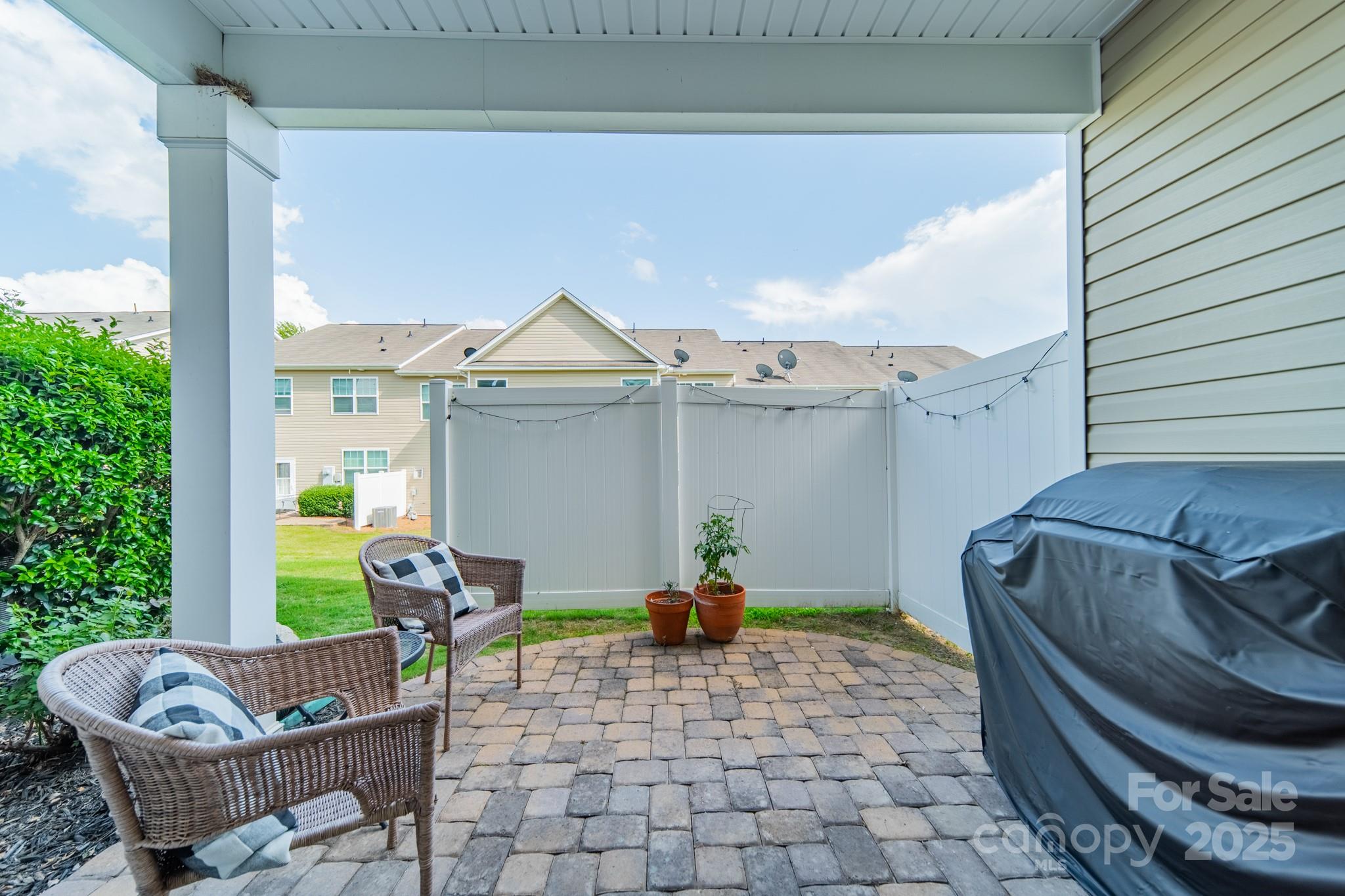 Beautifully maintained 3BR, 2.5BA townhome in the desirable Woodlands community. Open-concept layout with hardwood floors on the main level, spacious great room with gas log fireplace, and natural light throughout. The kitchen features granite countertops, tile backsplash, stainless steel appliances, recessed lighting, and a large island with bar seating—great for entertaining. Upstairs, the primary suite offers a tray ceiling, walk-in closet, and en-suite bath with soaking tub, tiled shower, and dual vanities. Two more bedrooms, full bath, and laundry complete the upper level. Notable updates include LVP flooring (2021) and new HVAC (2022). Enjoy the fenced patio and welcoming front porch. Additional features: fresh paint, upgraded fixtures, and one-car garage. Community amenities include pool, clubhouse, and walking trails. Convenient to Lake Wylie, shopping, dining, and India Hook Elementary.