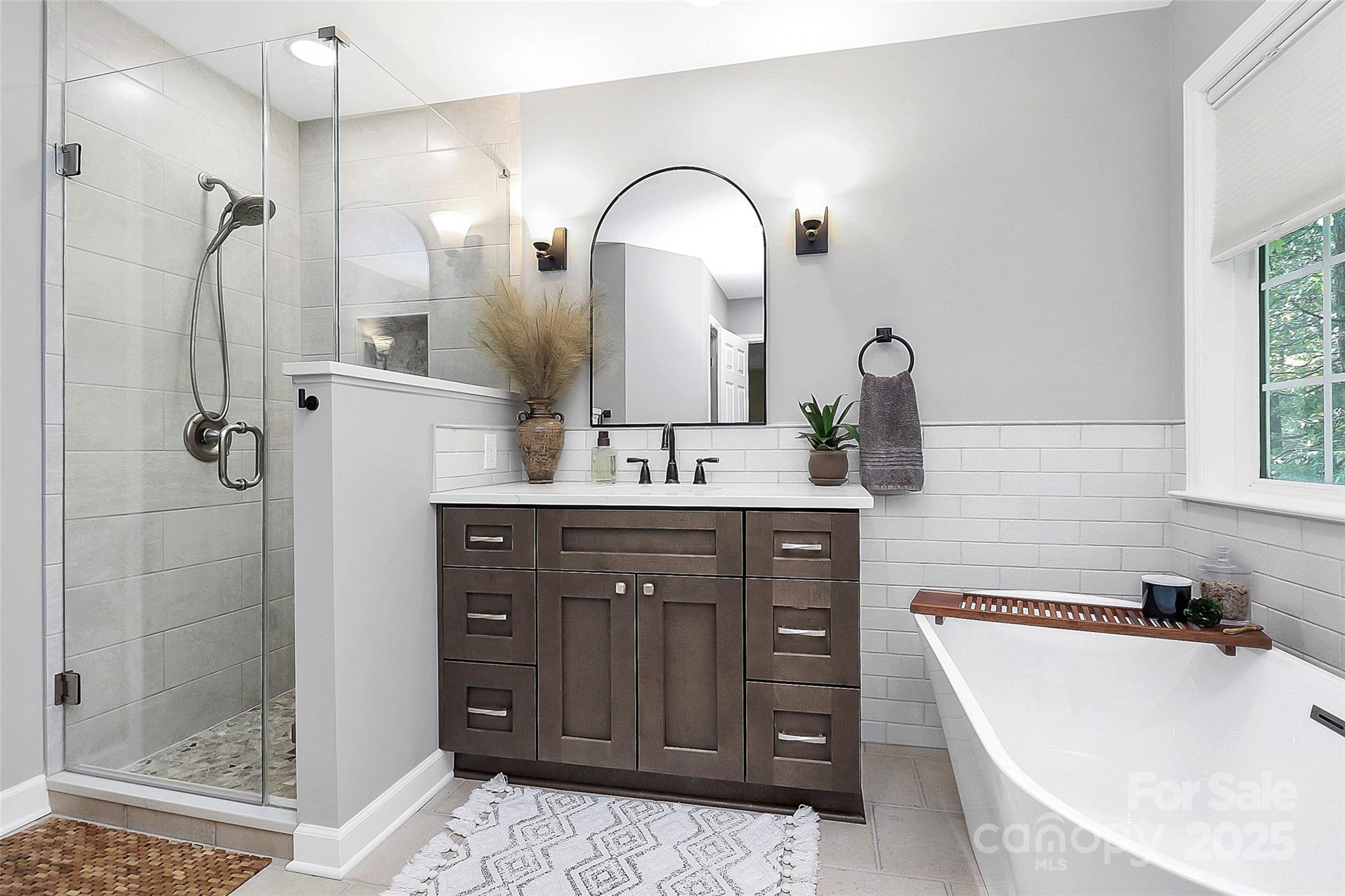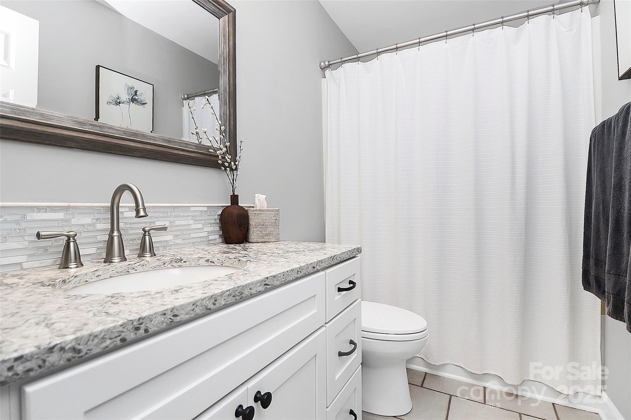 Don't miss this exquisitely updated home nestled among the trees on a quiet cul de sac! (Back on the market after delays with the seller's new home.) Not just conveniently located near I-485, but thoughtfully renovated with high-quality finishes & stylish decorator-approved colors & touches throughout. Step through the custom mahogany front door & immaculate wood floors flow through the elegant living areas. The renovated kitchen is highlighted by locally made custom cabinetry with amazing amounts of storage, granite, marble and sleek appliances. The cozy great-room features a fireplace with a dazzling marble surround & amazing views of the private backyard through floor to ceiling windows. The pristine primary suite will take your breath away & hosts a spectacular new bathroom with soaking tub, lovely shower & details aplenty for a spa like experience everyday. Every room and every surface has been updated...right down to hinges, handles, lights, fans & blinds - no detail has been overlooked, no corner has been cut. Guaranteed to please even the most discriminating buyer and offers flexible closing time frame to accommodate your closing schedule.