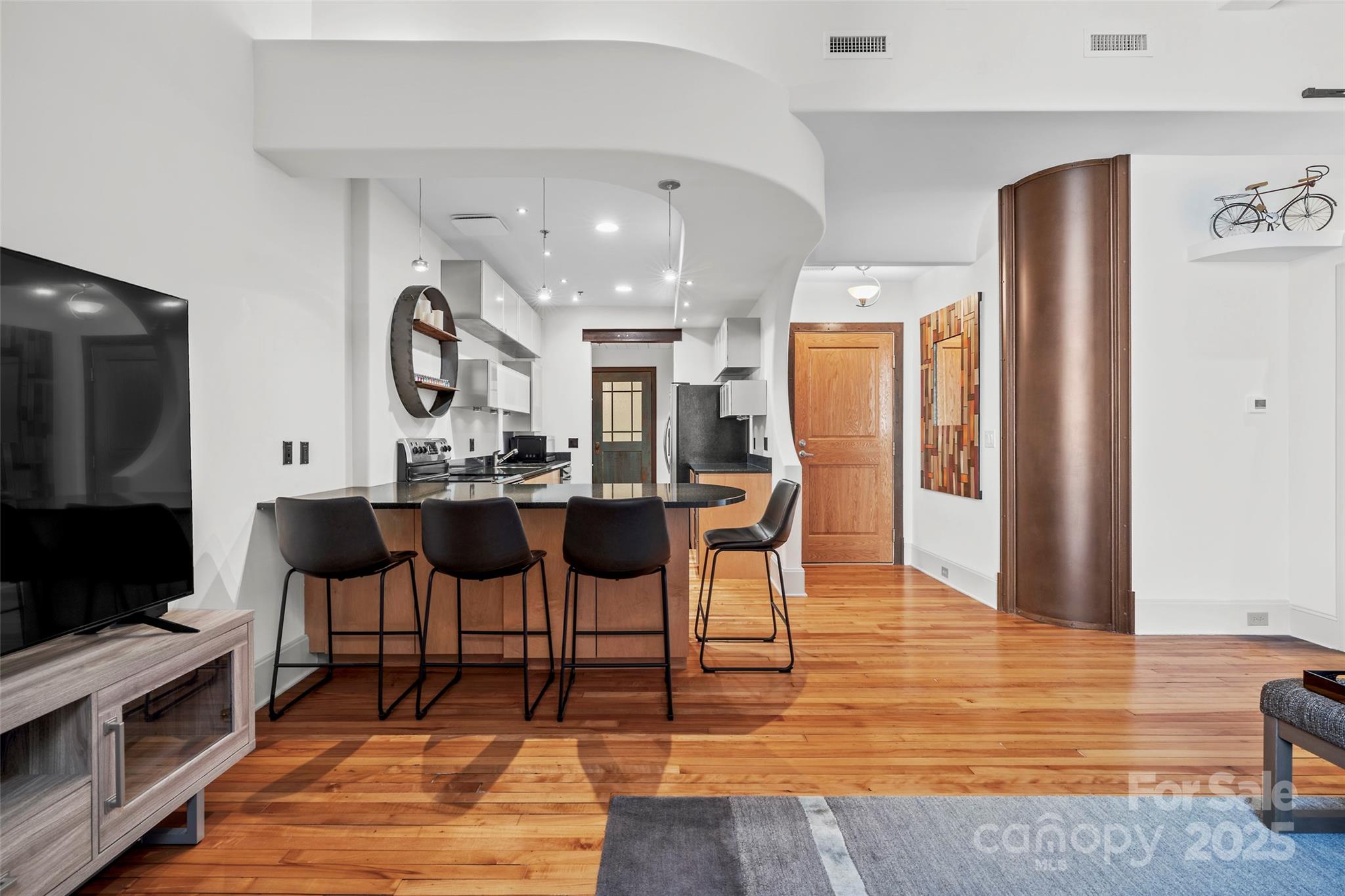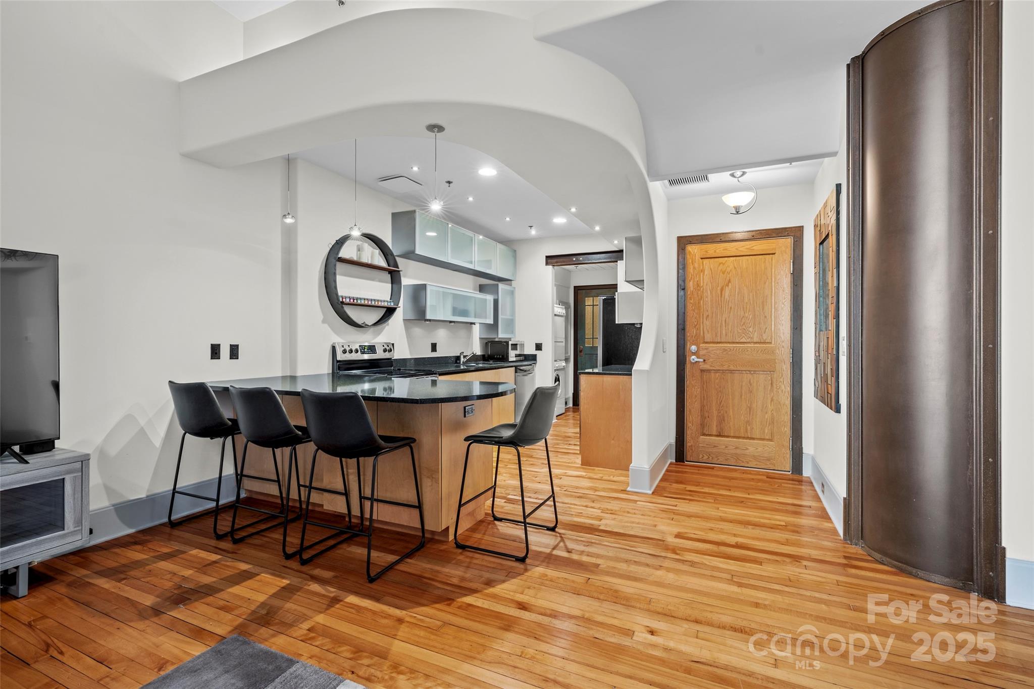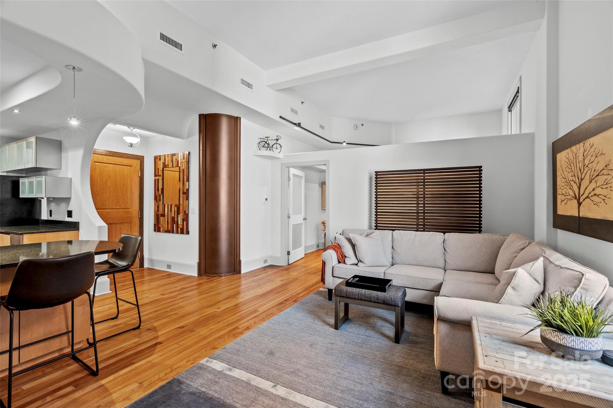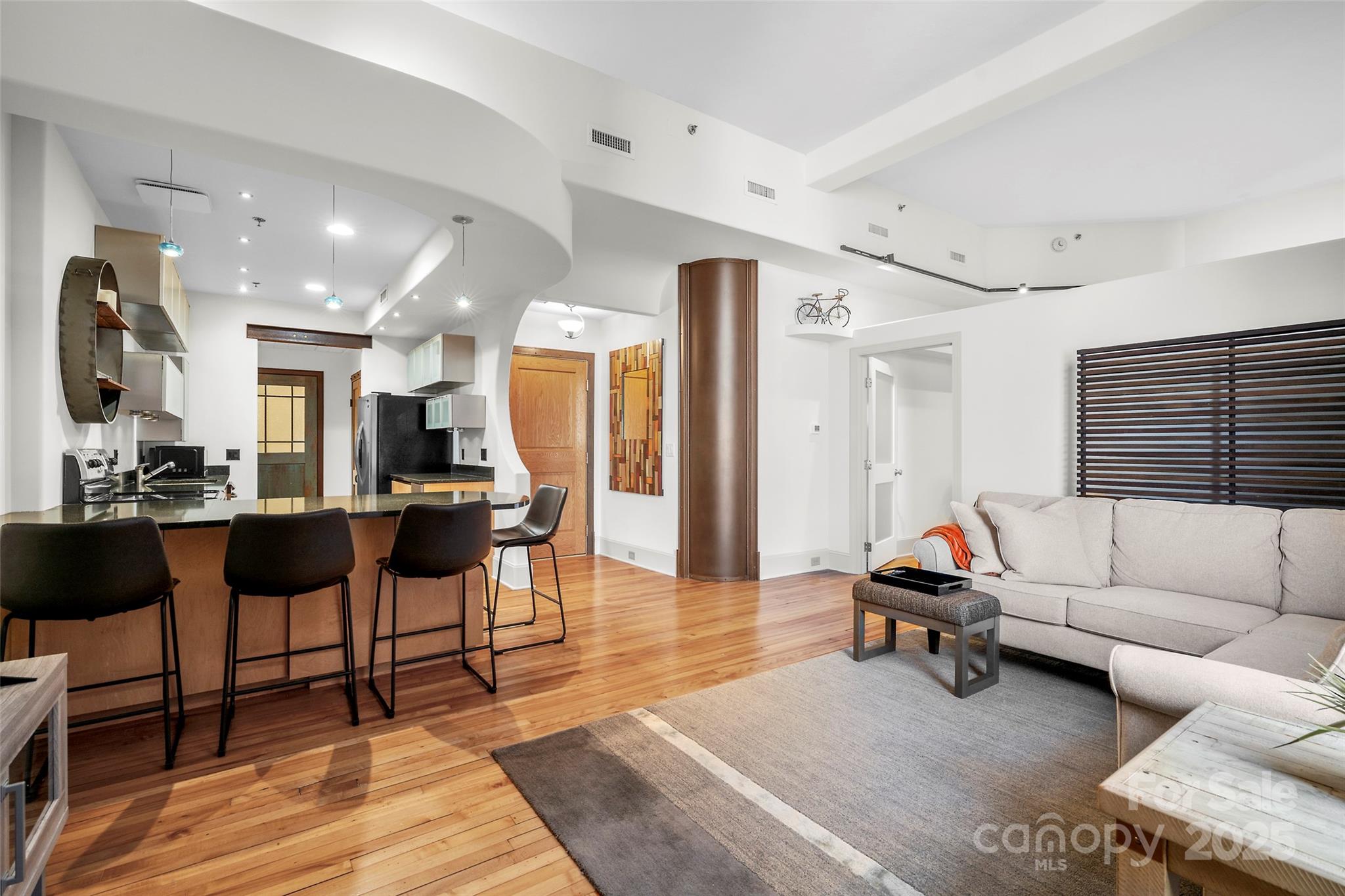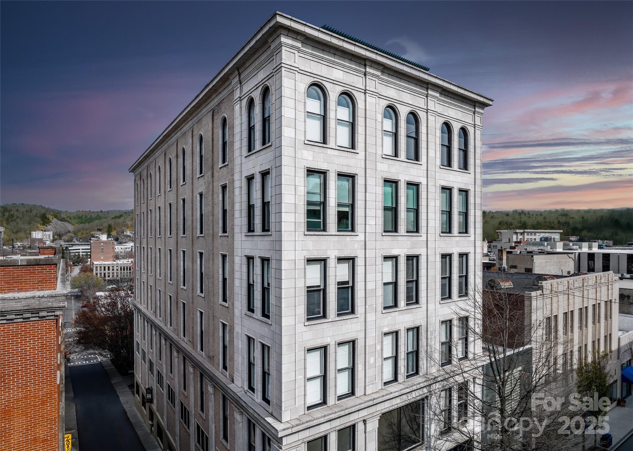 Here’s your chance to own a slice of Asheville’s vibrant history in the iconic Old Penney’s Building—a true masterpiece from the 1920s designed by famed architect Richard Sharp Smith and substantially renovated in 2000. This updated condo is filled with vintage character & timeless charm, featuring original hardwood floors, lofty ceilings, distinctive curved walls, and oversized windows. Enjoy the unique blend of old-world design and modern comfort in this elegant, artistic, and move-in-ready space! Relax on the rooftop terrace while soaking in panoramic views of the Blue Ridge Mountains, enchanting sunsets, and all of Asheville! Located in the heart of downtown, enjoy unbeatable access to dining, shopping, entertainment & the ultimate city life right outside your door. Thanks to the building’s historic designation, property taxes remain exceptionally low. Ground-level storage is available, & as a bonus, this unit is zoned live/work and allows for annual rentals. A truly special find!