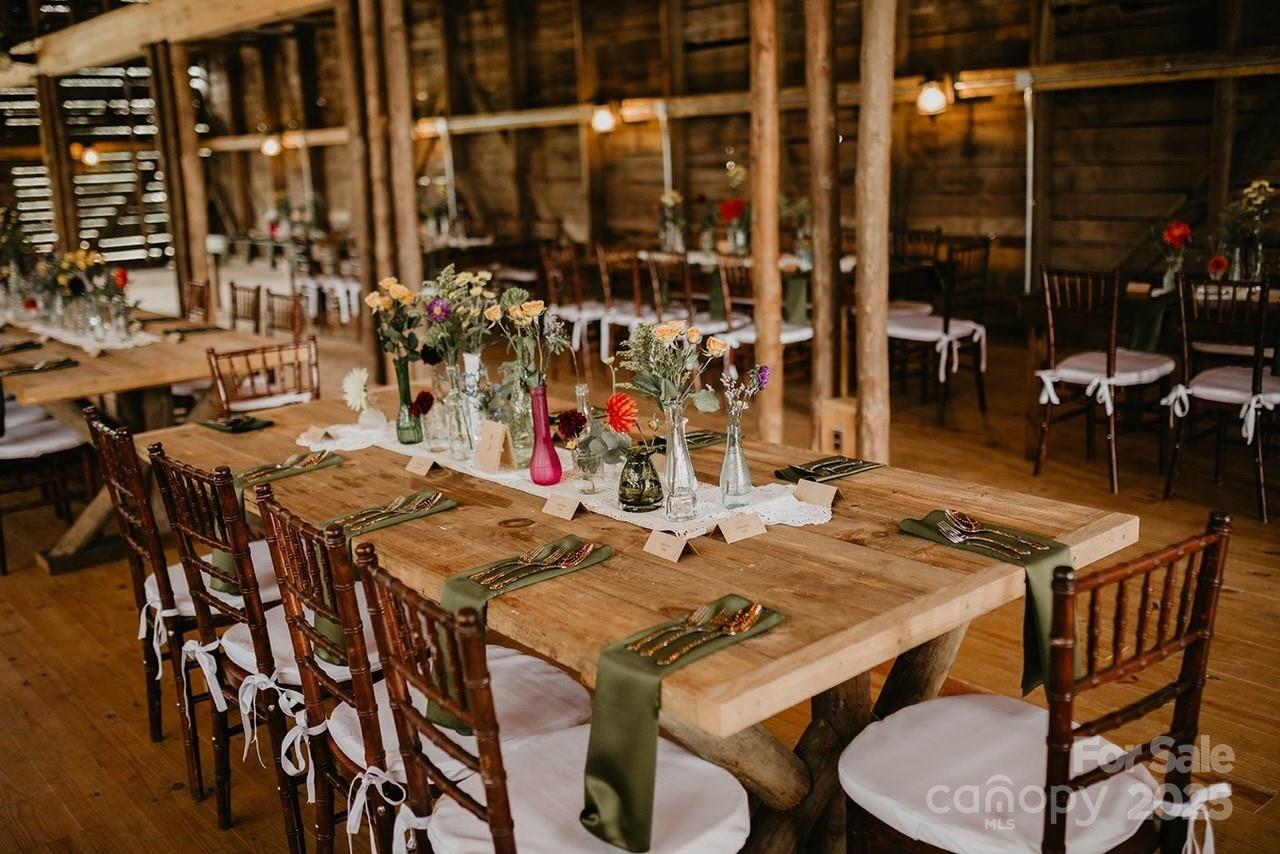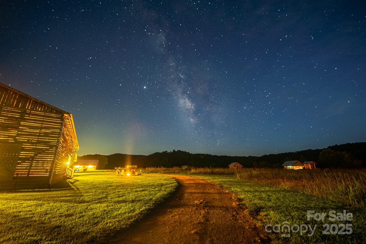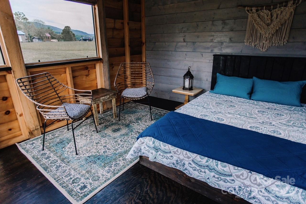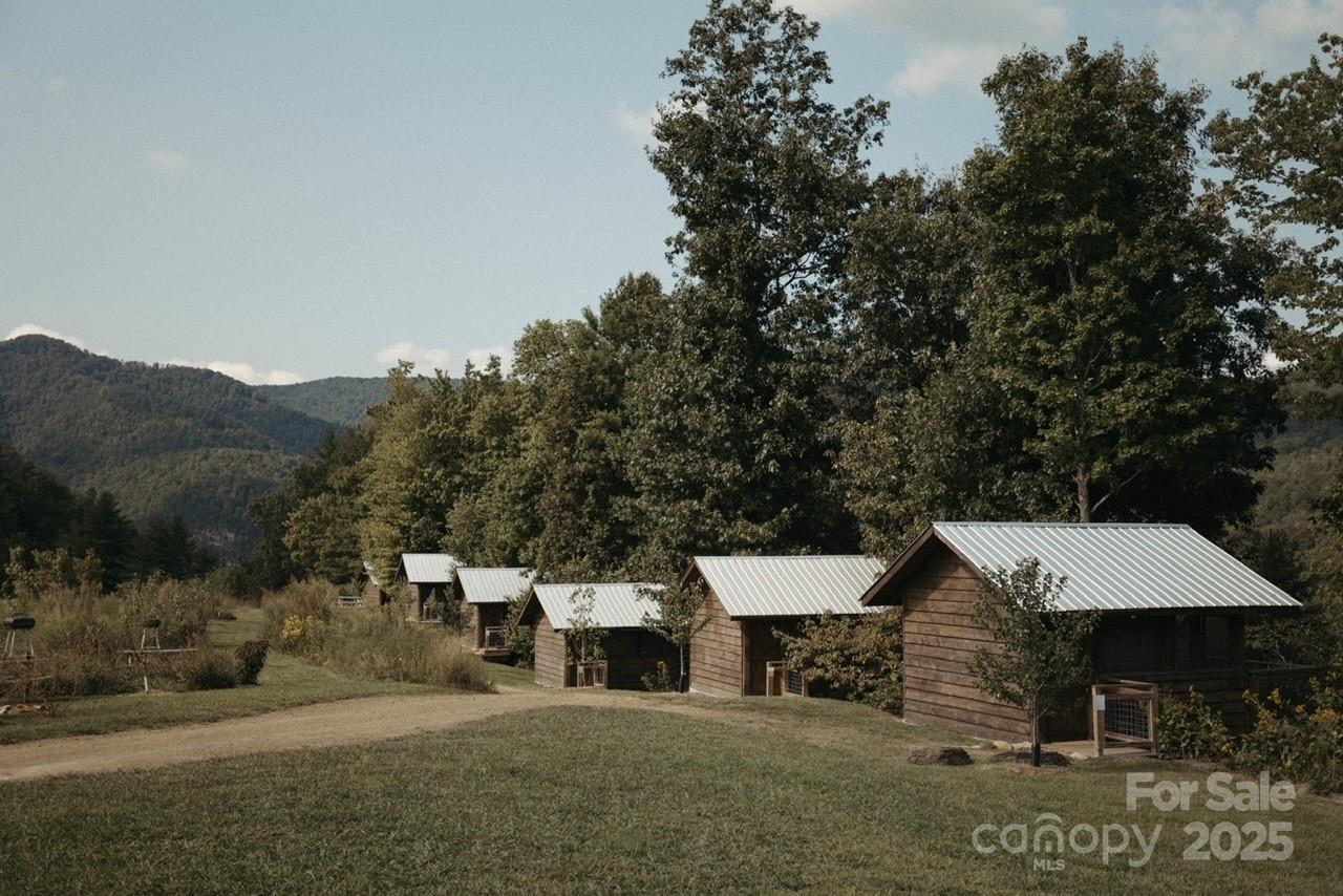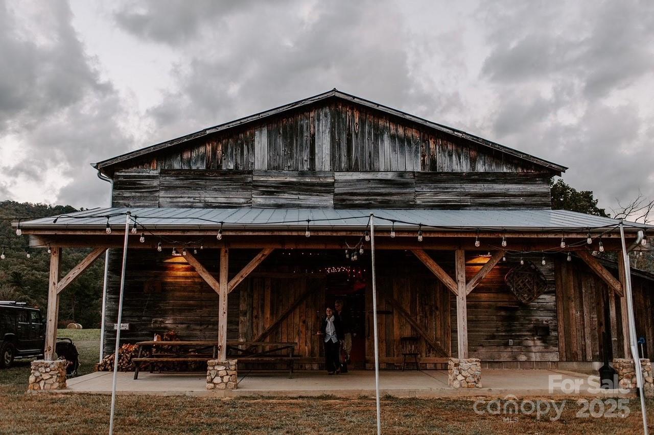 Nestled on 150+/- pristine acres along the French Broad River, Paint Rock Farm is a rare and remarkable retreat surrounded by the Cherokee and Pisgah National Forests. This private estate offers breathtaking views, unmatched serenity, and a climate-resilient location safely out of the floodplain, with comfortable off-grid living potential. With 111 acres protected under a Conservation Easement, the property preserves its natural beauty while offering abundant opportunities for sustainable living and recreation. Improvements include ten 196 sq ft glamping cabins, a 3,200 sq ft renovated event barn ideal for events and gatherings, a 1,200 sq ft solar-heated bathhouse with showers, restrooms, and laundry, and a 400 sq ft tiny house. Foot trails wind through the conserved forest, connecting guests with nature. Graveled driveways and parking. Perfect for weddings, retreats, agritourism, or an estate, Paint Rock Farm offers a unique blend of privacy and potential. No drive bys!