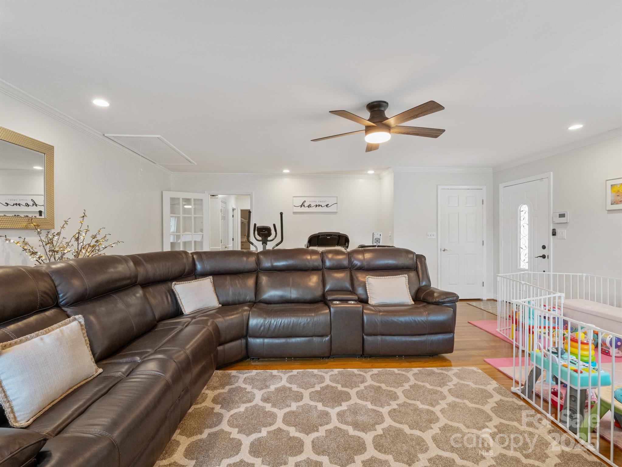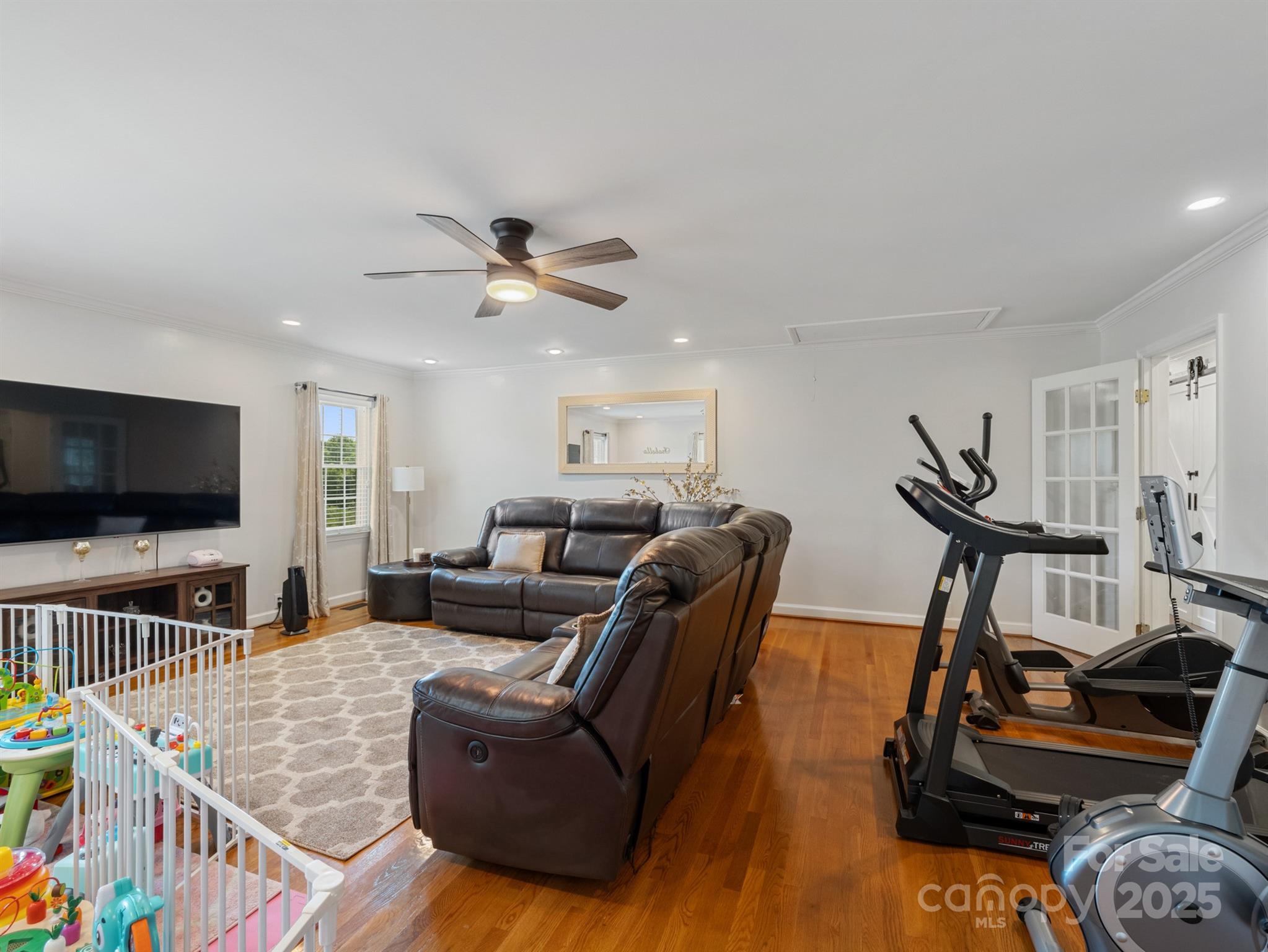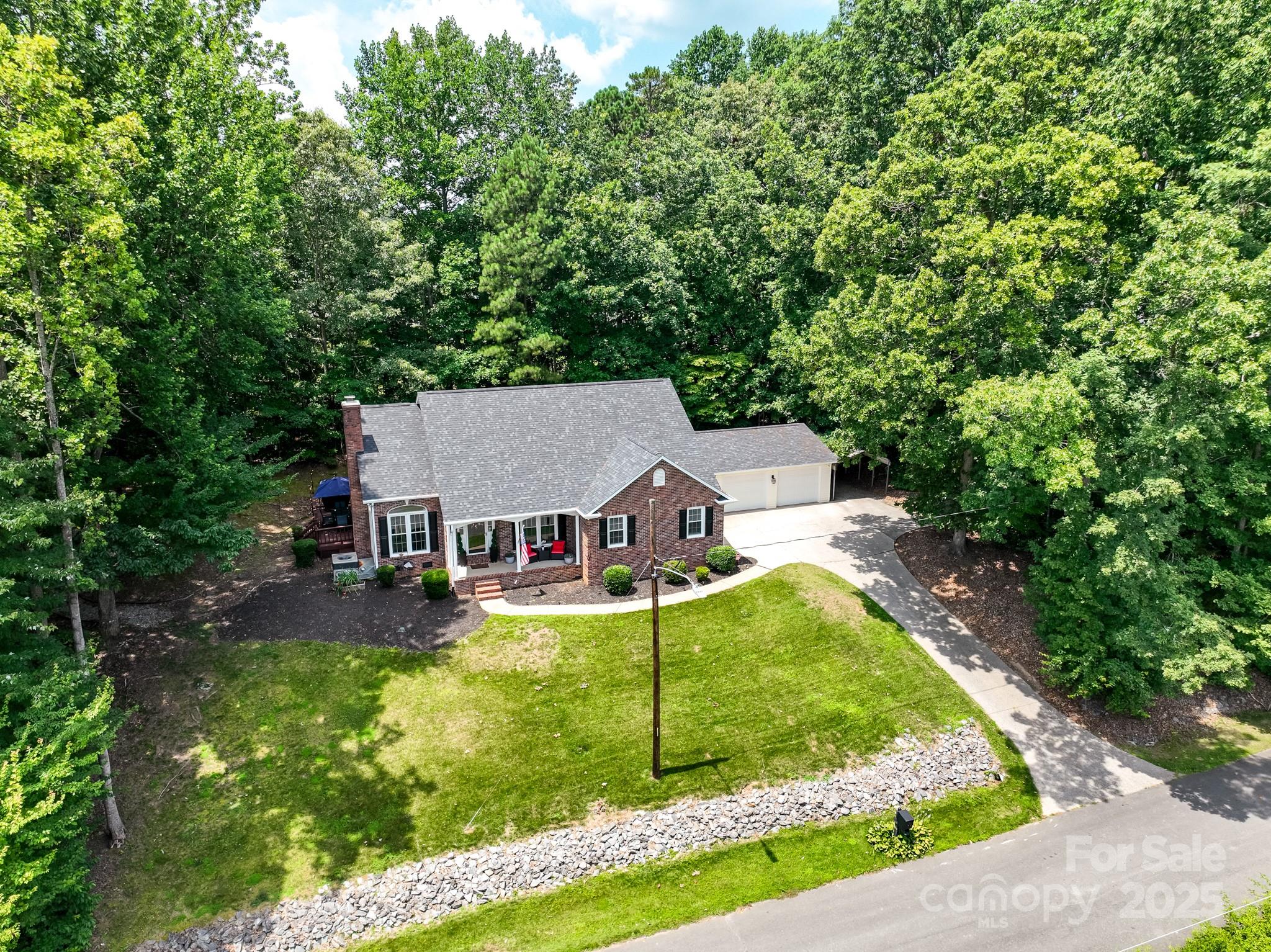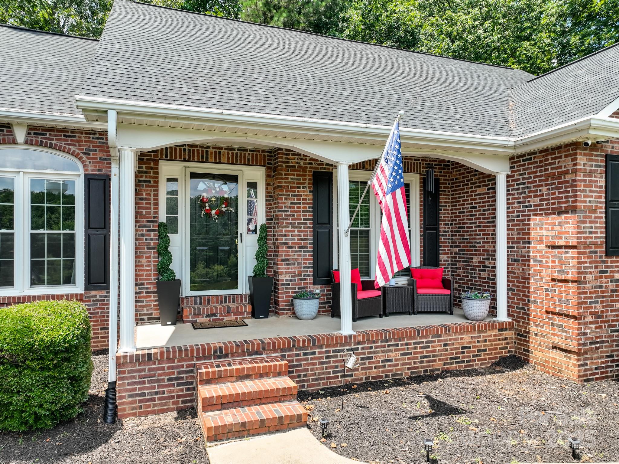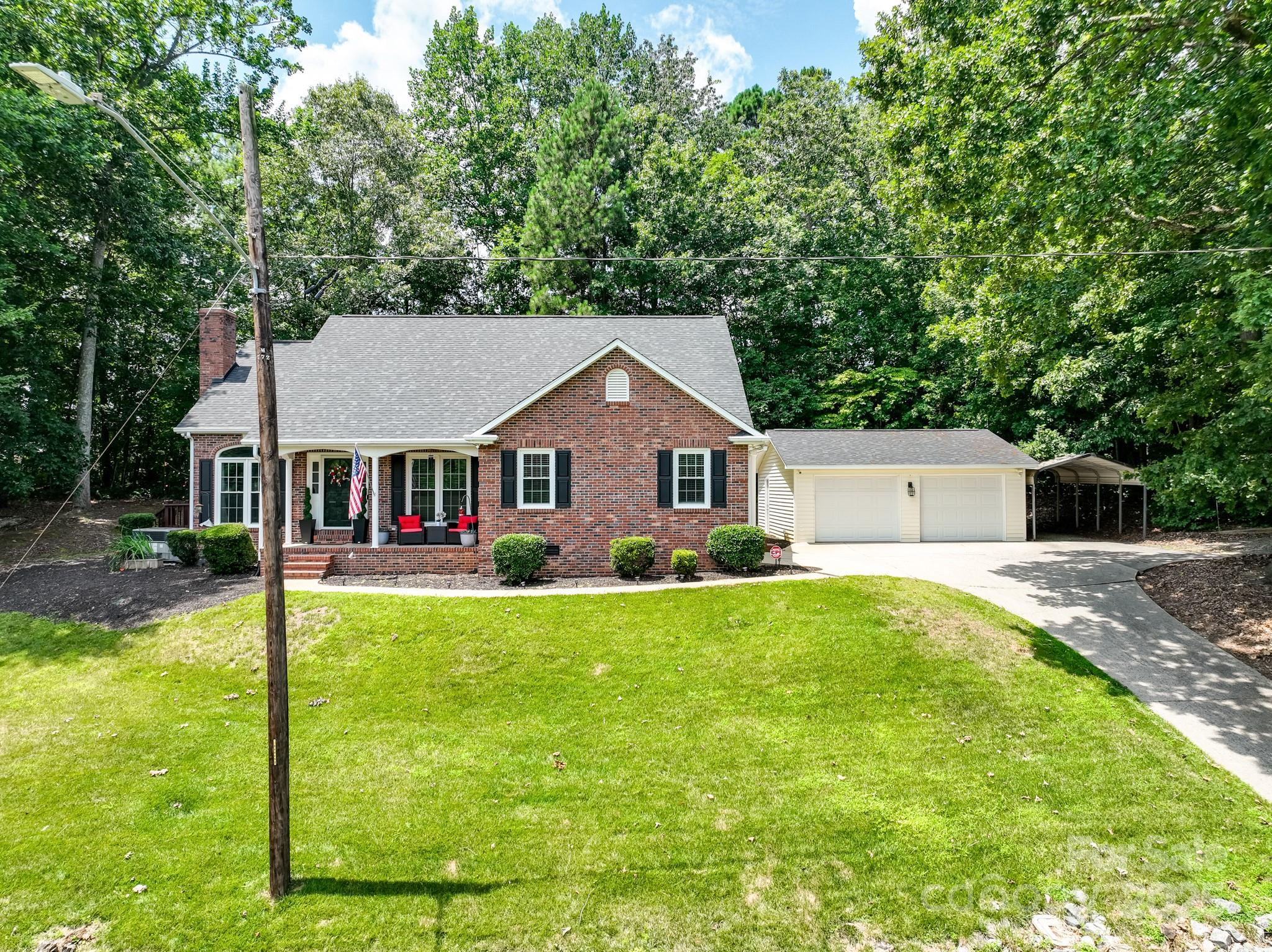 Charming hilltop ranch with picturesque views of a 5-acre pond just across the street, perfectly framed from your front porch. This meticulously maintained home boasts hardwood floors throughout, fresh light-toned paint, and an abundance of natural light. The spacious, open layout includes a cozy fireplace with inset—perfect for chilly evenings or enjoy the outdoor fire pit. The primary suite features an ensuite bath and ample closet space. Two additional generously sized bedrooms provide comfort and flexibility, while the fourth bedroom currently serves as a bonus room—ideal for a home office, gym, or playroom. A large detached 2-car garage offers space for vehicles, storage, or a workshop, equipped with heating and ac. A canopy cover that fits a big truck and a turn a way that can be used as a parking space. Plenty of parking! All just minutes from downtown Stanley & Mt Holly w/ dining, shops, coffee, ice cream, brewery, farmers market, River Street Park & River Hawk Greenway, Whitewater Center & airport!