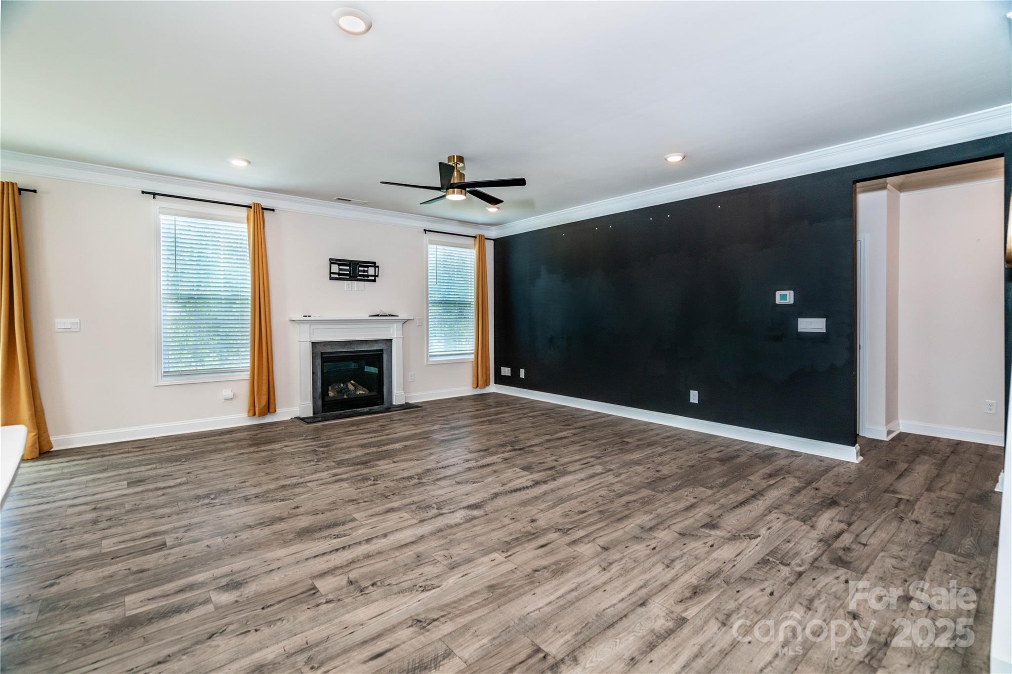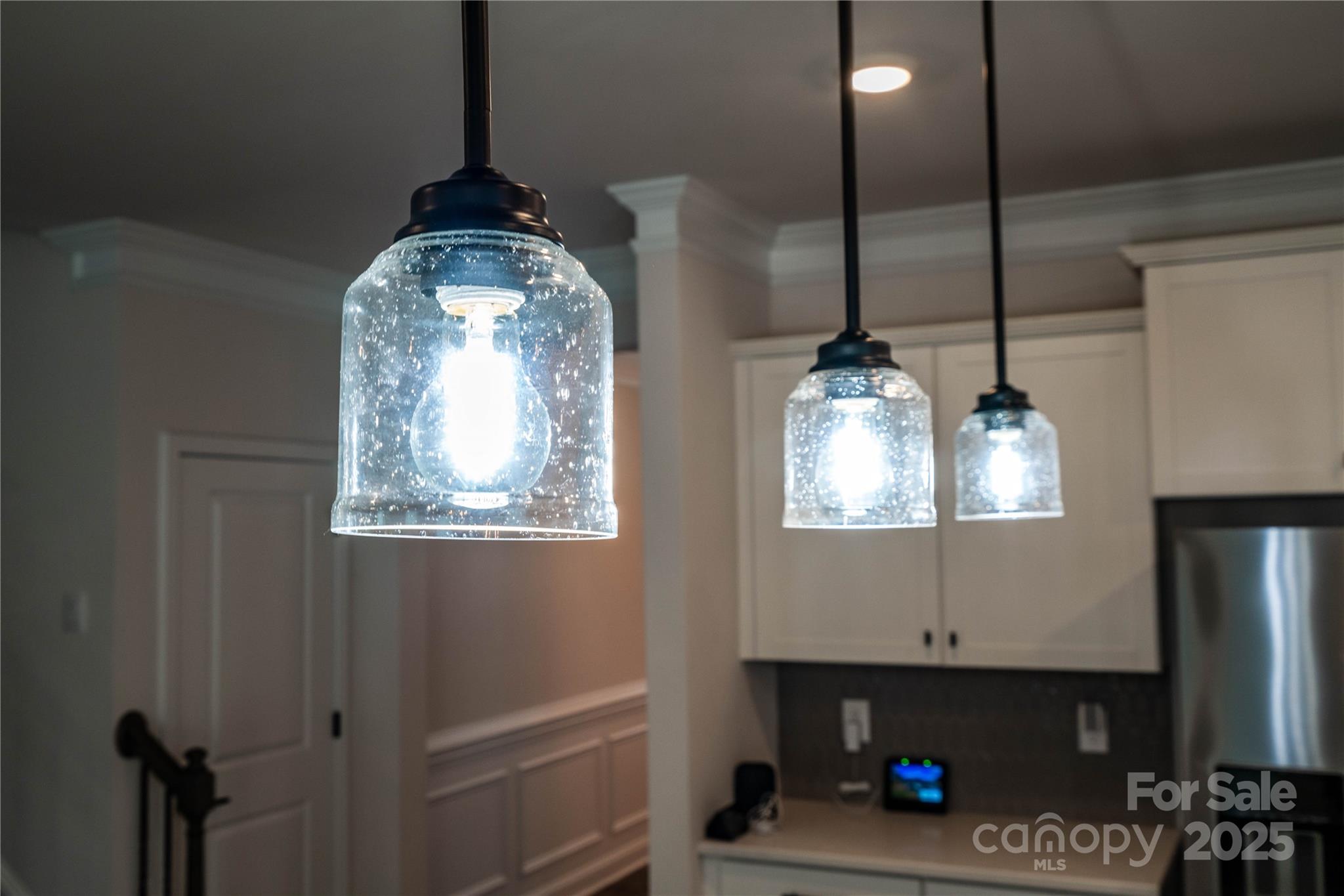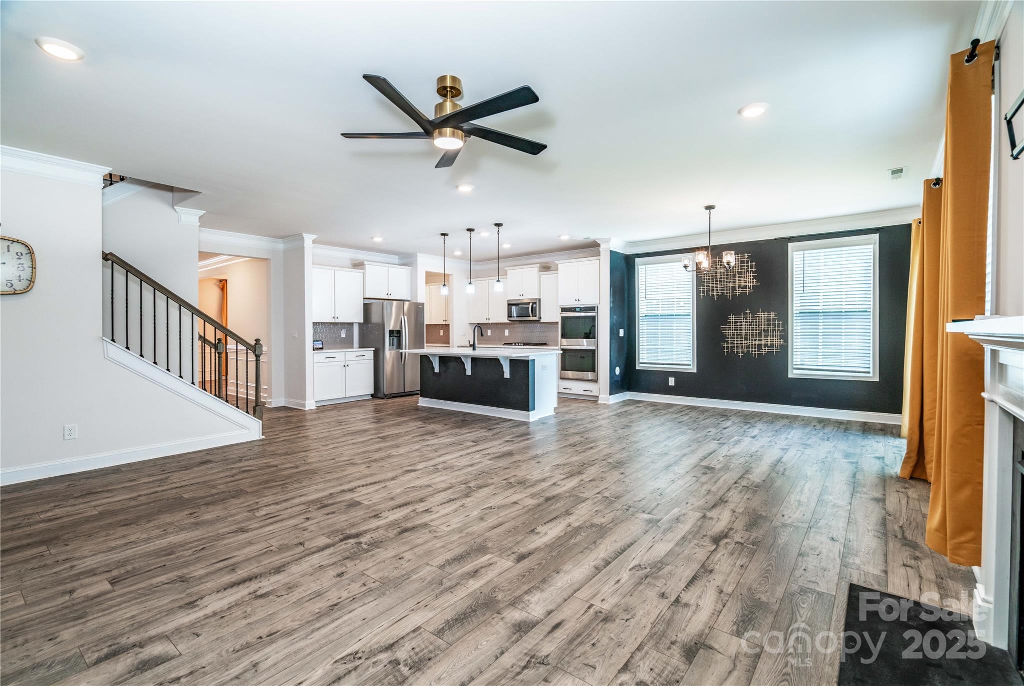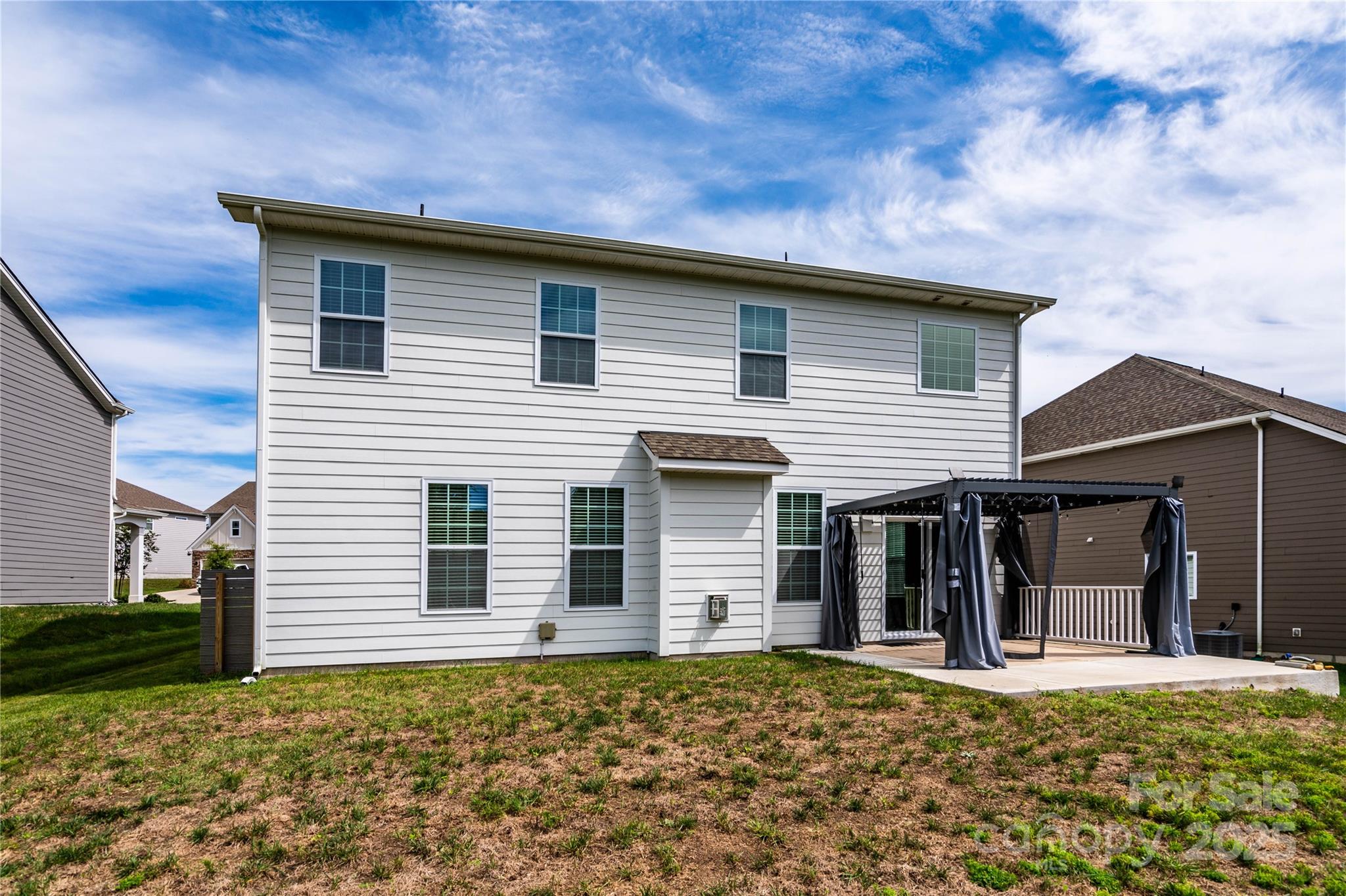 Wow, what a house! Enter through your rocking chair front porch and be greeted by elegant trim work in the foyer, 9ft ceilings on the main level, and a coffered ceiling in the dining with butler's pantry leading towards your beautiful kitchen with a huge island, quartz tops, SS appliances with gas stove, SS refrigerator is included. Kitchen opens to a large family room with cozy gas fireplace, adjacent to a guest room with private bath. Expansive primary bedroom retreat with a sitting area, large primary bath with dual vanities, shower with semi-frameless glass, and huge walk in closet. The awesome bonus/loft has a built in projector and large screen, this room is big and presents as more of a bonus room than a loft.The yard backs to woods for the ultimate privacy while enjoying your expanded patio with pergola. Exterior features included low maintenance fiber cement siding with beautiful stone accents. Also includes a tankless water heater.