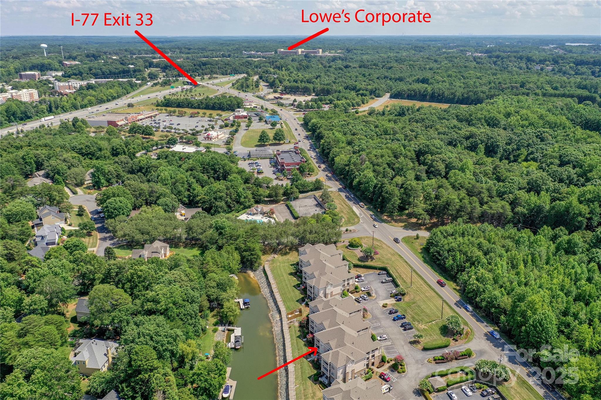 Enjoy beautiful, year-round water views from this top-floor home featuring soaring third-floor ceilings with custom barnwood beams and a matching mantle that add rustic elegance to the living area. This recently updated home includes luxury vinyl plank flooring throughout, fresh paint, and brand new countertops in both the kitchen and one bathroom. The kitchen comes equipped with all new appliances. The washer and dryer are also included, making this home move-in ready. Located in a desirable waterfront community, you can enjoy access to Lake Norman, along with fantastic amenities including a pool and tennis courts. Already own a boat? Stutts Marina and a boat club are around 5 miles away for convenient lake access. Perfectly situated just off I-77 at Exit 33, this home is close to Lowe's Corporate Headquarters, Langtree shopping, and an array of great restaurants. Don’t miss this opportunity to live the lake lifestyle with comfort, convenience, and captivating views!