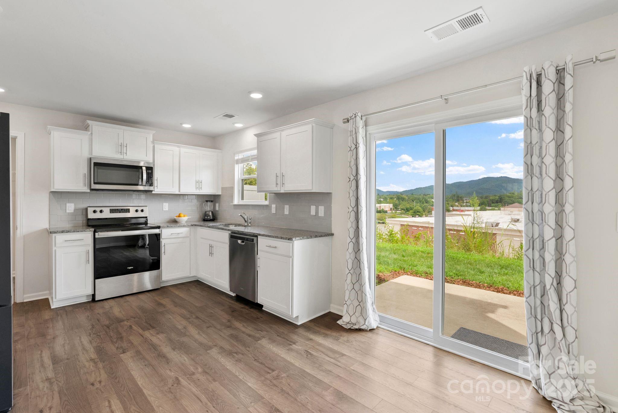 Like-new 3BR/2.5BA end-unit townhome in desirable Weaverville! 1,454 sq ft with stunning long-range mountain views. Enjoy low-maintenance living with all the details you want—granite countertops, tiled backsplash, half bath on the main level, separate laundry room, and a 1-car garage. Still covered by an active 10-year structural warranty. Just 5–7 minutes to downtown Weaverville and 15 minutes to Asheville. Security system available through "Safe Haven."