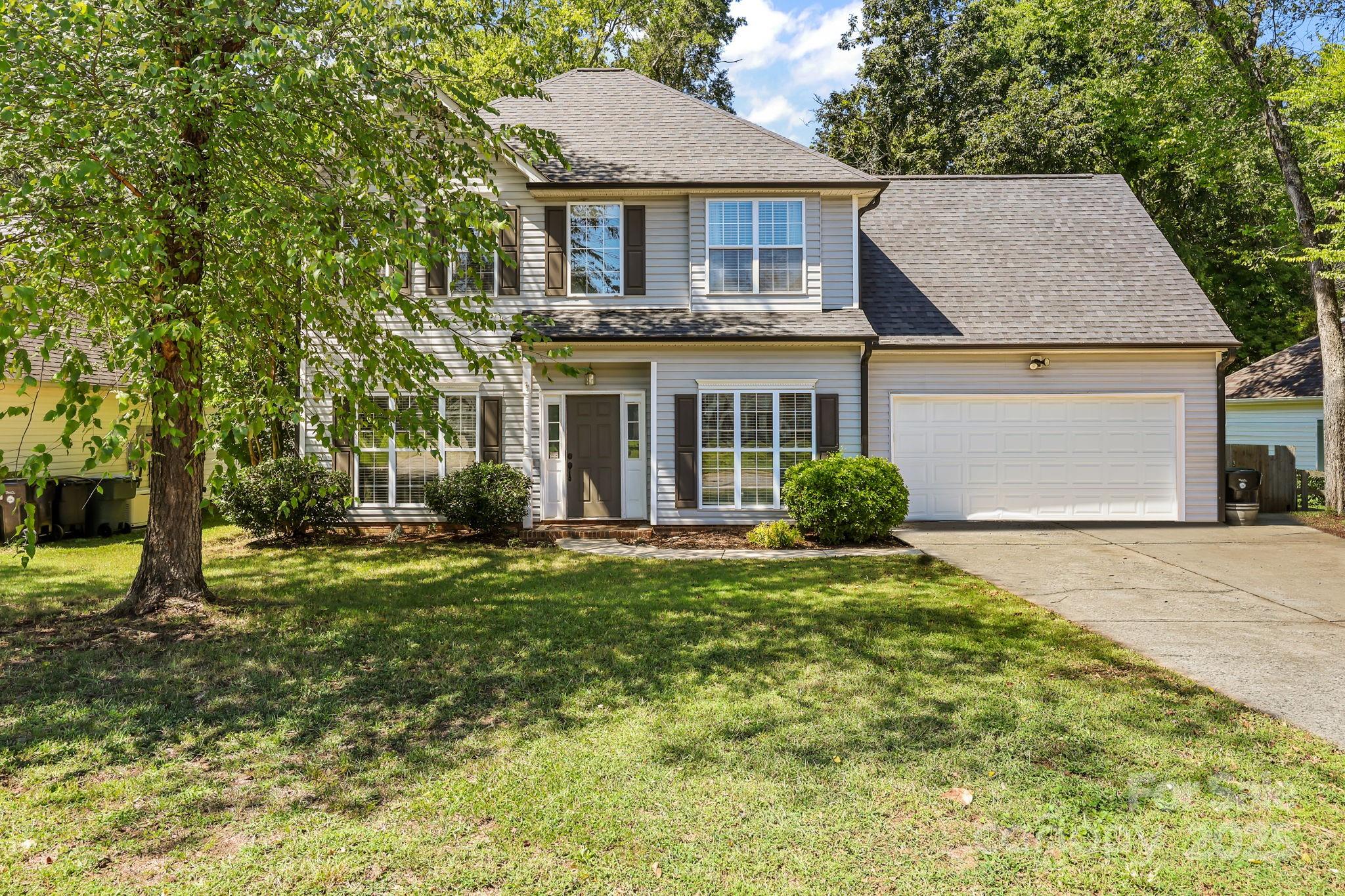 Welcome to this charming 2-story home located in the desirable Greystone community of Concord, NC. Offering 4 bedrooms, 2.5 bathrooms, and an attached 2 car garage. This home provides both comfort and flexibility. The main level features a welcoming living room with a cozy fireplace, a formal dining room, and a spacious kitchen with a breakfast area. Upstairs, the primary suite boasts a walk-in closet and a beautifully updated bathroom complete with a double vanity and tiled walk-in shower. Three generously sized guest bedrooms share another updated full bathroom with a tiled tub. The third upstairs bedroom/bonus room adds extra living space and has been updated with fresh paint and NEW CARPET. Step outside to enjoy a fully fenced backyard with a concrete patio—perfect for relaxing or entertaining. This well-maintained home is a wonderful opportunity you don’t want to miss!