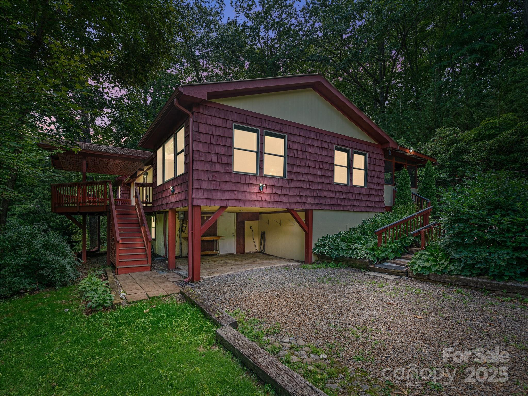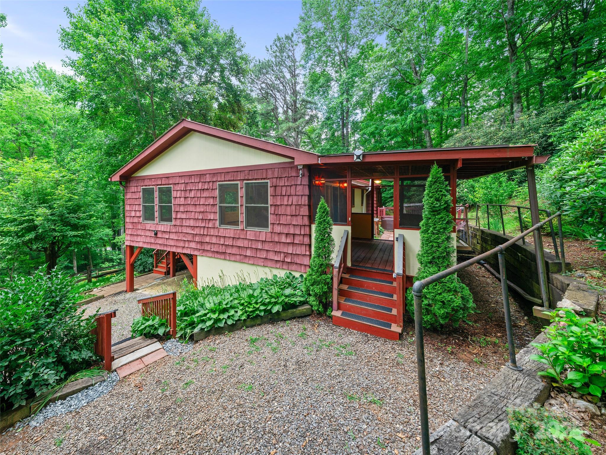 Welcome to the South Toe Community of Yancey County, minutes to Mt Mitchell State Park (highest peak east of the Mississippi) and the majestic Blue Ridge Parkway. View the gorgeous South Toe River and sprawling Appalachian Mountains, every time you go home! Nestled on a quiet dead end rd, and small secluded community, this chalet-style home is beautifully set among trees, landscaped with a variety of beautiful native flora. Enjoy natures sights and sounds, sitting on the huge, partially covered, front deck or the screened back porch! Soak among the Mountain Laurels, Rhododendrons and night skies in the privately set Hot Tub! The home boasts a large, bright, open family room, with cathedral ceiling and gas fireplace. Offers comfortable, 3bd 2 bath, with Primary En suite. A large charming dining room, off the nice sized kitchen is a plus! Unfinished basement is great for storage or expansion. The flow of the house and outdoors is a peaceful paradise, great for entertaining guests! Make this home your retreat!