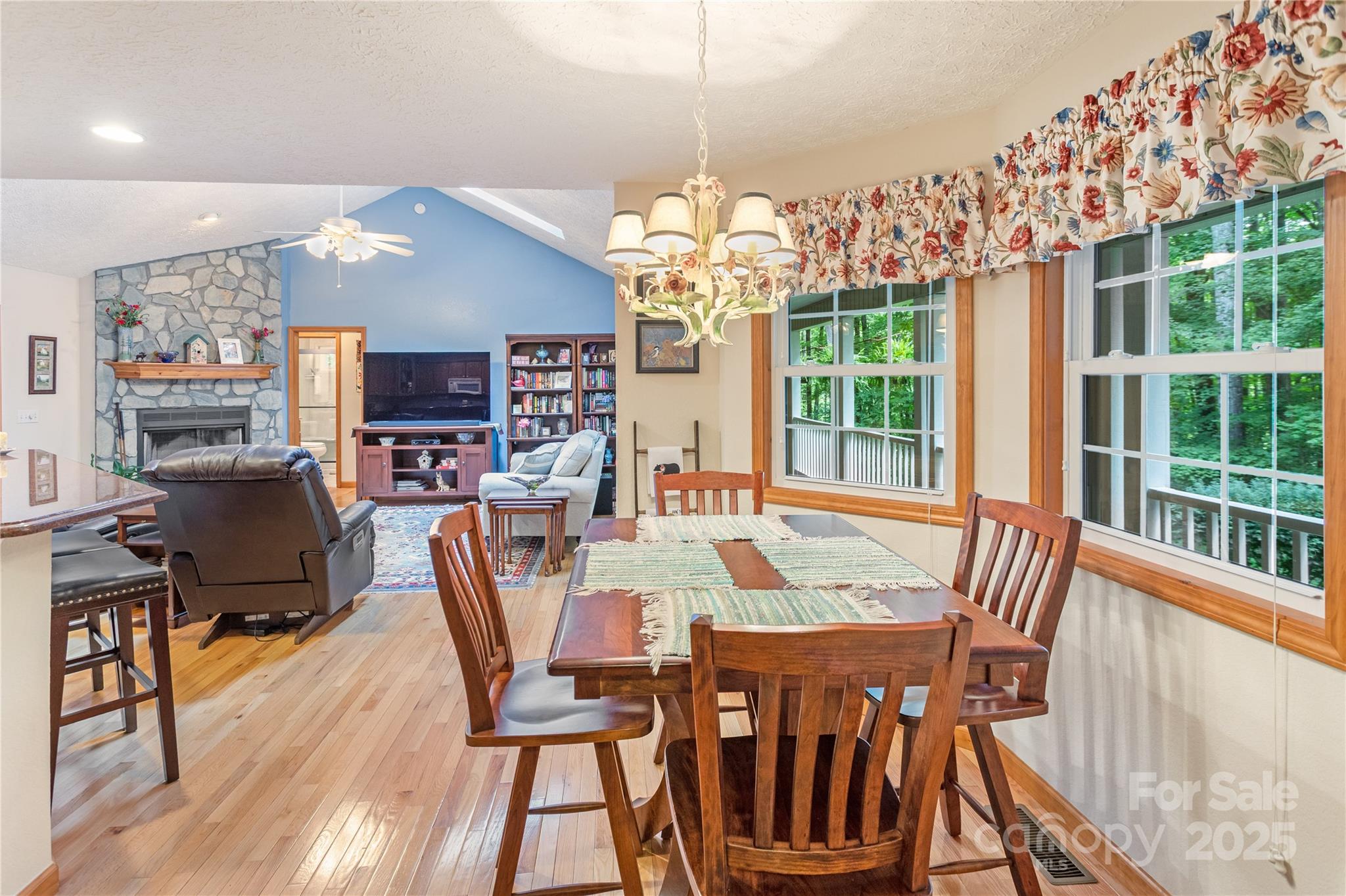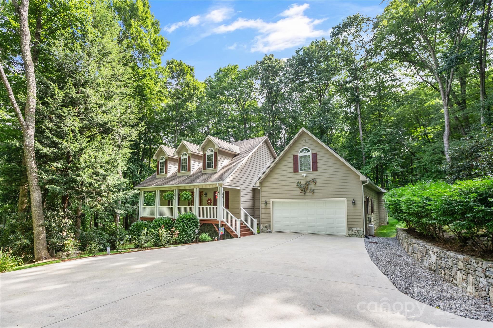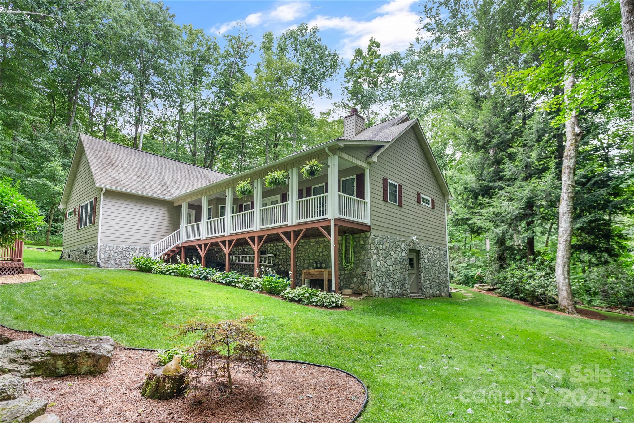 Immaculately maintained 3BR/2BA home exudes charm and offers all one-level living in a stunning park-like setting in the heart of Maggie Valley. The open floor plan features a great room with vaulted ceiling, breakfast nook, and kitchen island seating—perfect for entertaining—along with gleaming hardwood floors and a cozy wood-burning fireplace. The dedicated dining room adjacent to the kitchen boasts a fabulous storage pantry with a myriad of uses. A versatile bonus room is ideal for crafts, play, or a home office. The primary bedroom suite opens to a covered back deck and features a whirlpool tub and walk-in shower. A smart split bedroom plan ensures privacy and comfort for occupants and guests. The oversized 2-car garage includes workspace, while the expansive crawl space boasts a separate workshop and storage. Lush landscaping, a charming gazebo and ample parking complete this private retreat, just minutes from town with convenient year-round access.