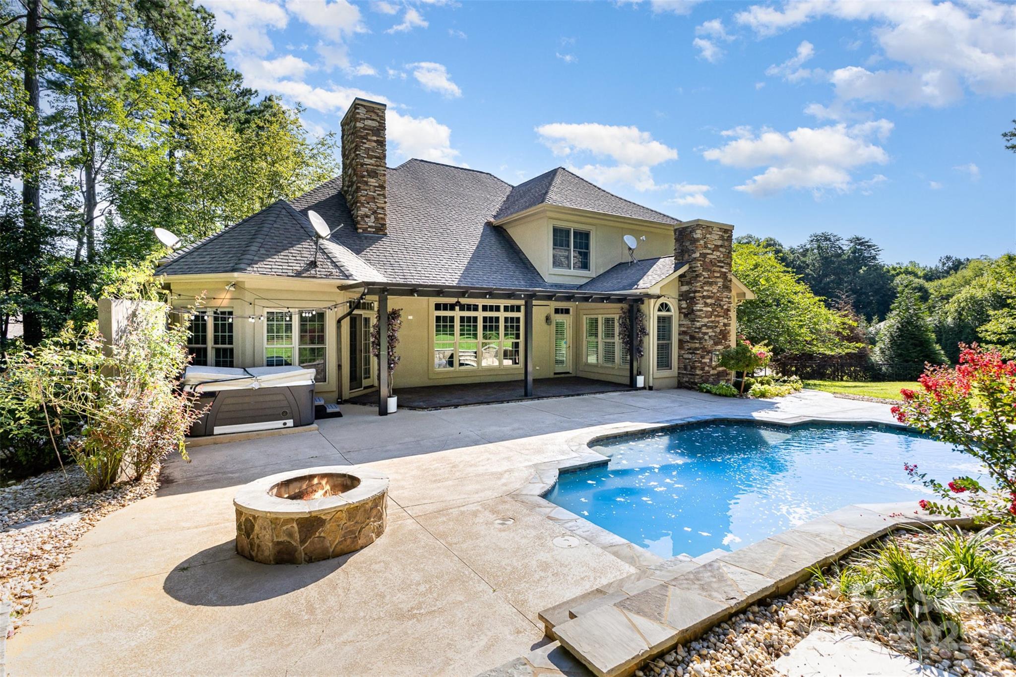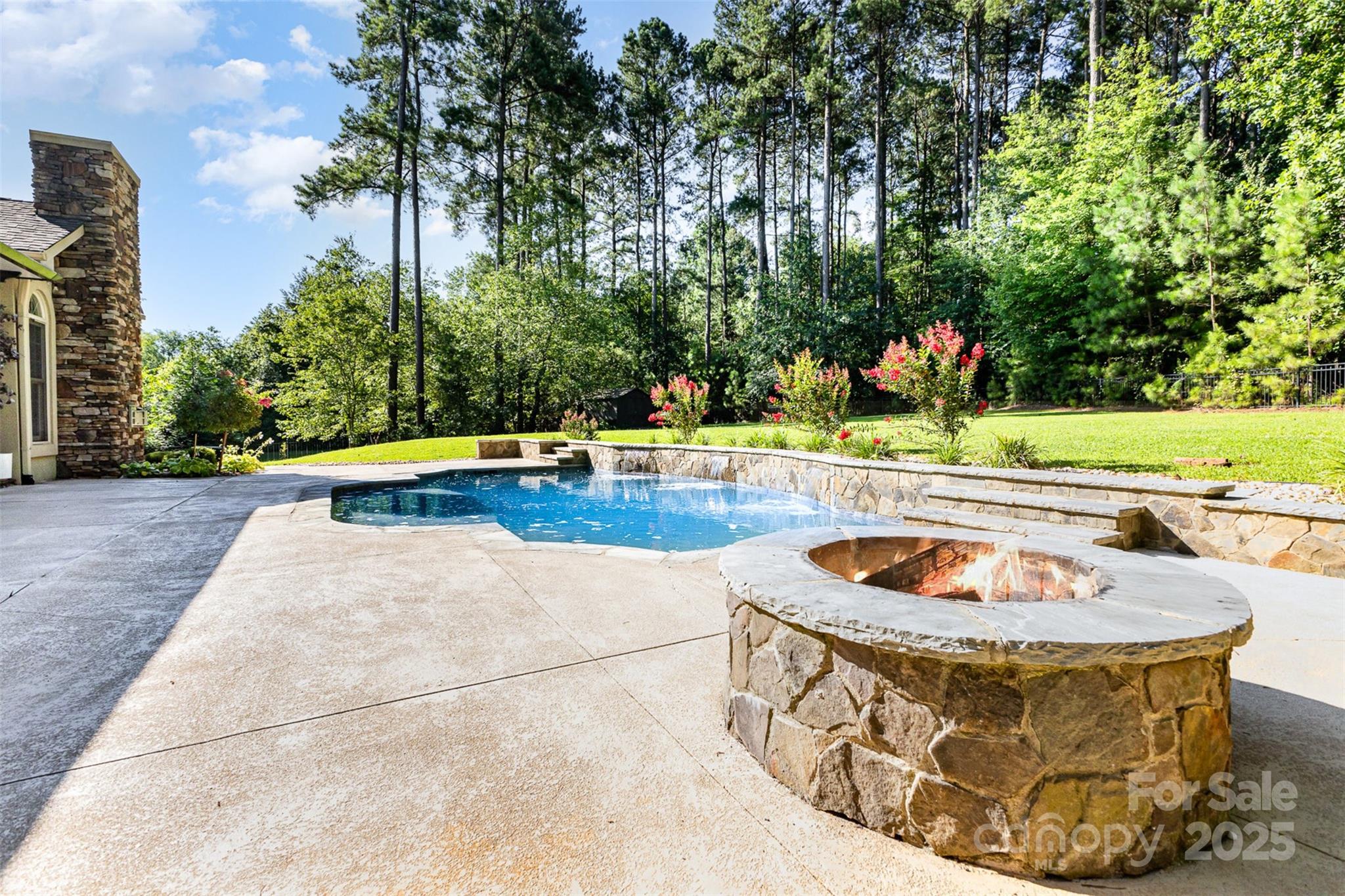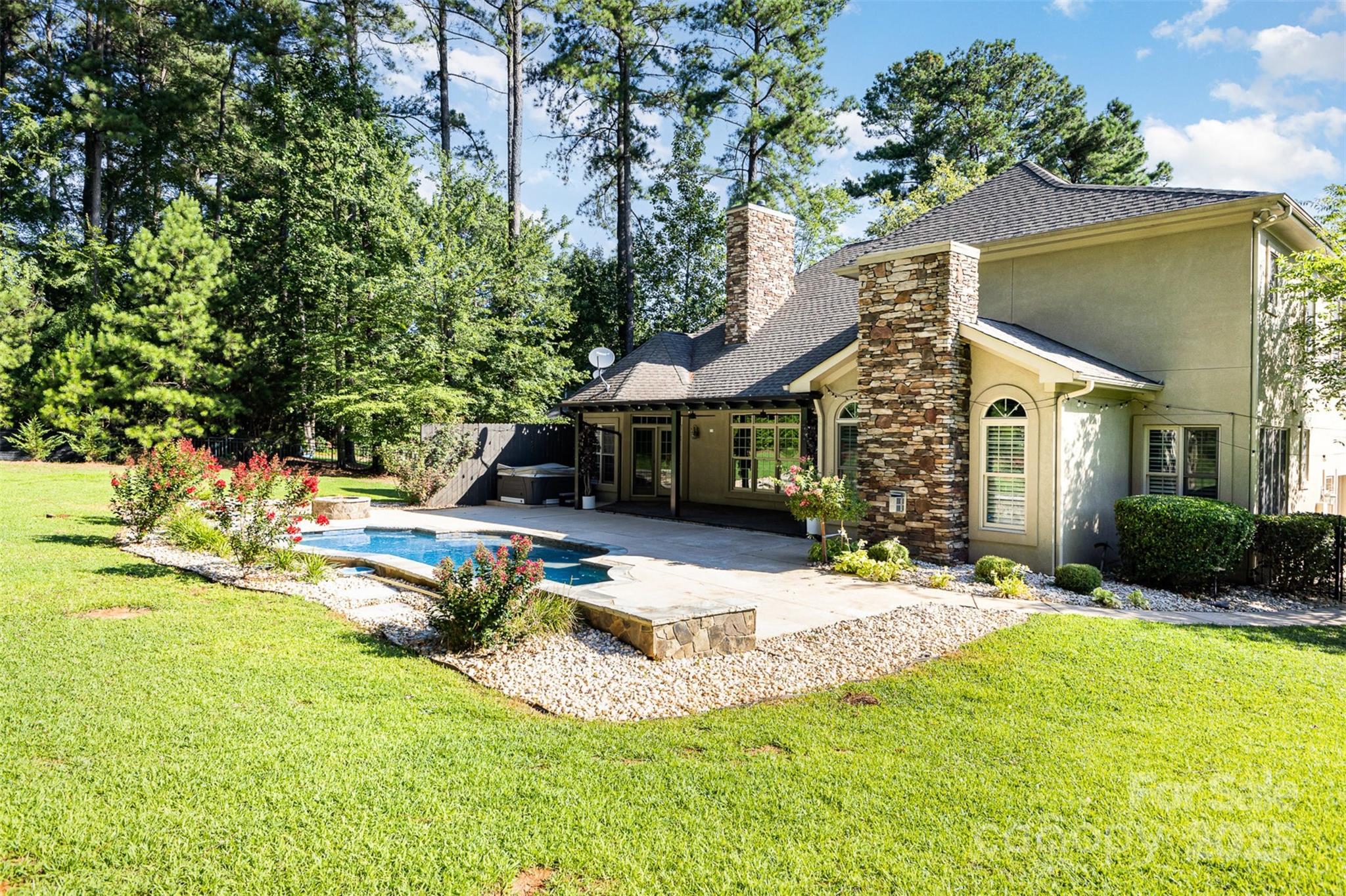 PRICE ENHANCEMENT! Nestled on a quiet .82-acre cul-de-sac lot, this 4BR, 3.5BA custom home blends luxury and comfort. The striking entrance opens to a thoughtfully designed interior featuring a chef’s kitchen with Bosch stainless appliances, granite countertops, custom cabinetry, and a keeping room perfect for cozy gatherings. Work from home in a private office with elegant French doors, host guests in the formal dining room, and relax in the expansive great room with soaring ceilings and a grand stone fireplace. The main-level primary suite offers dual walk-in closets and a spa-like bath with a jetted soaking tub and separate shower. Upstairs, a spacious bonus room adds versatility for media, office, or guest use. Step outside to your fenced backyard oasis with a resort-style pool, tanning ledge, and waterfall. Fresh interior paint July 2025 makes this home truly move-in ready. Rare opportunity for privacy, elegance, and everyday functionality.