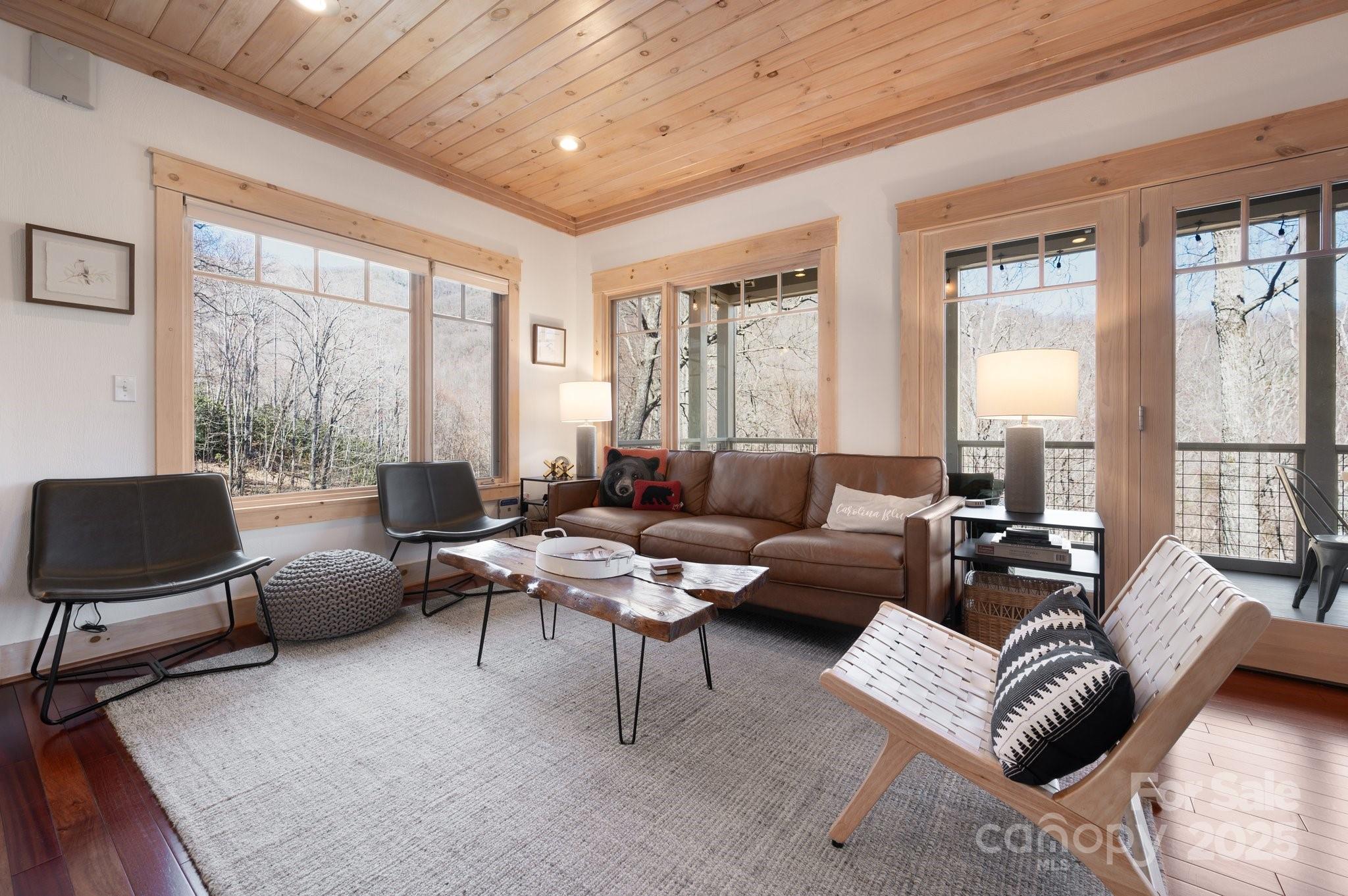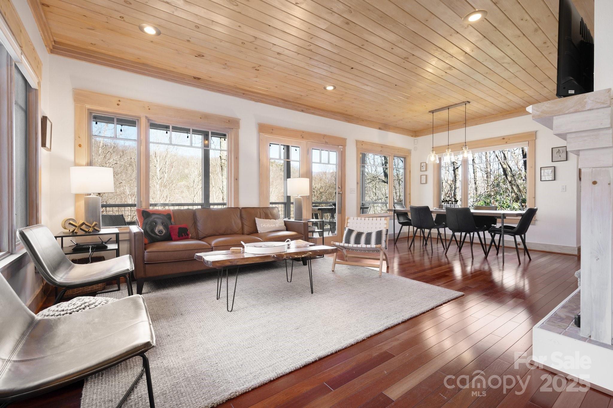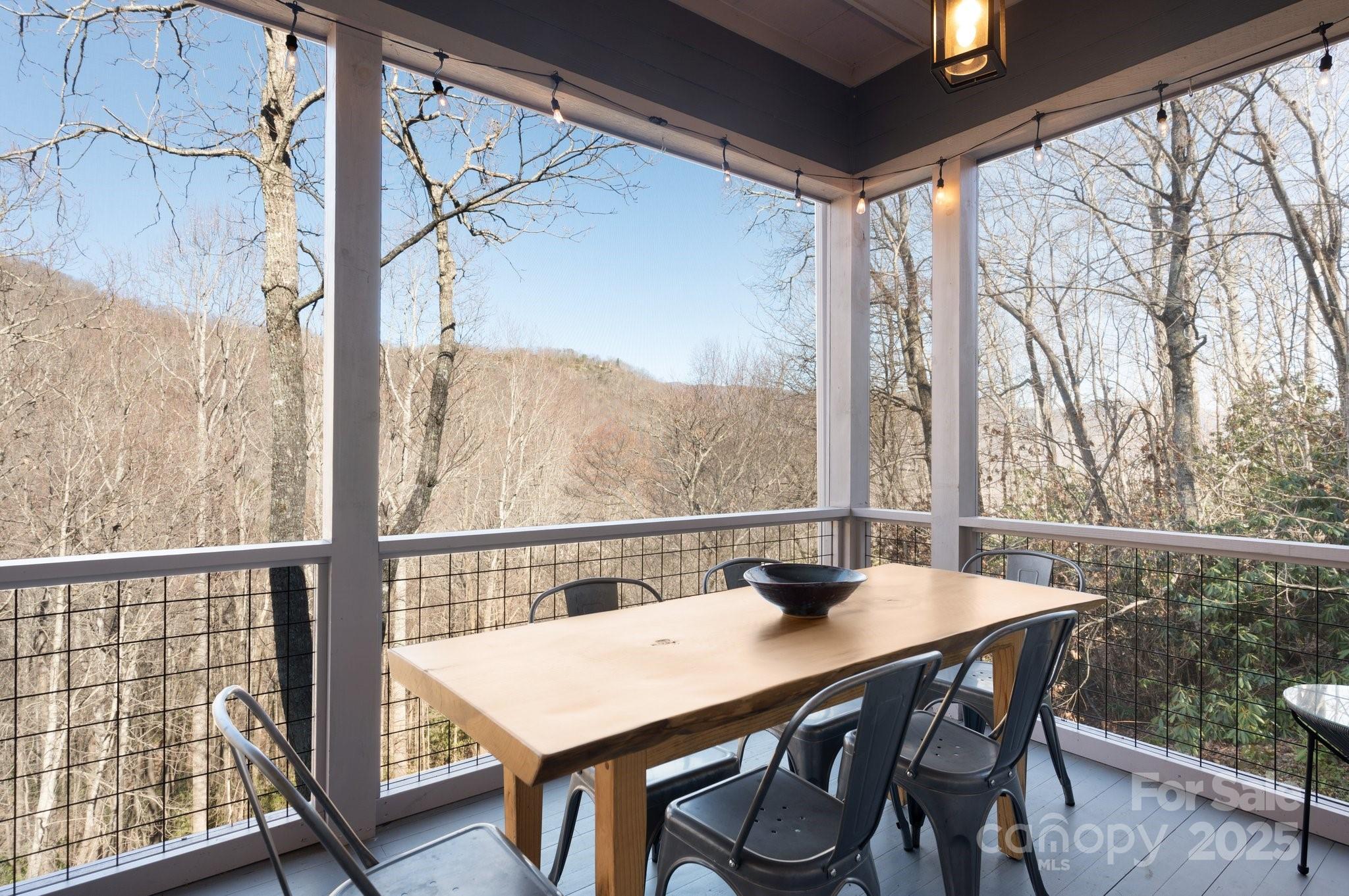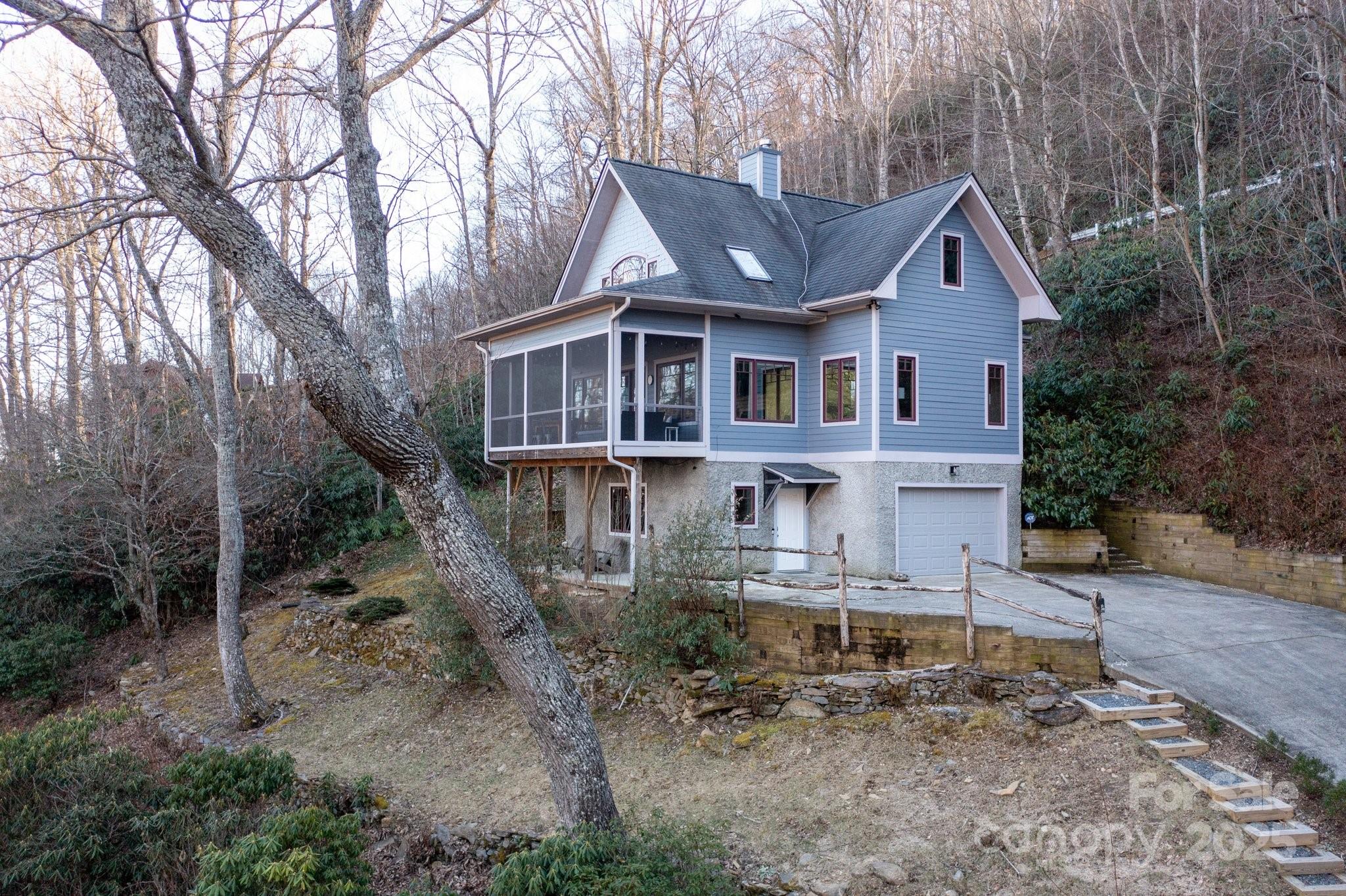 Beautiful mountain getaway, located six miles from vibrant downtown Black Mountain and just over 30 minutes from downtown Asheville. This move-in-ready home features mountain views and privacy, plus the lusciously wooded neighborhood allows short-term rentals, if desired. Lovely mountain views await on a front deck ideal for hosting dinner parties — or for simply enjoying a relaxing morning. Its modern, open floor plan features a beautiful kitchen, stunning pine ceilings and cherry hardwood floors, and a gas fireplace with built-ins for cozy nights. While it includes three bedrooms, numerous other sleeping spaces are available if needed, and there is plenty of storage in the one-car garage and mechanical room. Ideal floor plan for hosting family and friends who are ready to visit Western North Carolina and explore all that Black Mountain and Asheville have to offer. Most furnishings available to purchase, should buyers desire a true turnkey opportunity.