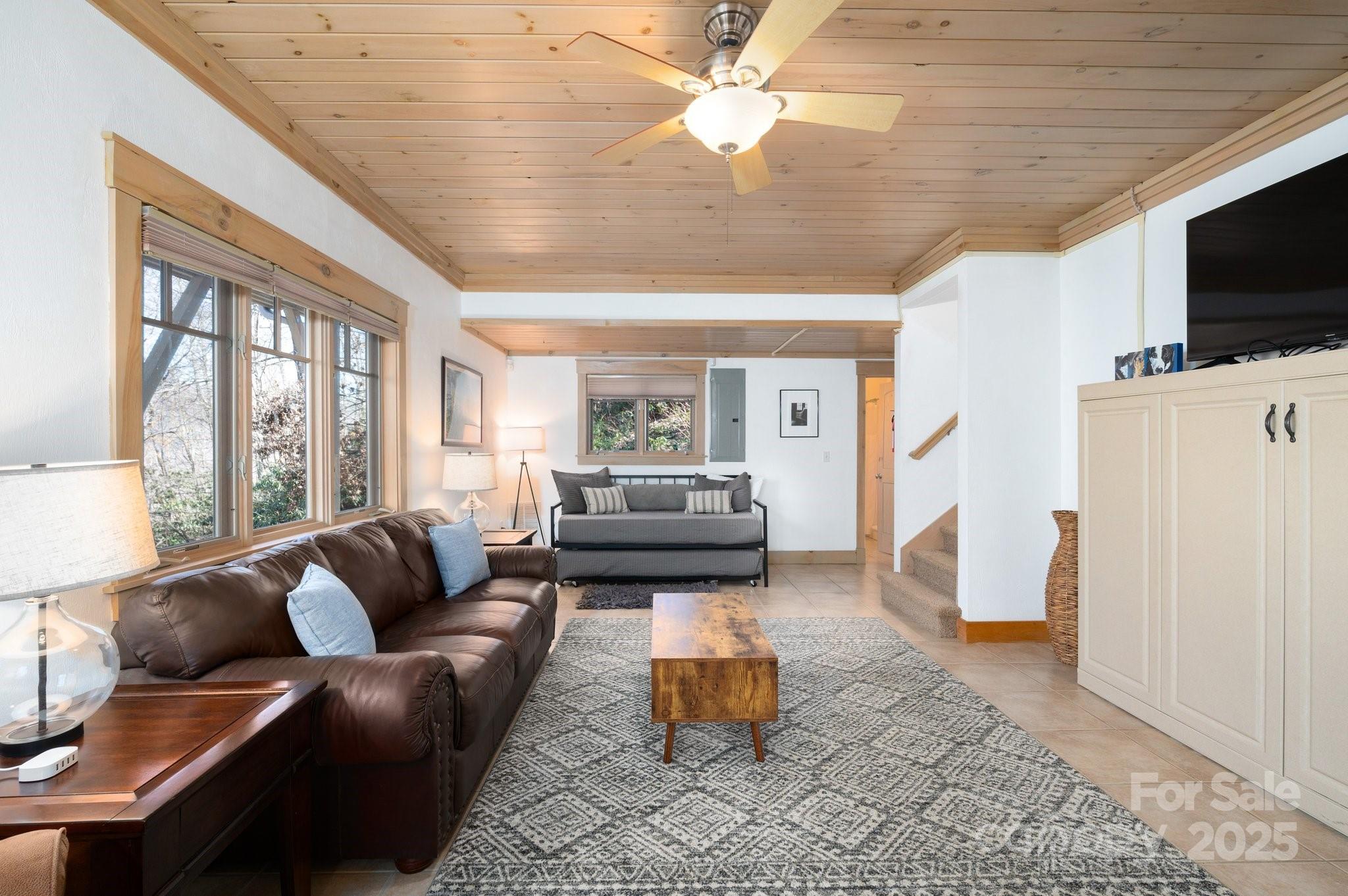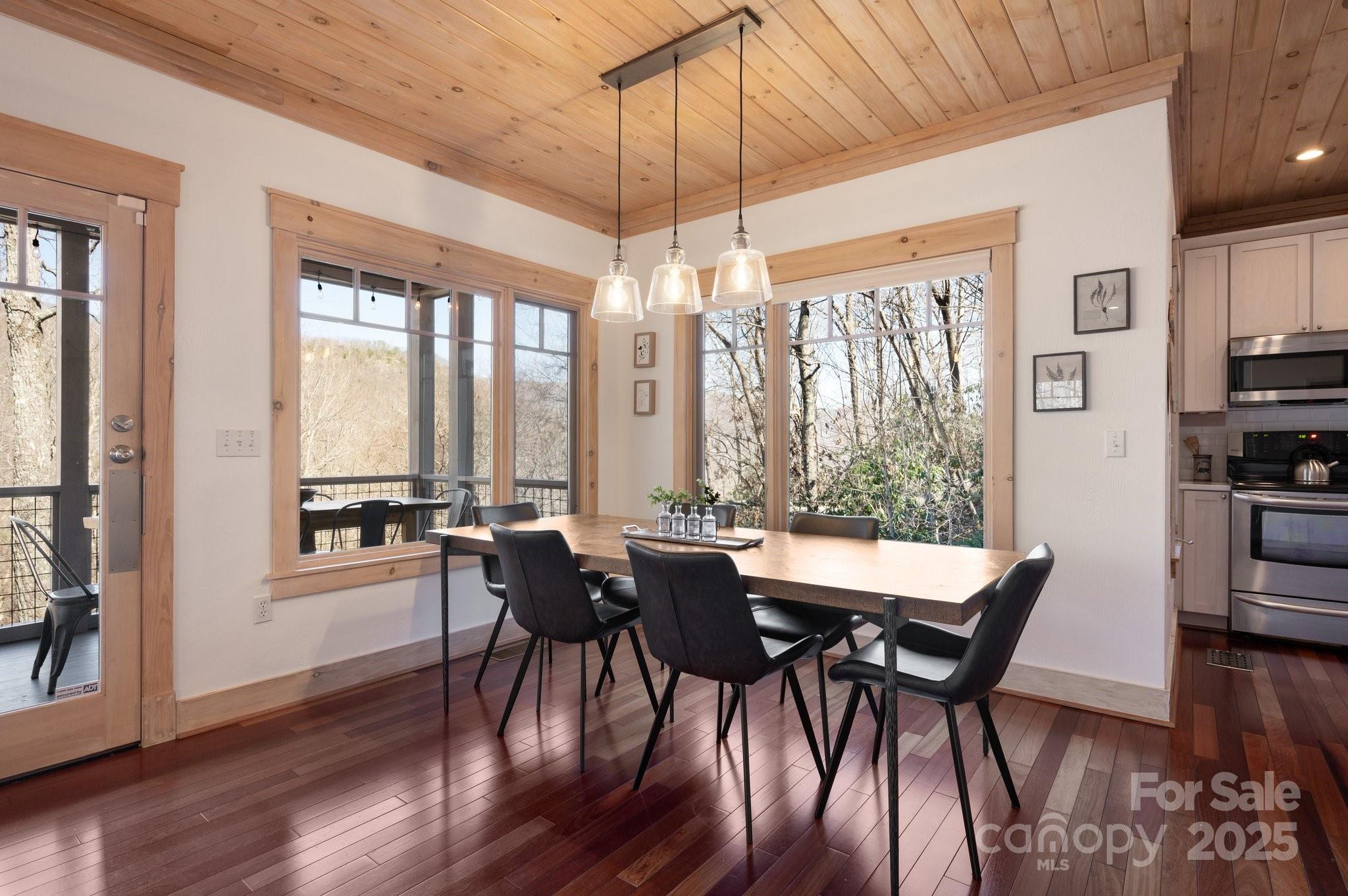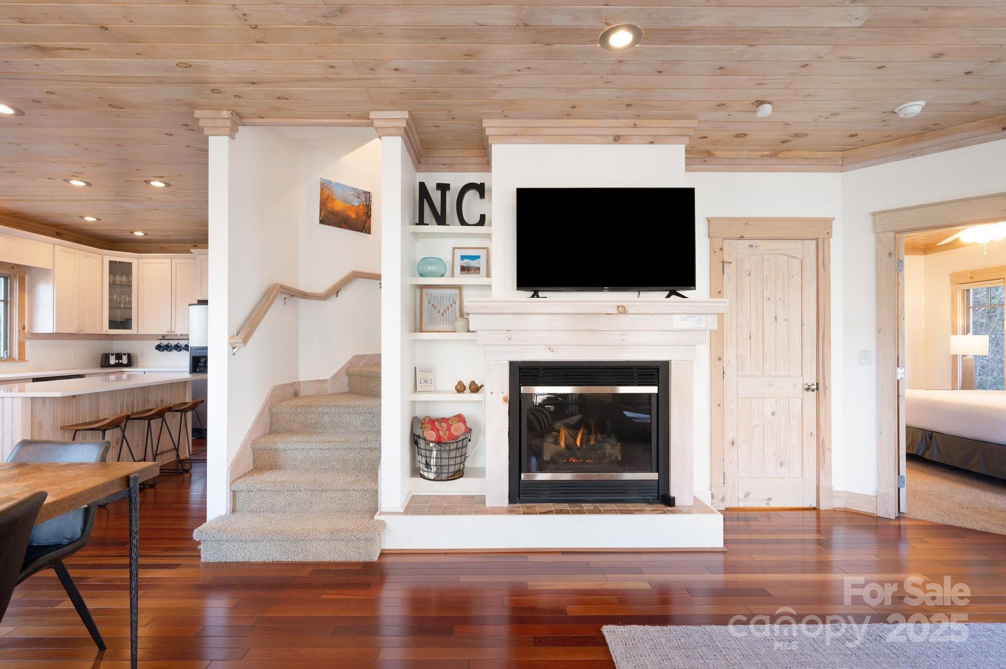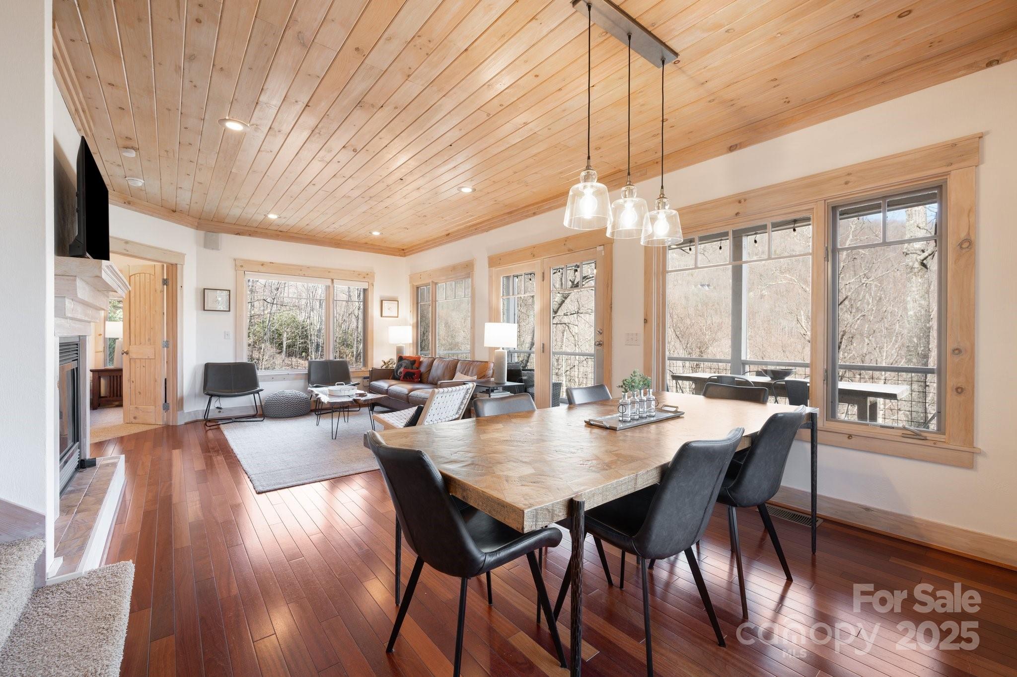 Beautiful mountain getaway, located six miles from vibrant downtown Black Mountain and just over 30 minutes from downtown Asheville. This move-in-ready home features mountain views and privacy, plus the lusciously wooded neighborhood allows short-term rentals, if desired. Lovely mountain views await on a front deck ideal for hosting dinner parties — or for simply enjoying a relaxing morning. Its modern, open floor plan features a beautiful kitchen, stunning pine ceilings and cherry hardwood floors, and a gas fireplace with built-ins for cozy nights. While it includes three bedrooms, numerous other sleeping spaces are available if needed, and there is plenty of storage in the one-car garage and mechanical room. Ideal floor plan for hosting family and friends who are ready to visit Western North Carolina and explore all that Black Mountain and Asheville have to offer. Most furnishings available to purchase, should buyers desire a true turnkey opportunity.