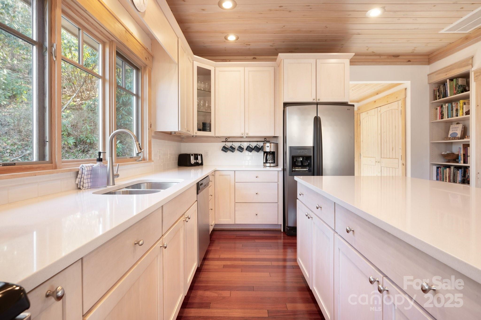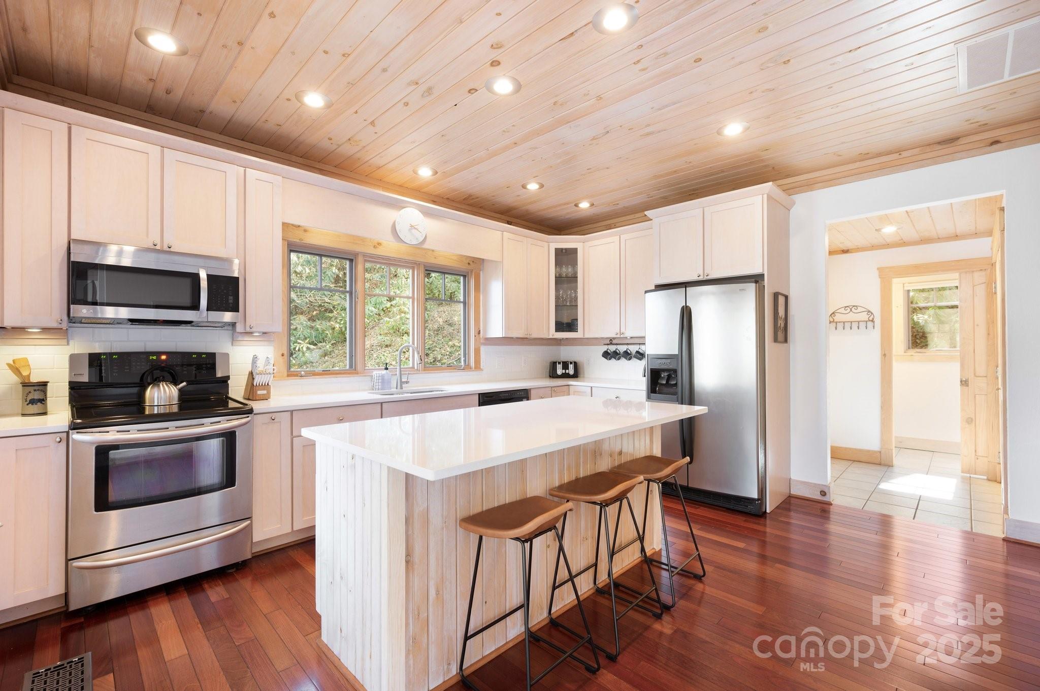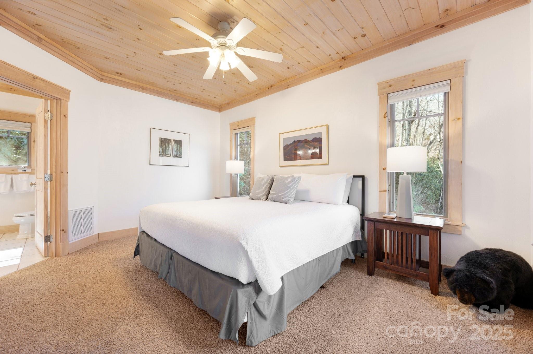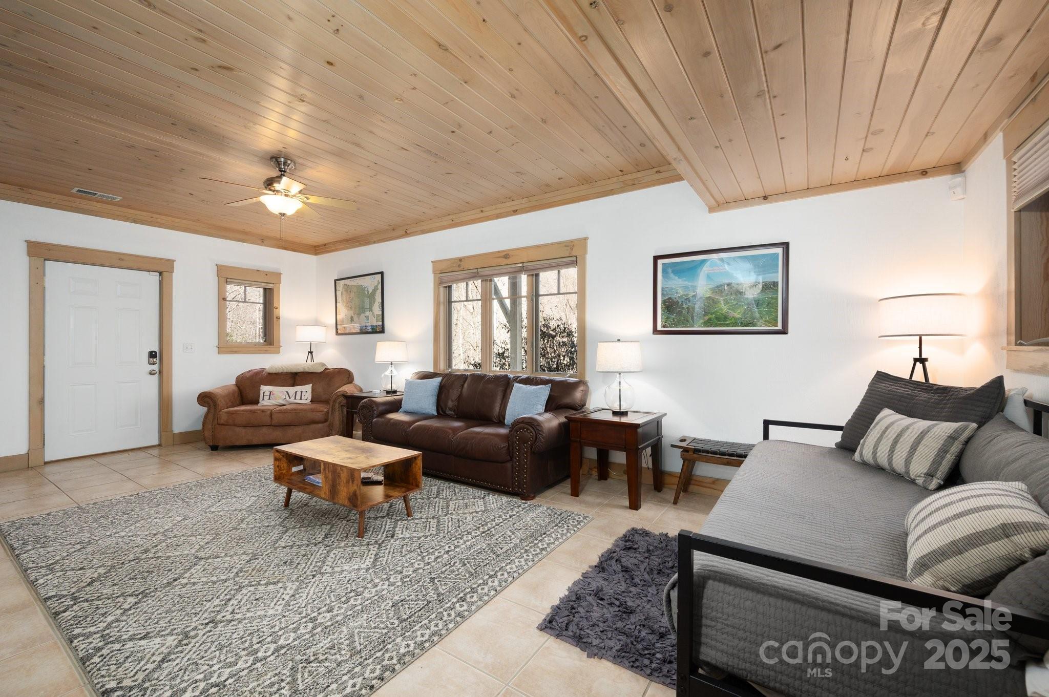 Beautiful mountain getaway, located six miles from vibrant downtown Black Mountain and just over 30 minutes from downtown Asheville. This move-in-ready home features mountain views and privacy, plus the lusciously wooded neighborhood allows short-term rentals, if desired. Lovely mountain views await on a front deck ideal for hosting dinner parties — or for simply enjoying a relaxing morning. Its modern, open floor plan features a beautiful kitchen, stunning pine ceilings and cherry hardwood floors, and a gas fireplace with built-ins for cozy nights. While it includes three bedrooms, numerous other sleeping spaces are available if needed, and there is plenty of storage in the one-car garage and mechanical room. Ideal floor plan for hosting family and friends who are ready to visit Western North Carolina and explore all that Black Mountain and Asheville have to offer. Most furnishings available to purchase, should buyers desire a true turnkey opportunity.